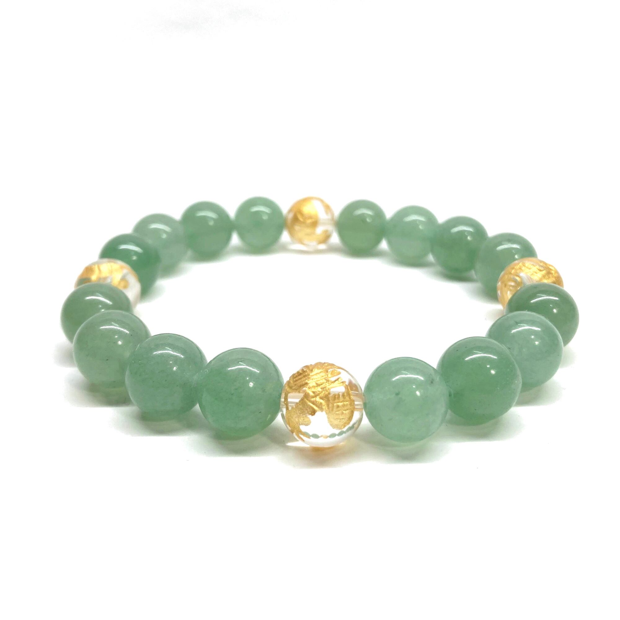 ご覧頂いているブレスレットは、四神獣金彫水晶とアベンチュリンを組み合わせたブレスレット。守り神である四神とパワーストーンの組み合わせで運気の流れを引き寄せる強運ブレスレットです。シンプルなデザインで男女問わず、年齢問わずご使用頂けるデザインなっております。シンプルなデザインは日常のアクセントとして、仕事やビジネスカジュアル、パーティーや特別なイベントなど様々なシーン活用できます。また、ちょっと贈り物にも最適なブレスレットになっております。四神獣を身につけて厄災から身を守り、多くの運気を呼び込まれてください。