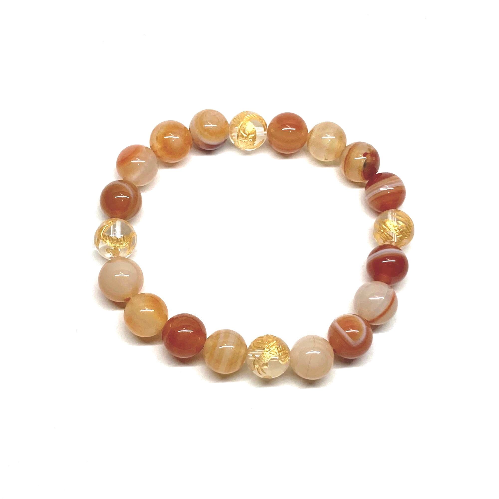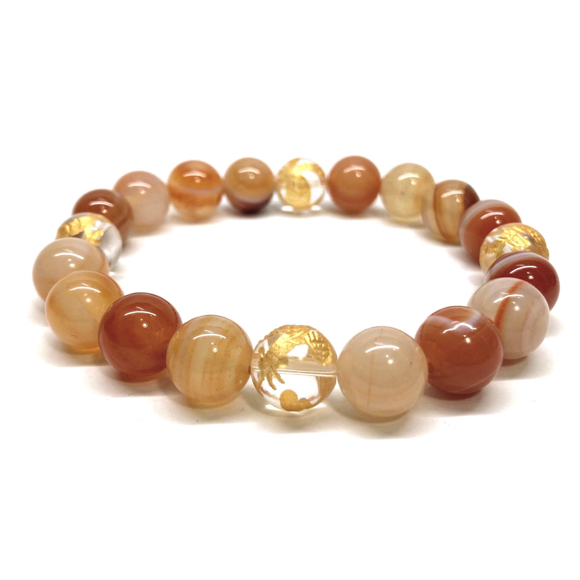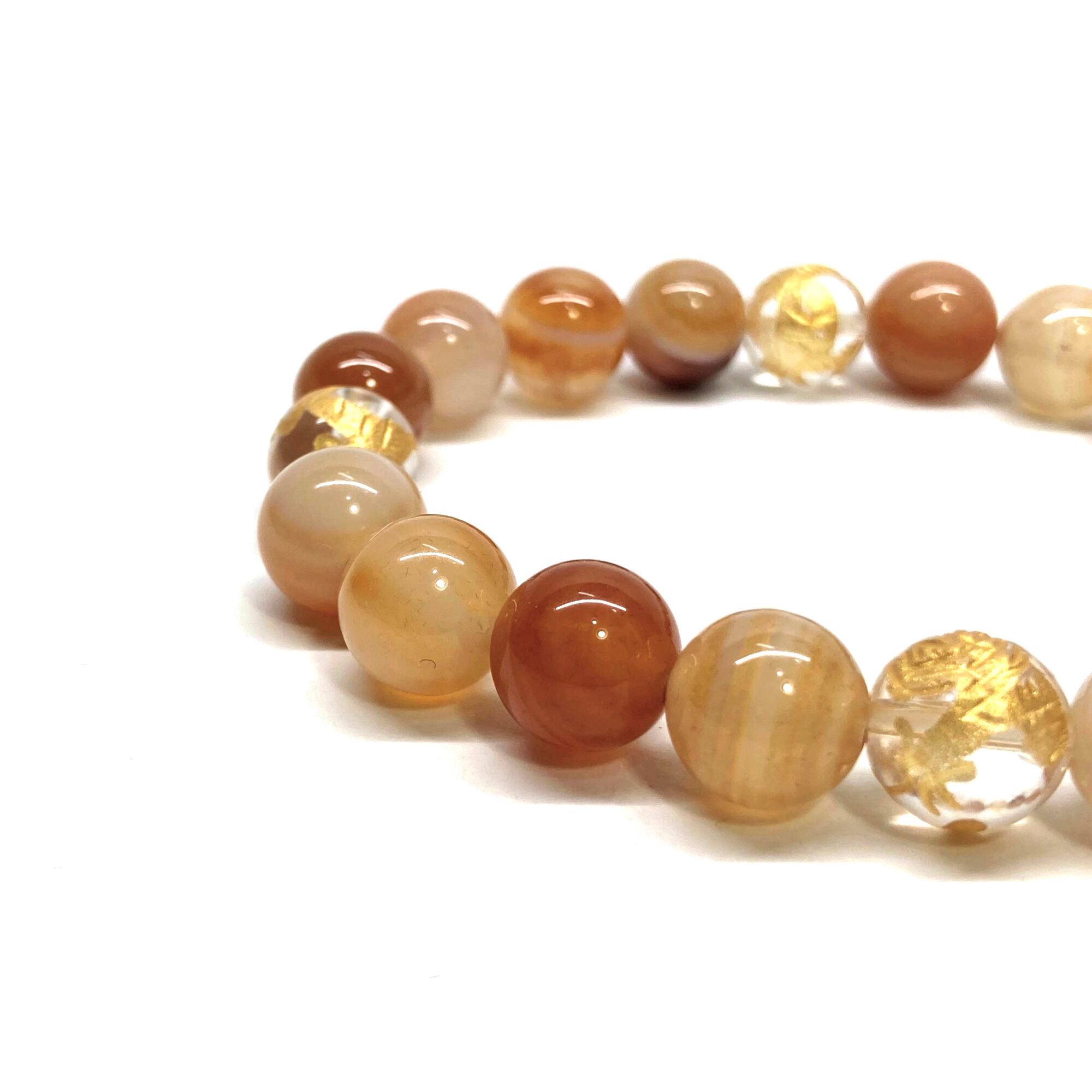 ご覧頂いているブレスレットは、四神獣金彫水晶とカーネリアン・サードニクス(レッド天眼石)を組み合わせたブレスレット。守り神である四神とパワーストーンの組み合わせで運気の流れを引き寄せる強運ブレスレットです。シンプルなデザインで男女問わず、年齢問わずご使用頂けるデザインなっております。シンプルなデザインは日常のアクセントとして、仕事やビジネスカジュアル、パーティーや特別なイベントなど様々なシーン活用できます。また、ちょっと贈り物にも最適なブレスレットになっております。四神獣を身につけて厄災から身を守り、多くの運気を呼び込まれてください。