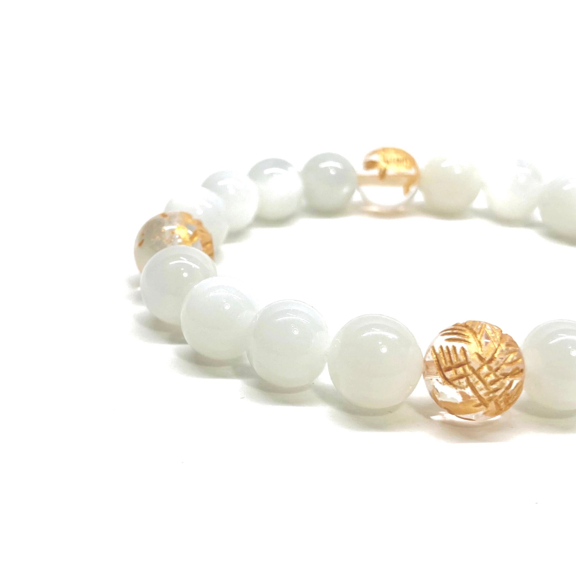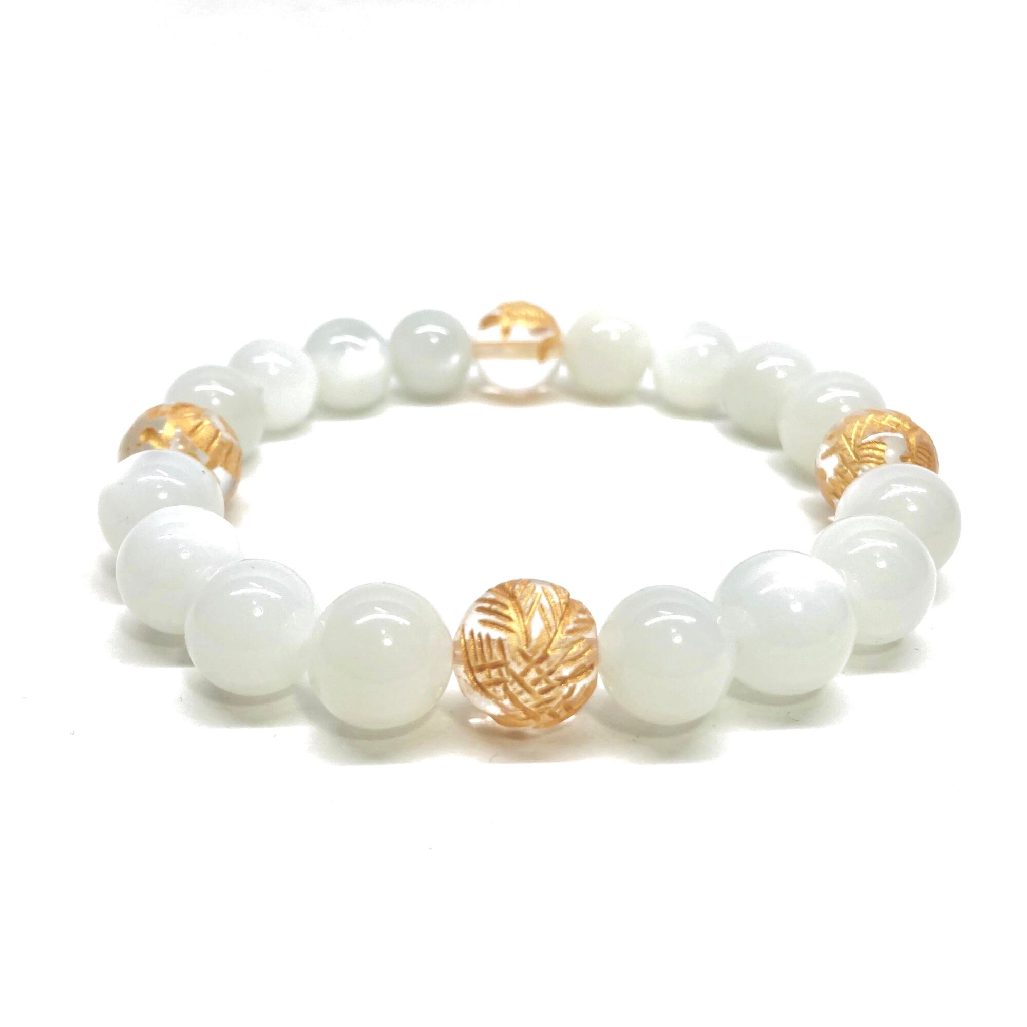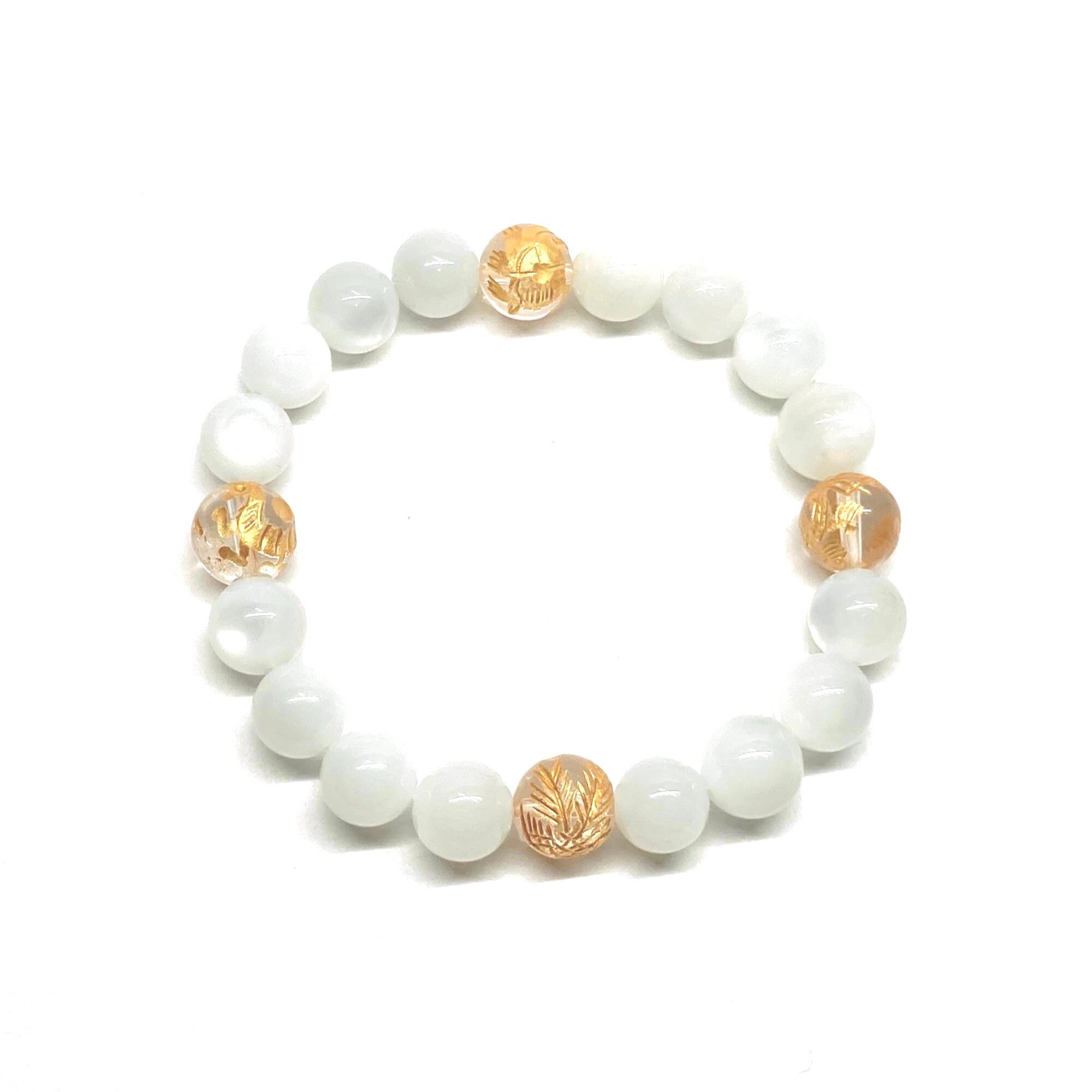 ご覧頂いているブレスレットは、四神獣金彫水晶とムーンストーンを組み合わせたブレスレット。守り神である四神とパワーストーンの組み合わせで運気の流れを引き寄せる強運ブレスレットです。シンプルなデザインで男女問わず、年齢問わずご使用頂けるデザインなっております。シンプルなデザインは日常のアクセントとして、仕事やビジネスカジュアル、パーティーや特別なイベントなど様々なシーン活用できます。また、ちょっと贈り物にも最適なブレスレットになっております。四神獣を身につけて厄災から身を守り、多くの運気を呼び込まれてください。