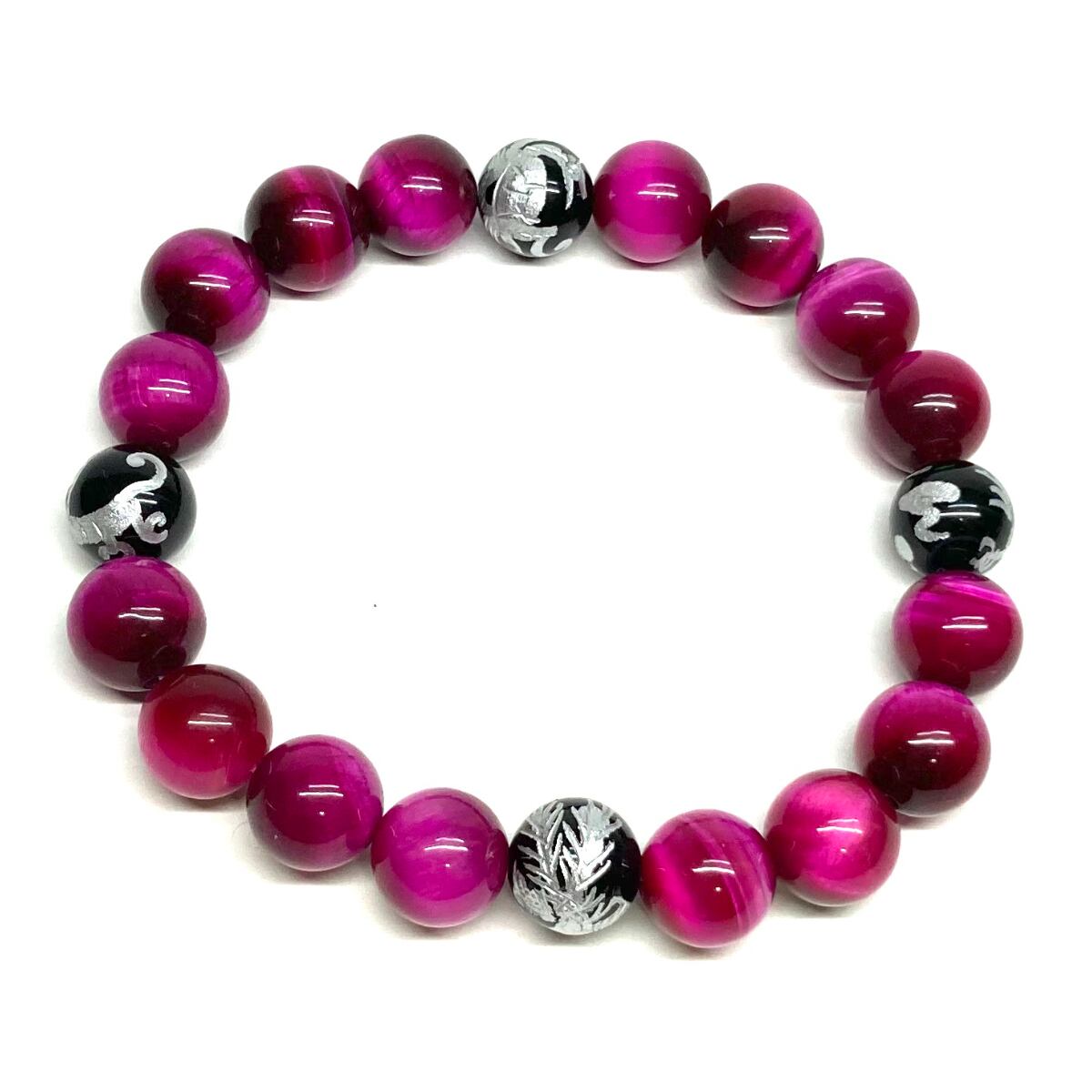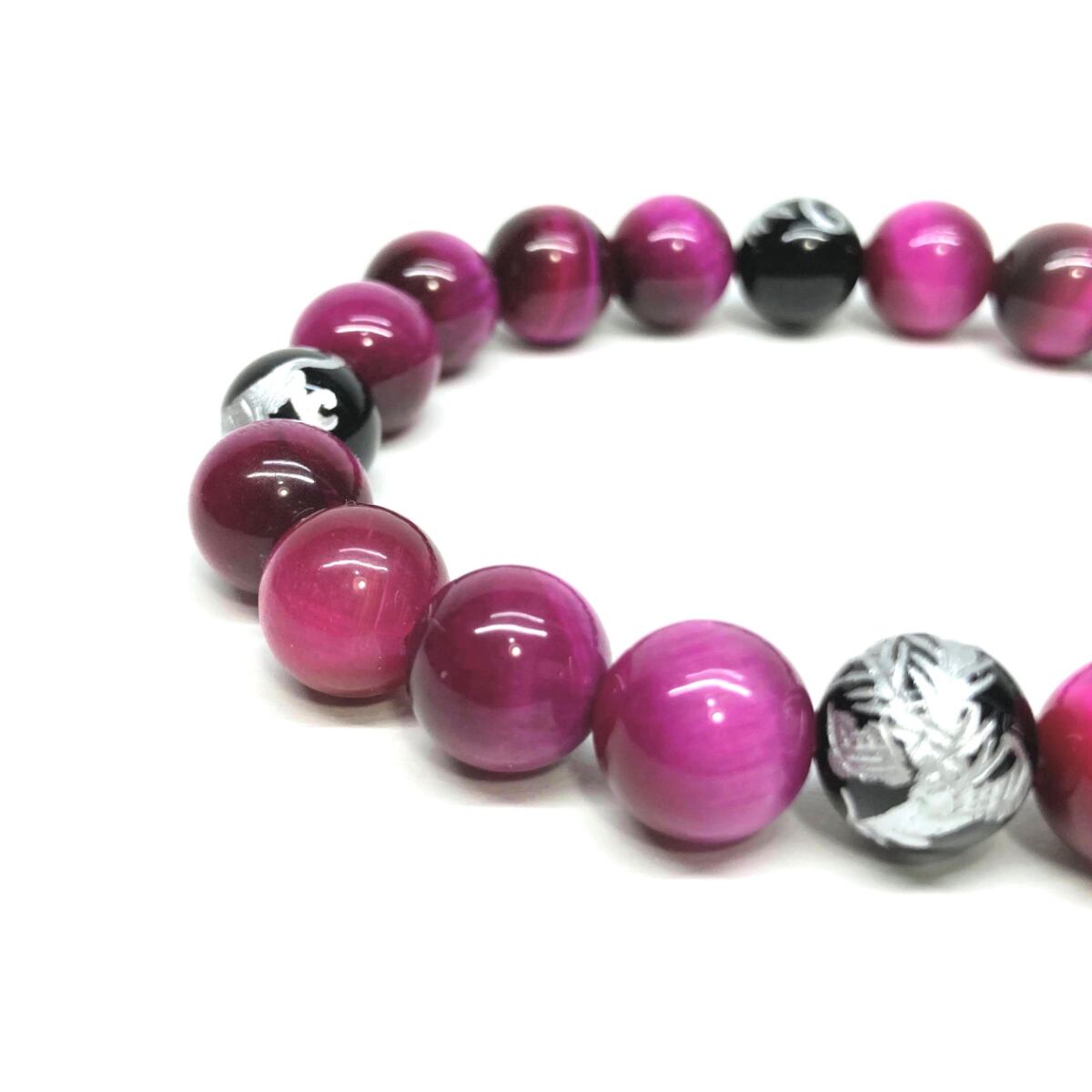 10mm 四神獣銀彫オニキス×ピンクタイガーアイ パワーストーン ブレスレット天然石 運気上昇 開運 金運 恋愛運 お守り 青龍 白虎 玄武 朱雀 ☆ | パワーストーン 天然石 Kinari&Co.