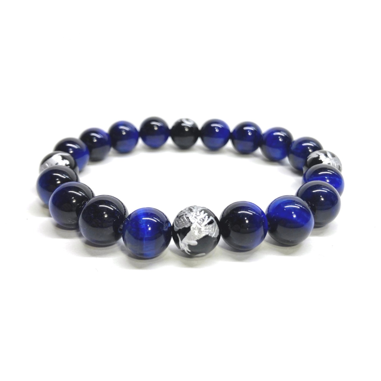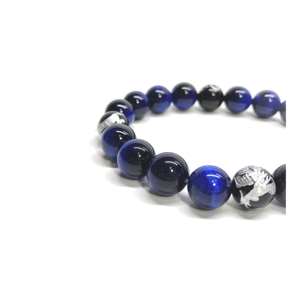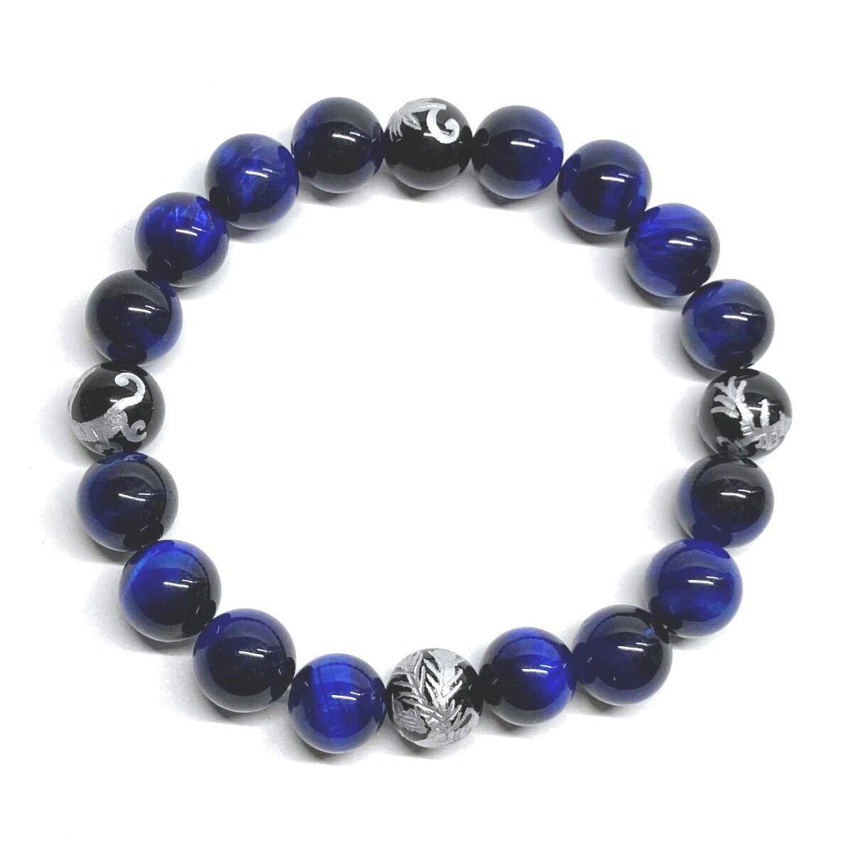 10mm 四神獣銀彫オニキス×ブルータイガーアイ パワーストーン ブレスレット天然石 運気上昇 開運 金運 恋愛運 お守り 青龍 白虎 玄武 朱雀 ☆ | パワーストーン 天然石 Kinari&Co.