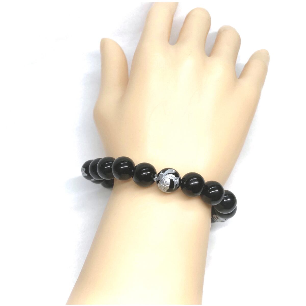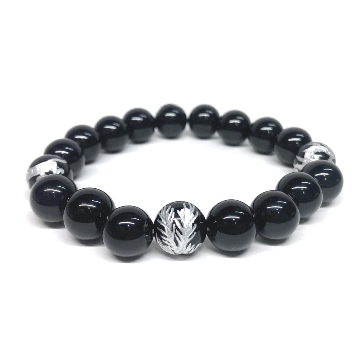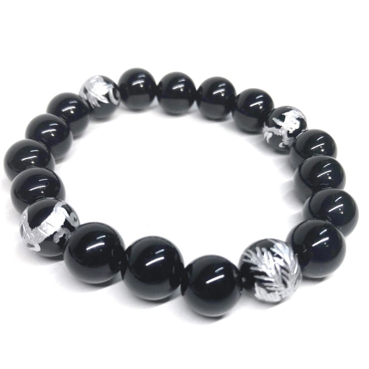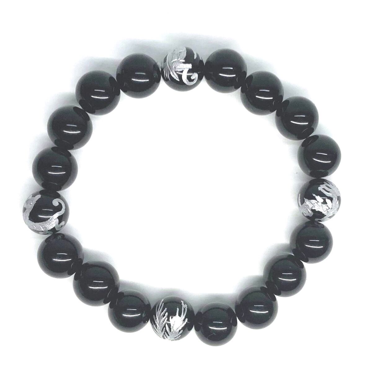 10mm 四神獣銀彫オニキス×オニキス パワーストーン ブレスレット天然石 運気上昇 開運 金運 恋愛運 お守り 青龍 白虎 玄武 朱雀 シンプル ☆ | パワーストーン 天然石 Kinari&Co.