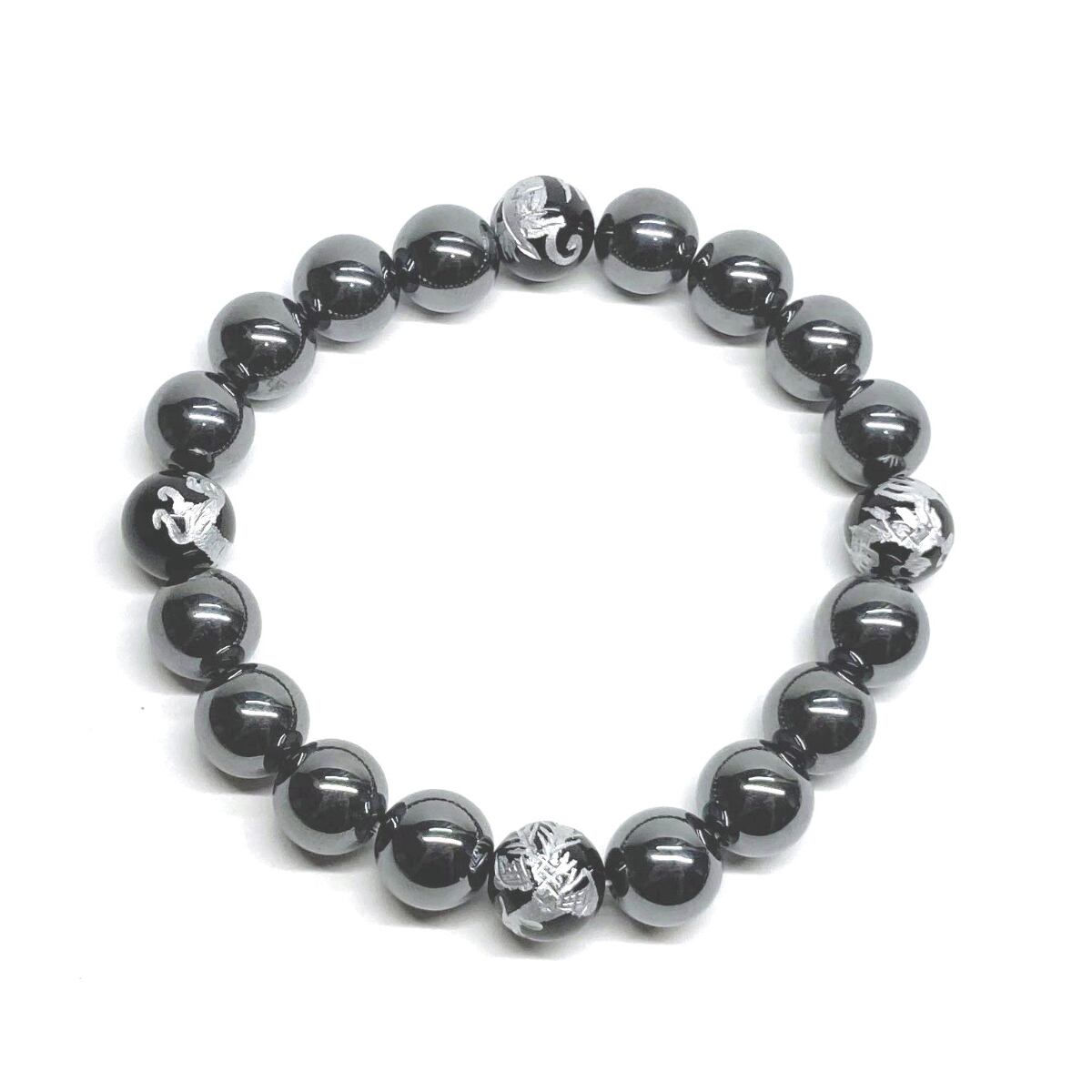 ご覧頂いているブレスレットは、四神獣銀彫オニキスとヘマタイトを組み合わせたブレスレット。守り神である四神とパワーストーンの組み合わせで運気の流れを引き寄せる強運ブレスレットです。シンプルなデザインで男女問わず、年齢問わずご使用頂けるデザインなっております。シンプルなデザインは日常のアクセントとして、仕事やビジネスカジュアル、パーティーや特別なイベントなど様々なシーン活用できます。また、ちょっと贈り物にも最適なブレスレットになっております。四神獣を身につけて厄災から身を守り、多くの運気を呼び込まれてください。