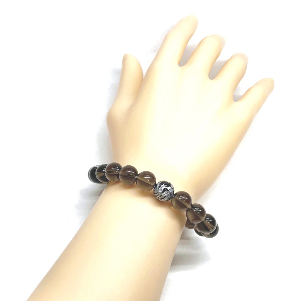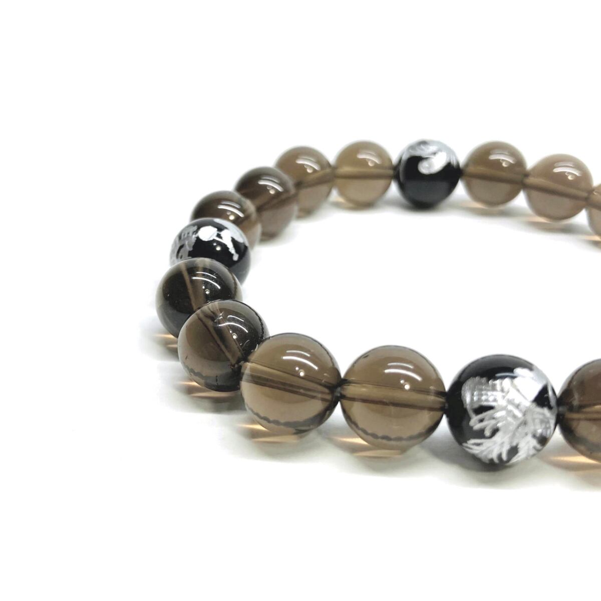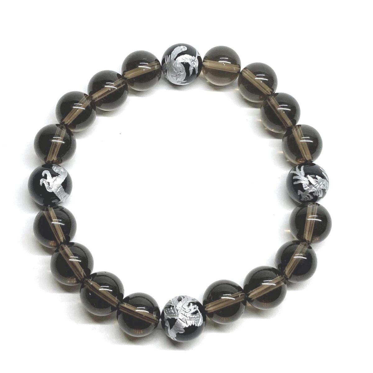 10mm 四神獣銀彫オニキス×スモーキークォーツ パワーストーン ブレスレット天然石 運気上昇 開運 金運 恋愛運 お守り 青龍 白虎 玄武 朱雀 ☆ | パワーストーン 天然石 Kinari&Co.