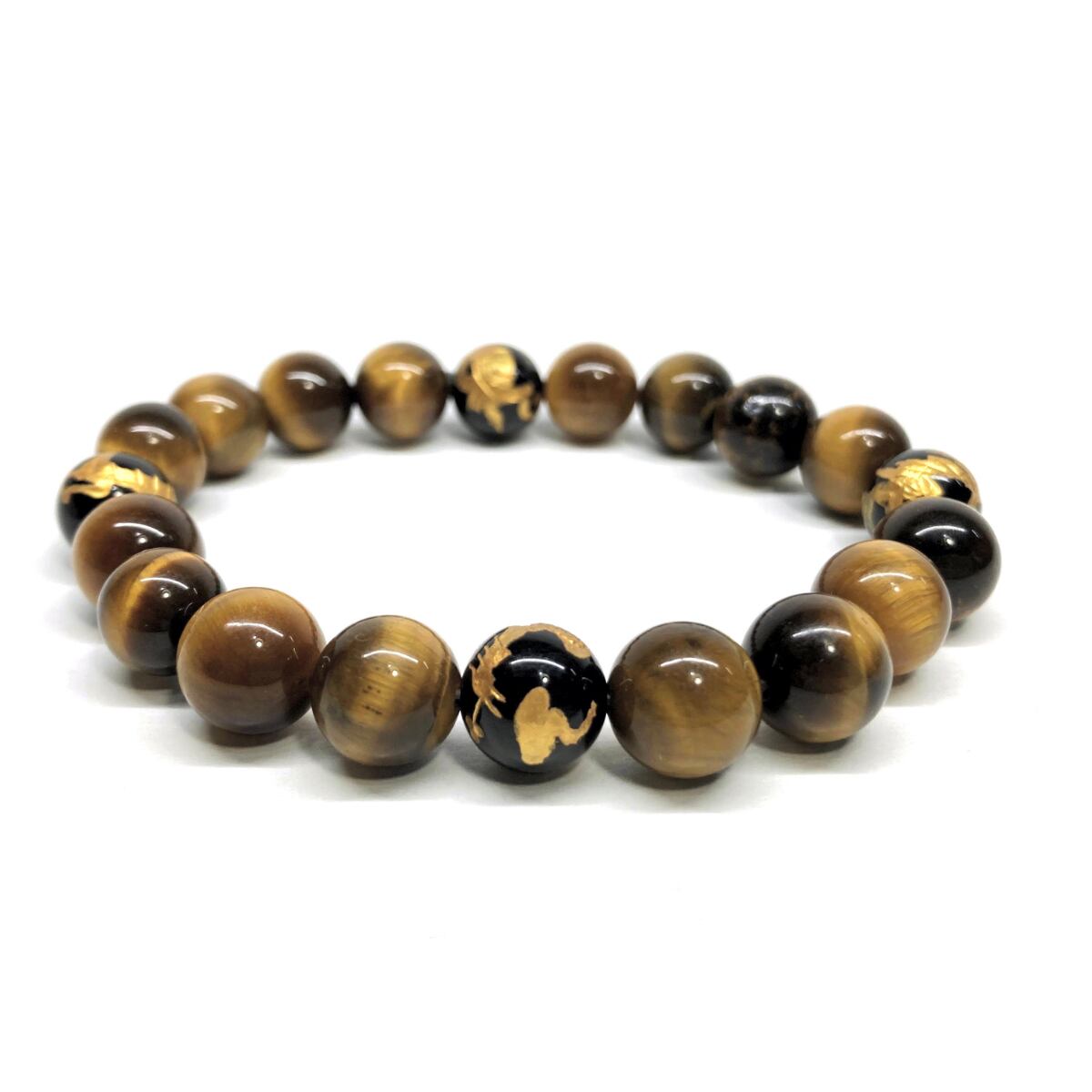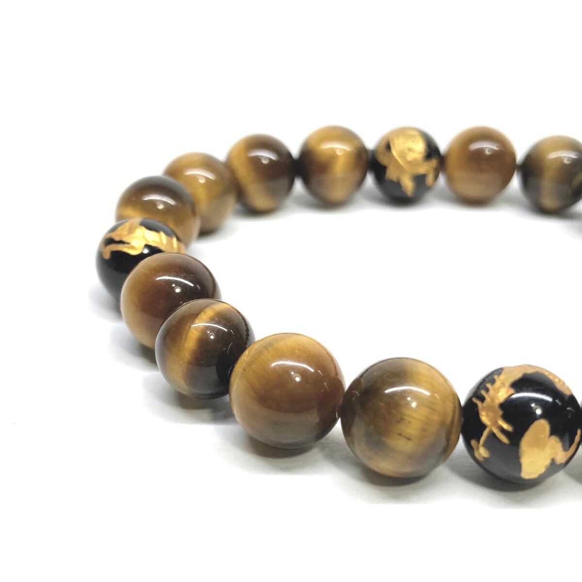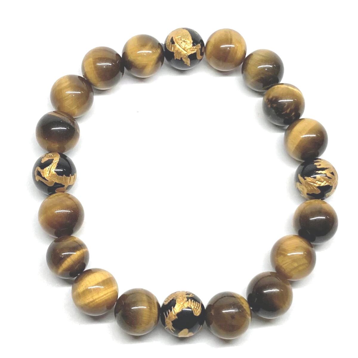 ご覧頂いているブレスレットは、四神獣金彫オニキスとタイガーアイを組み合わせたブレスレット。守り神である四神とパワーストーンの組み合わせで運気の流れを引き寄せる強運ブレスレットです。シンプルなデザインで男女問わず、年齢問わずご使用頂けるデザインなっております。シンプルなデザインは日常のアクセントとして、仕事やビジネスカジュアル、パーティーや特別なイベントなど様々なシーン活用できます。また、ちょっと贈り物にも最適なブレスレットになっております。四神獣を身につけて厄災から身を守り、多くの運気を呼び込まれてください。