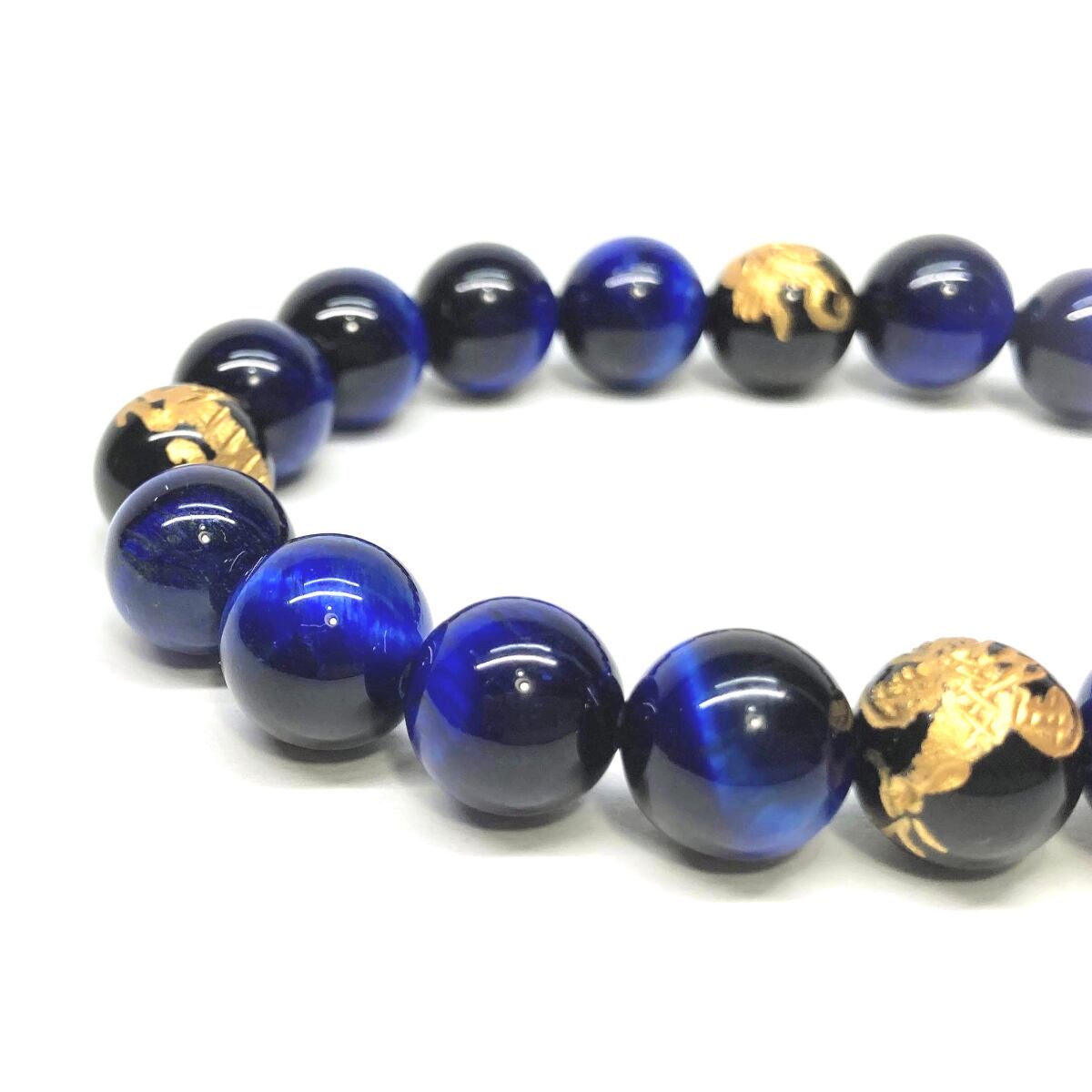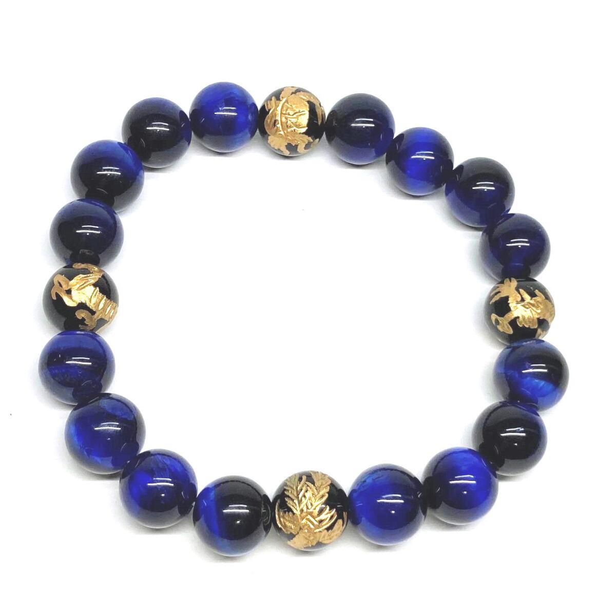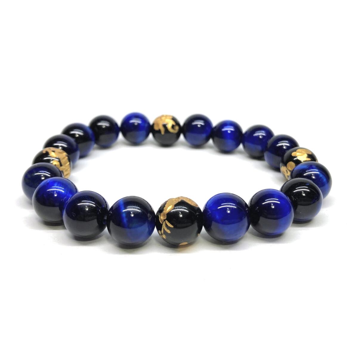 10mm 四神獣金彫オニキス×ブルータイガーアイ パワーストーン ブレスレット天然石 運気上昇 開運 金運 恋愛運 お守り 青龍 白虎 玄武 朱雀 ☆ | パワーストーン 天然石 Kinari&Co.