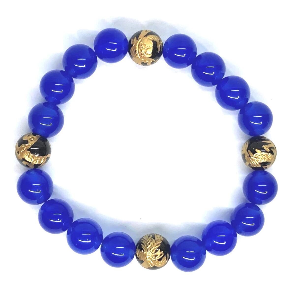 ご覧頂いているブレスレットは、四神獣金彫オニキスと青瑪瑙を組み合わせたブレスレット。守り神である四神とパワーストーンの組み合わせで運気の流れを引き寄せる強運ブレスレットです。シンプルなデザインで男女問わず、年齢問わずご使用頂けるデザインなっております。シンプルなデザインは日常のアクセントとして、仕事やビジネスカジュアル、パーティーや特別なイベントなど様々なシーン活用できます。また、ちょっと贈り物にも最適なブレスレットになっております。四神獣を身につけて厄災から身を守り、多くの運気を呼び込まれてください。