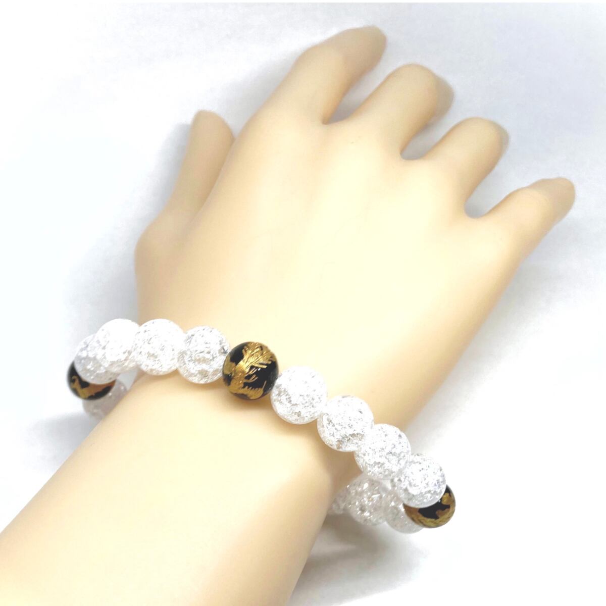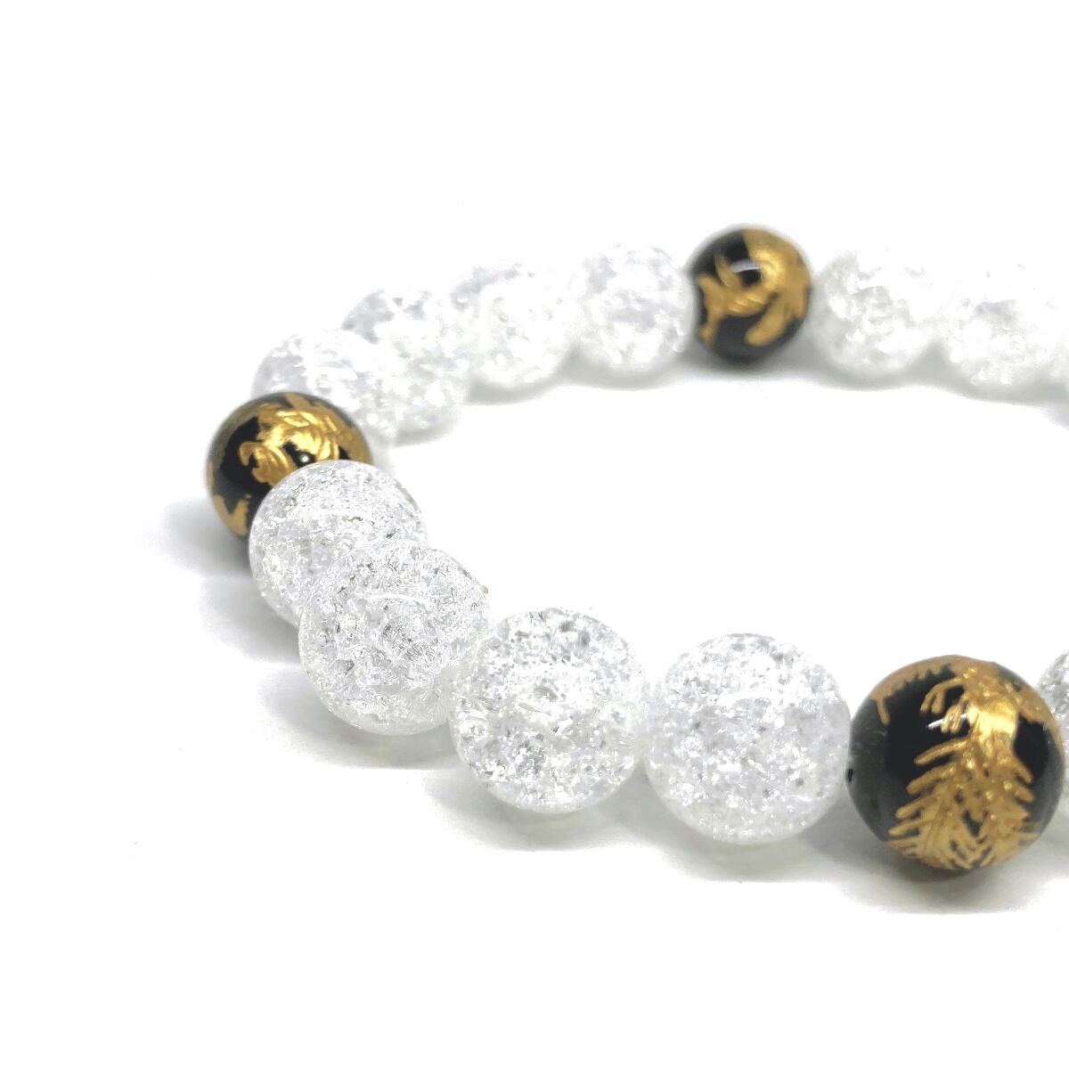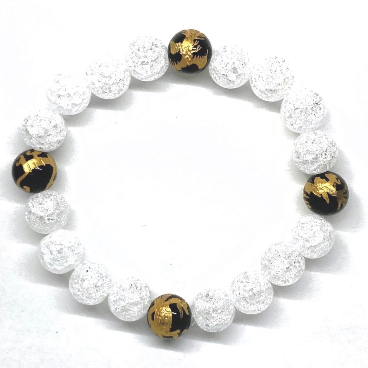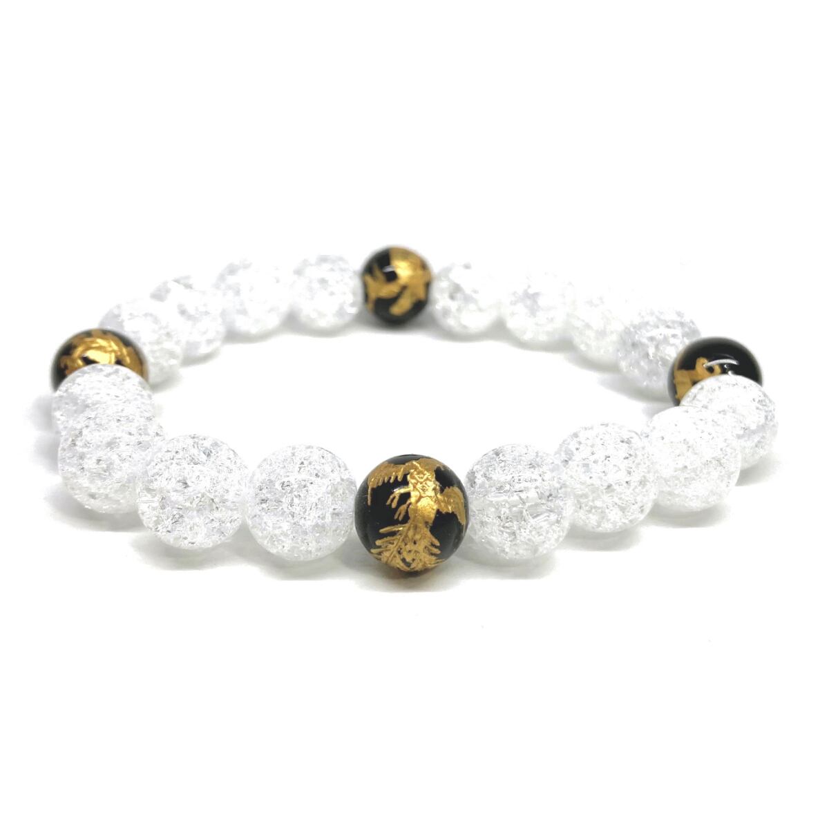 ご覧頂いているブレスレットは、四神獣金彫オニキスとクラック水晶を組み合わせたブレスレット。守り神である四神とパワーストーンの組み合わせで運気の流れを引き寄せる強運ブレスレットです。シンプルなデザインで男女問わず、年齢問わずご使用頂けるデザインなっております。シンプルなデザインは日常のアクセントとして、仕事やビジネスカジュアル、パーティーや特別なイベントなど様々なシーン活用できます。また、ちょっと贈り物にも最適なブレスレットになっております。四神獣を身につけて厄災から身を守り、多くの運気を呼び込まれてください。