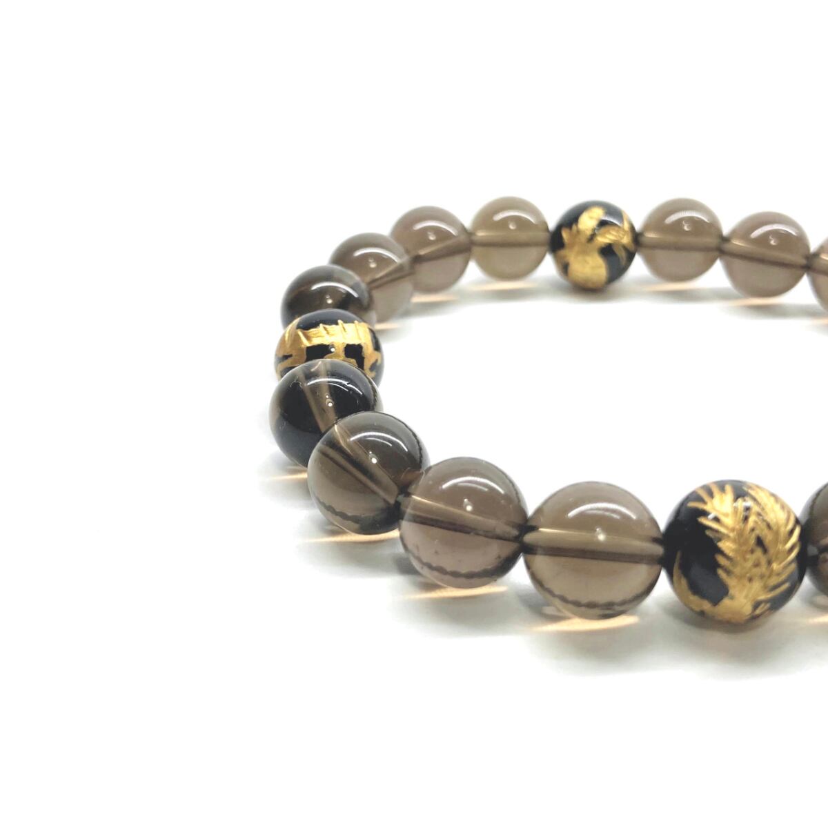 10mm 四神獣金彫オニキス×スモーキークォーツ パワーストーン ブレスレット天然石 運気上昇 開運 金運 恋愛運 お守り 青龍 白虎 玄武 朱雀 ☆ | パワーストーン 天然石 Kinari&Co.