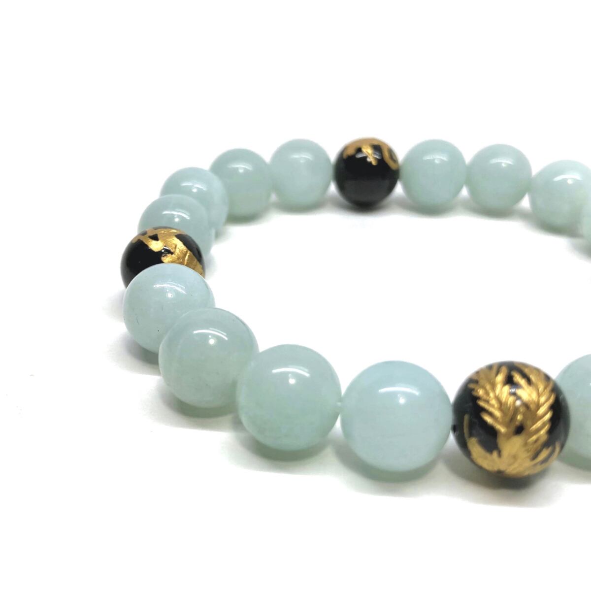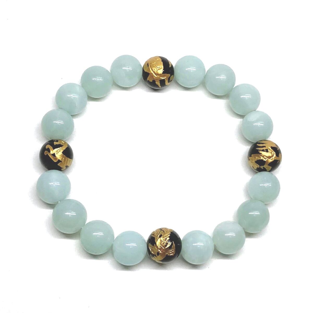 ご覧頂いているブレスレットは、四神獣金彫オニキスとアマゾナイトを組み合わせたブレスレット。守り神である四神とパワーストーンの組み合わせで運気の流れを引き寄せる強運ブレスレットです。シンプルなデザインで男女問わず、年齢問わずご使用頂けるデザインなっております。シンプルなデザインは日常のアクセントとして、仕事やビジネスカジュアル、パーティーや特別なイベントなど様々なシーン活用できます。また、ちょっと贈り物にも最適なブレスレットになっております。四神獣を身につけて厄災から身を守り、多くの運気を呼び込まれてください。