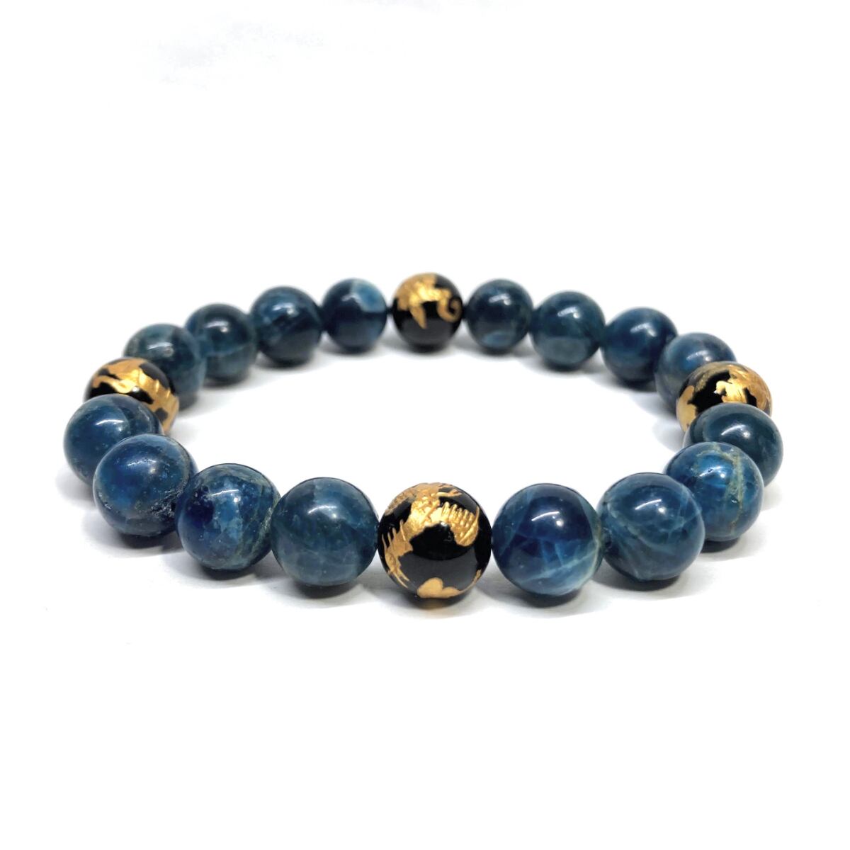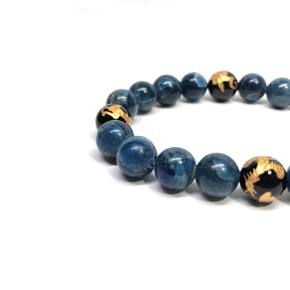ご覧頂いているブレスレットは、四神獣金彫オニキスとアパタイトを組み合わせたブレスレット。守り神である四神とパワーストーンの組み合わせで運気の流れを引き寄せる強運ブレスレットです。シンプルなデザインで男女問わず、年齢問わずご使用頂けるデザインなっております。シンプルなデザインは日常のアクセントとして、仕事やビジネスカジュアル、パーティーや特別なイベントなど様々なシーン活用できます。また、ちょっと贈り物にも最適なブレスレットになっております。四神獣を身につけて厄災から身を守り、多くの運気を呼び込まれてください。