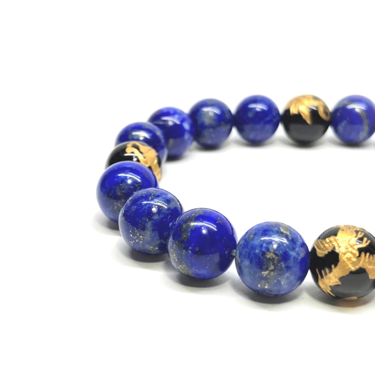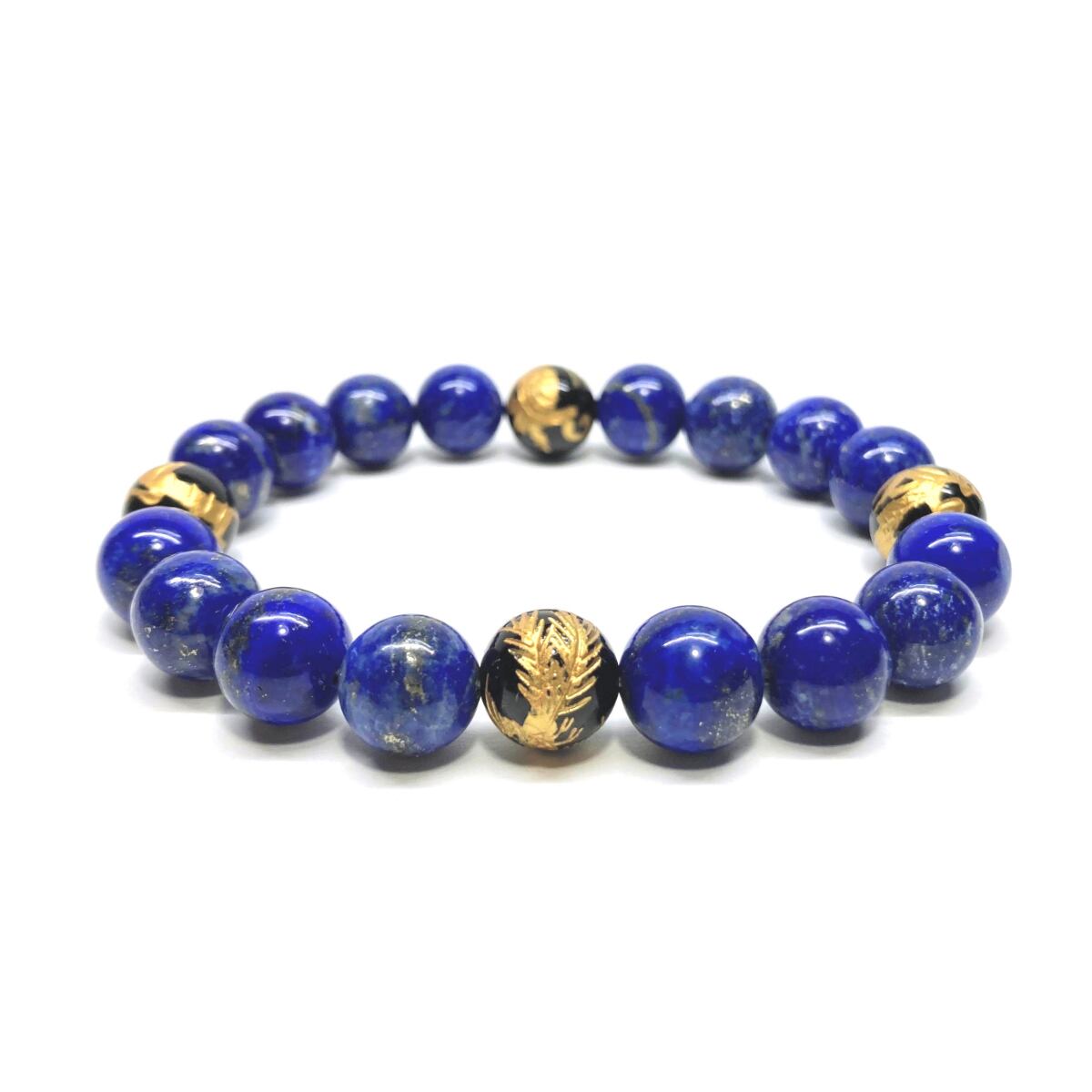 10mm 四神獣金彫オニキス×ラピスラズリ パワーストーン ブレスレット天然石 運気上昇 開運 幸運 金運 恋愛運 お守り 青龍 白虎 玄武 朱雀 ☆ | パワーストーン 天然石 Kinari&Co.