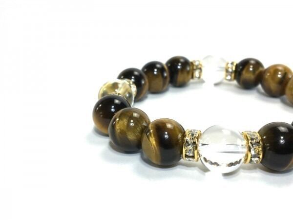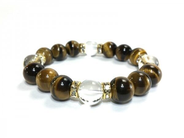パワーストーン ブレスレット タイガーアイ 水晶 12mm (ゴールド)メンズ・レディース 男性・女性 数珠ブレス 開運 ☆