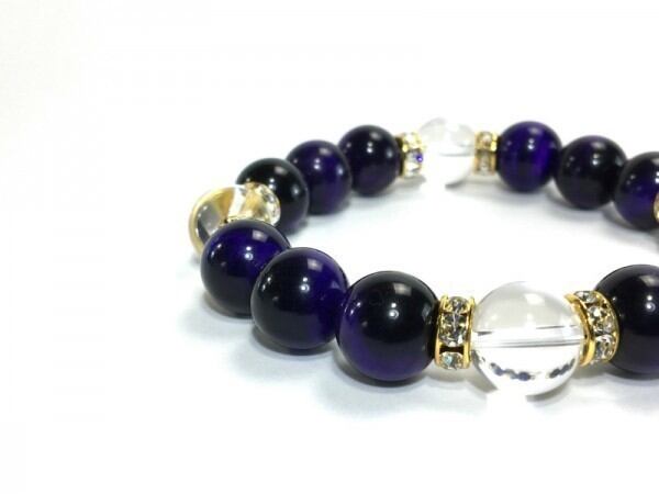 パワーストーン ブレスレット パープルタイガーアイ 水晶 12mm (ゴールド)メンズ・レディース 男性・女性 数珠ブレス 開運 ☆