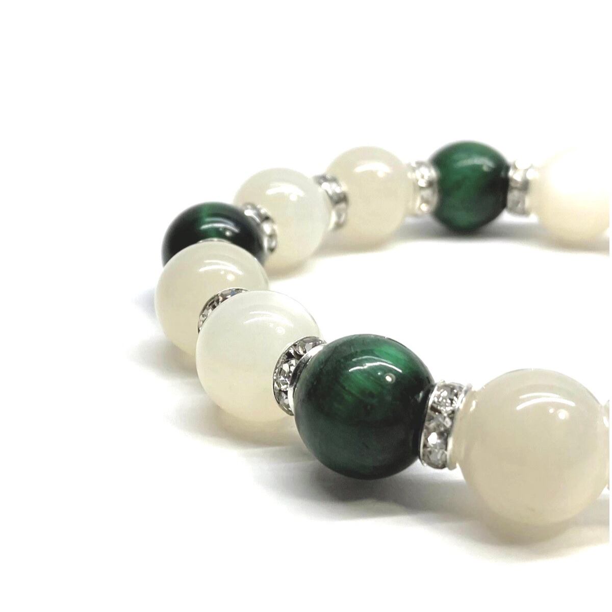 ムーンストーン&ブルータイガーアイ パワーストーン ブレスレット 天然石ブレス (シルバー) 12mm メンズ レディース 男性 女性 6月誕生石 恋愛運 恋人 夫婦円満 縁結び 数珠 ☆ | パワーストーン 天然石 Kinari&Co.
