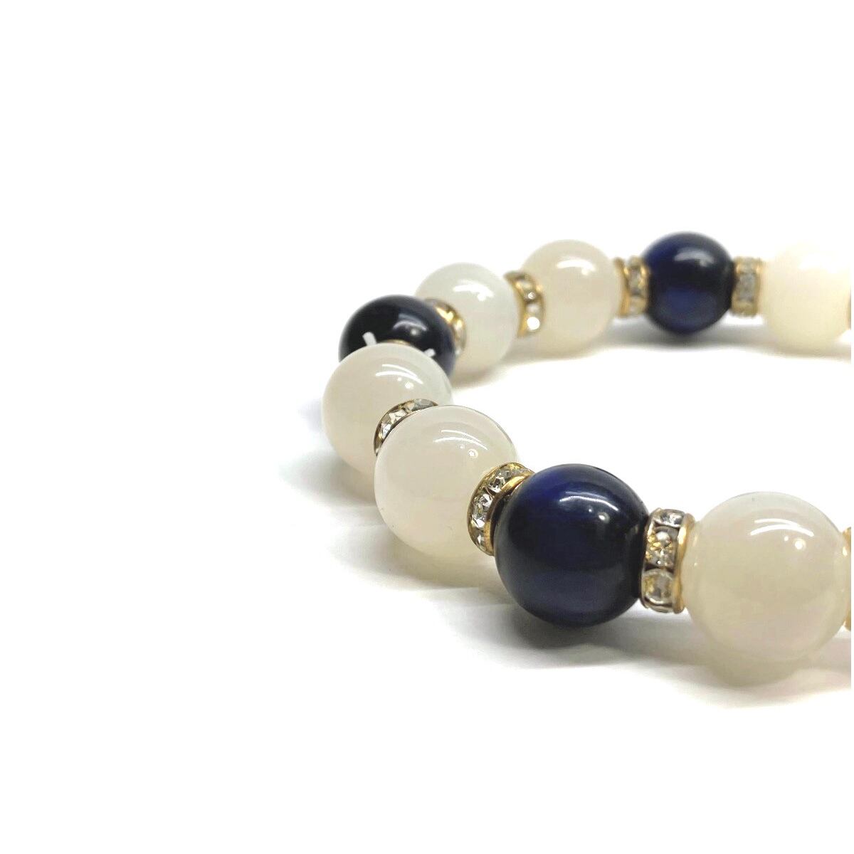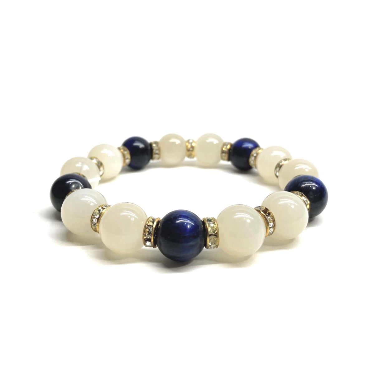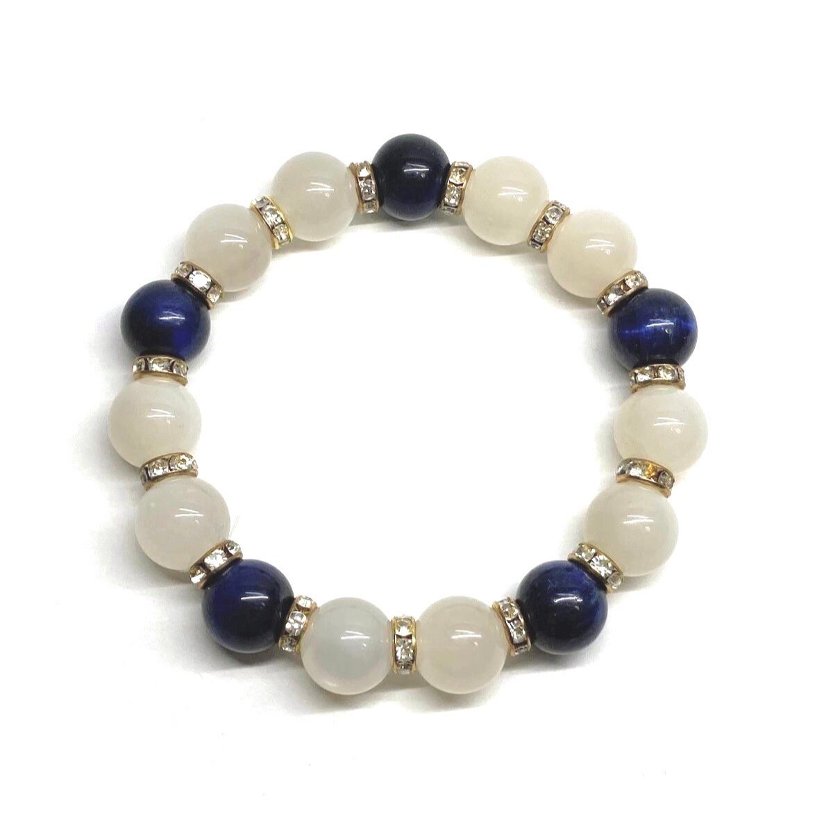 こちらは、ムーンストーンとグリーンタイガーアイを組み合わせたパワーストーンブレスレットです。間にはロンデルを挟み高級感あるデザインに仕上げております。石大きさは12mm玉を使用して内周 約18cmです。気になる方は是非この機会にどうぞ。