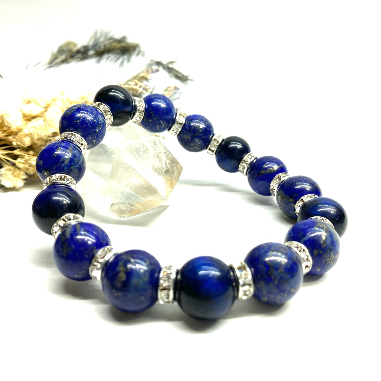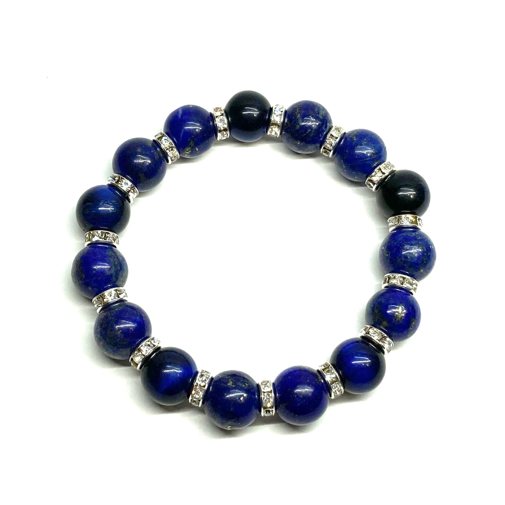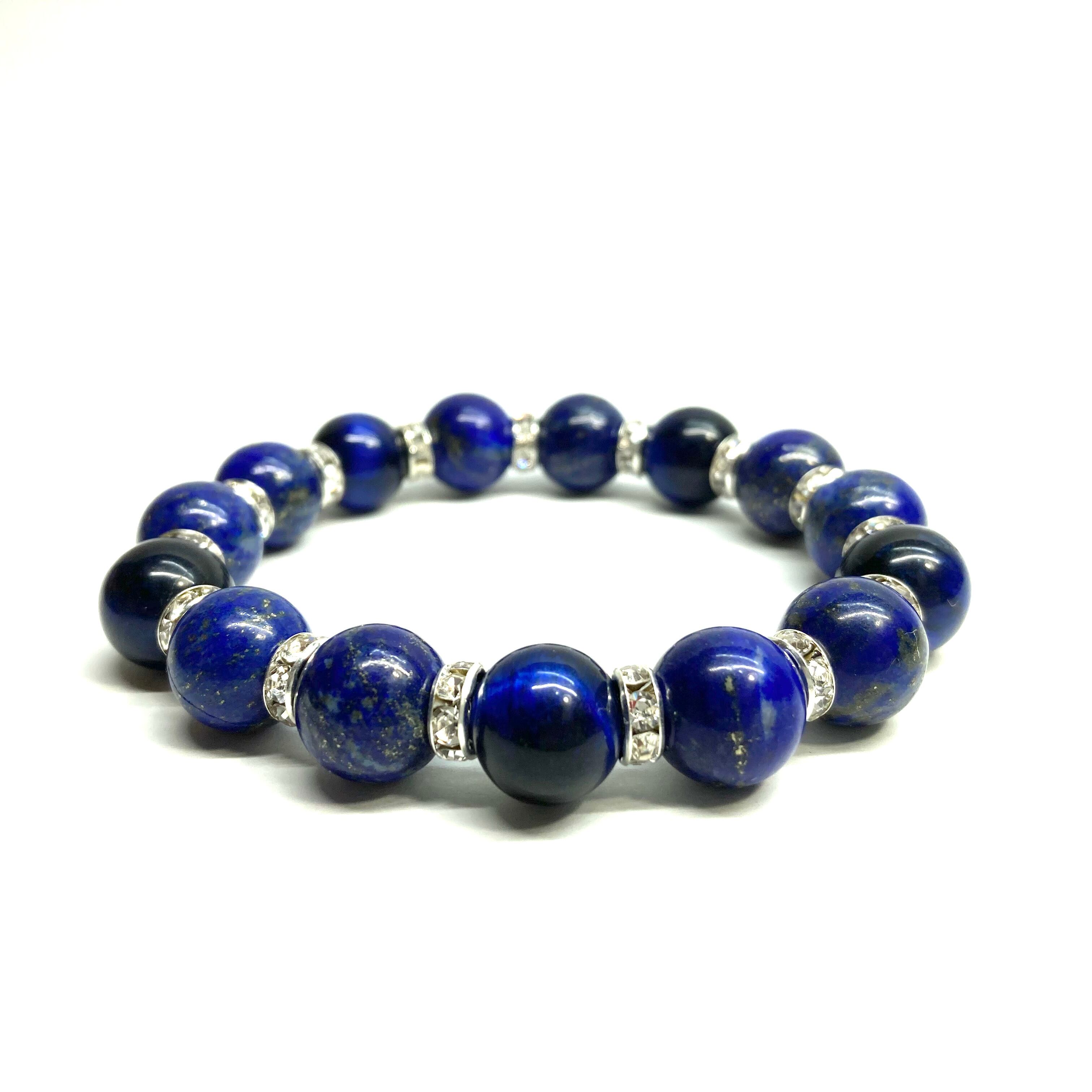 こちらは、ラピスラズリとグリーンタイガーアイを組み合わせたパワーストーンブレスレットです。間にはロンデルを挟み高級感あるデザインに仕上げております。石大きさは12mm玉を使用して内周 約18cmです。気になる方は是非この機会にどうぞ。