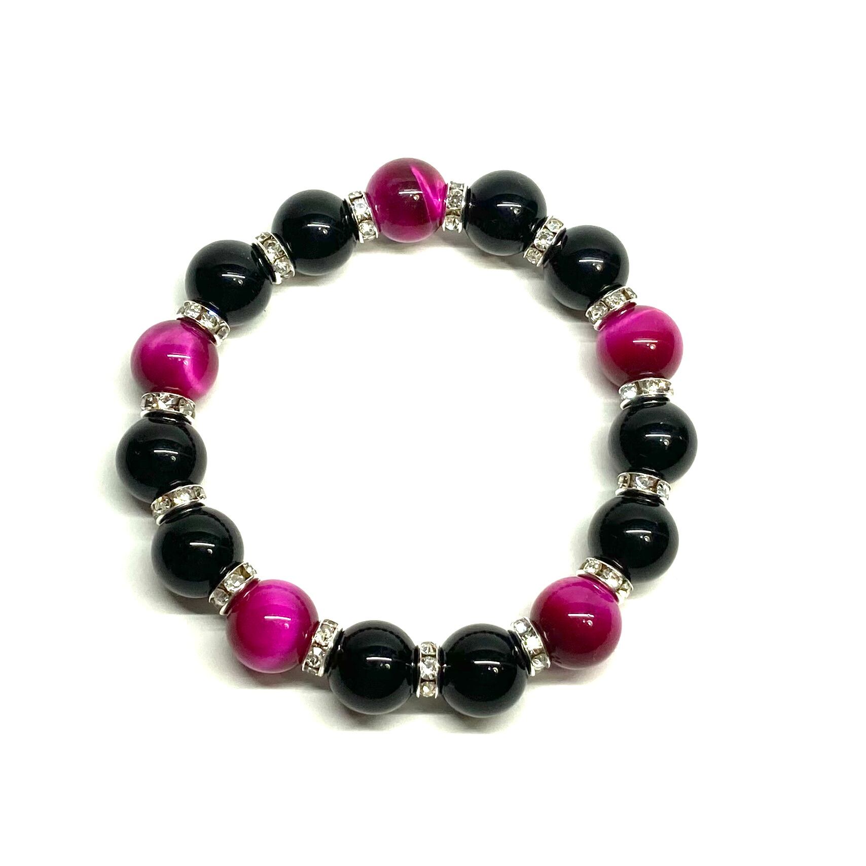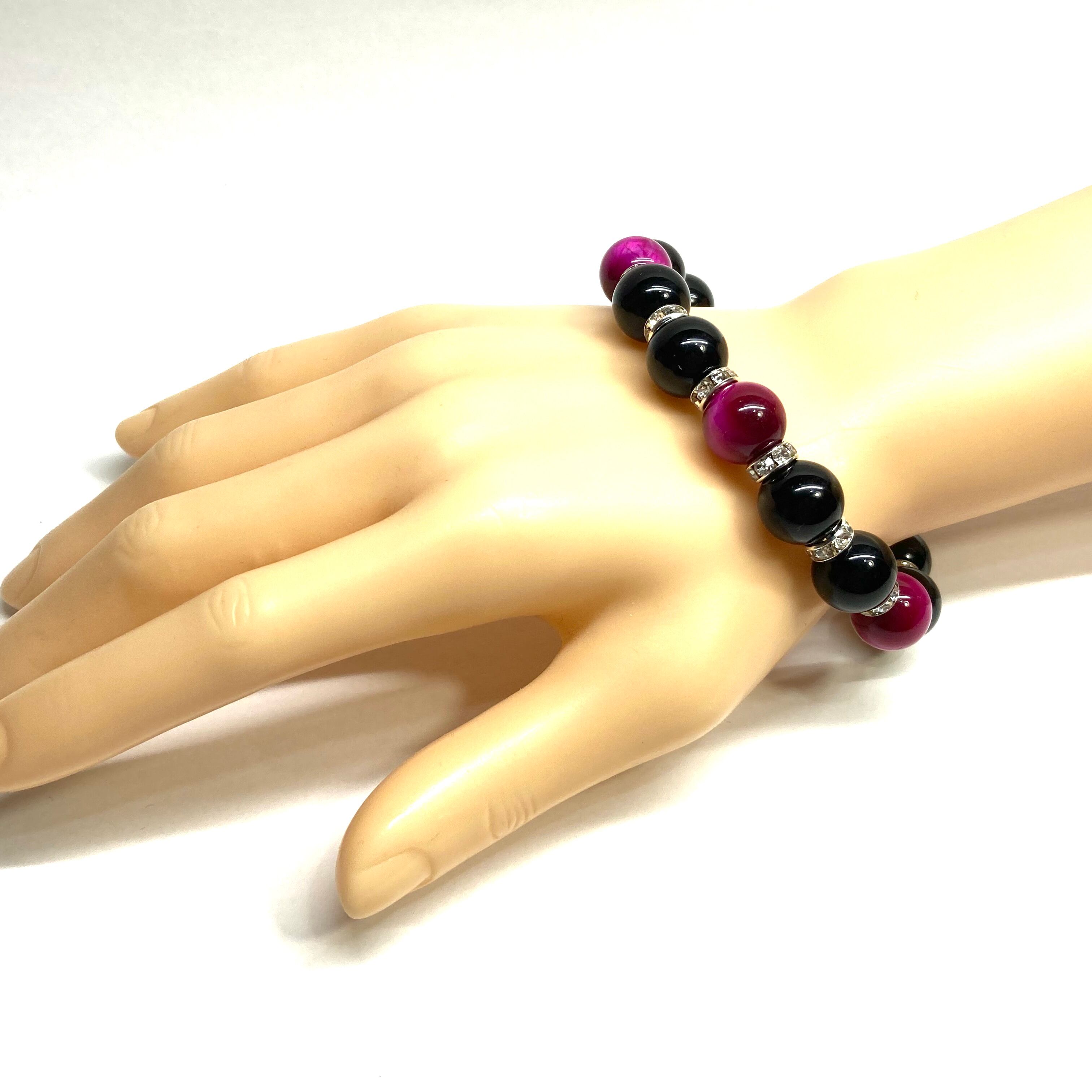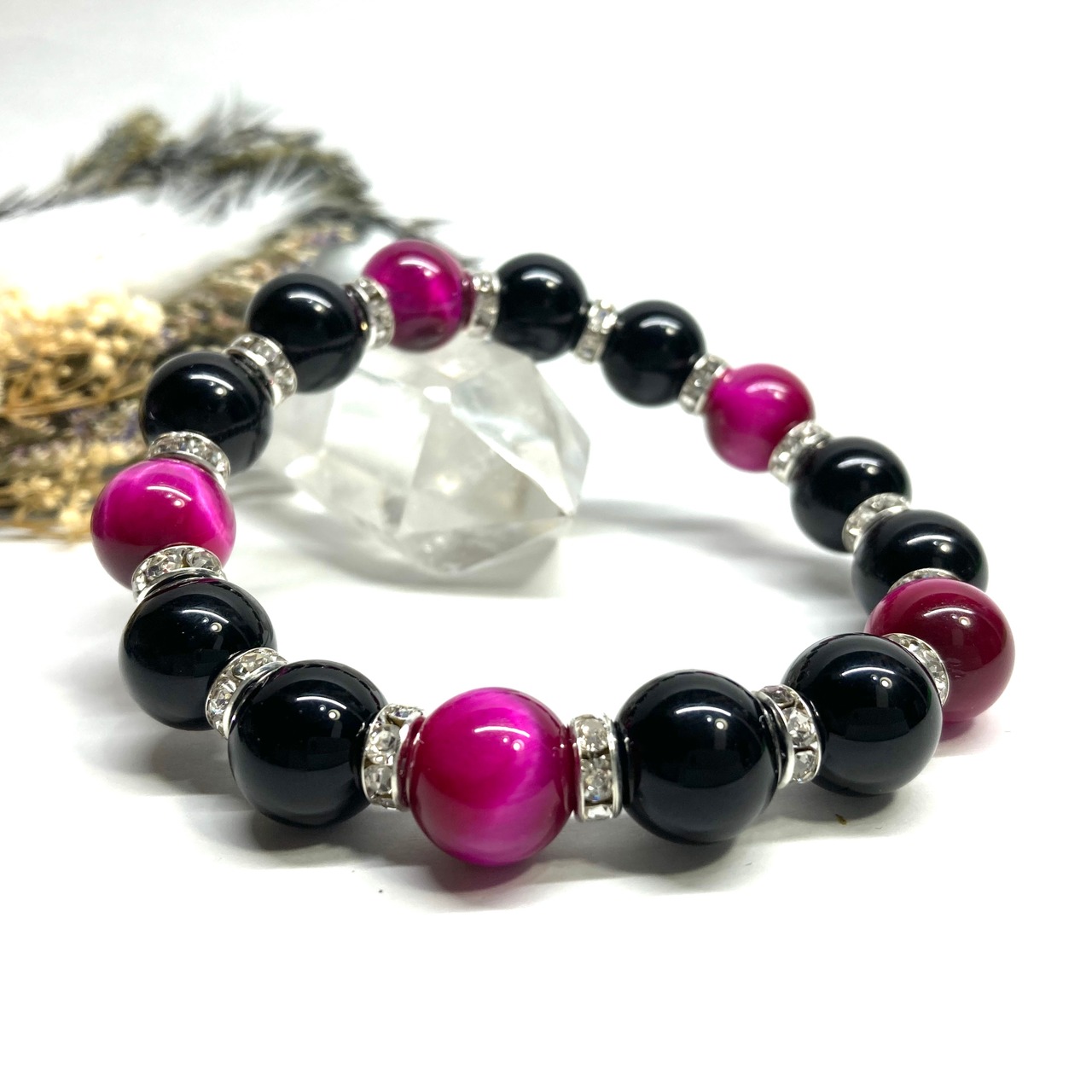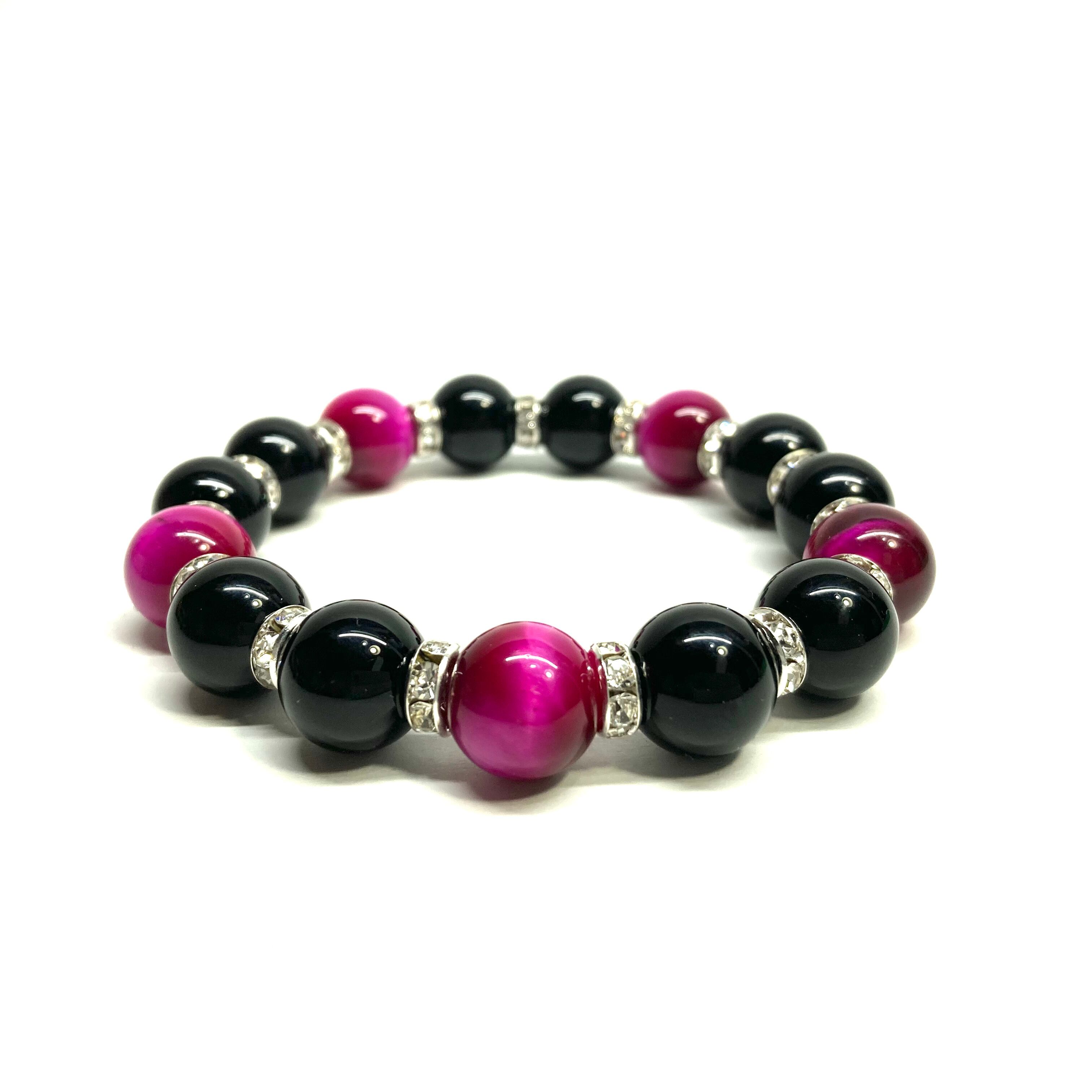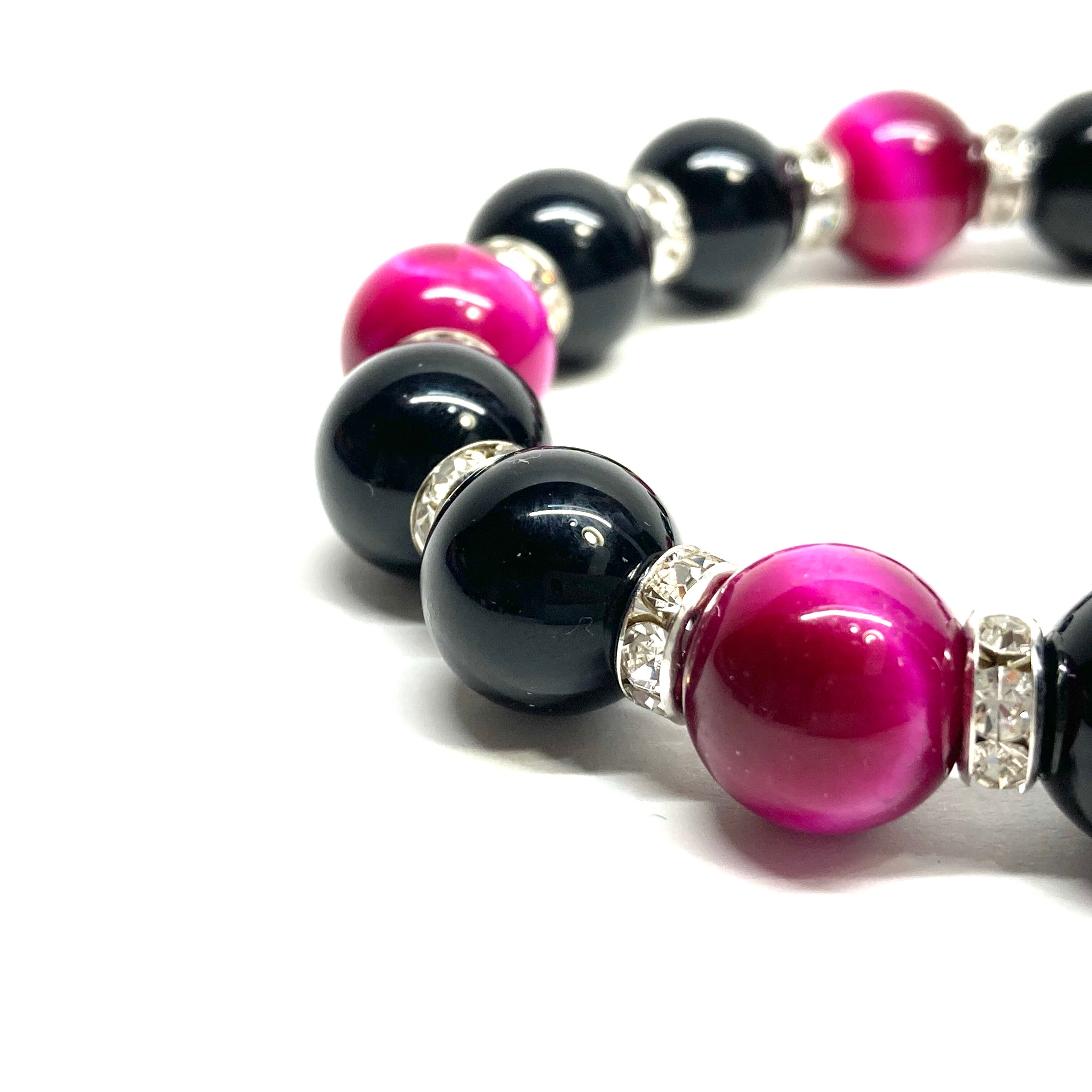 こちらは、モリオンとピンクタイガーアイを組み合わせたパワーストーンブレスレットです。間にはロンデルを挟み高級感あるデザインに仕上げております。石大きさは12mm玉を使用して内周 約18cmです。気になる方は是非この機会にどうぞ。