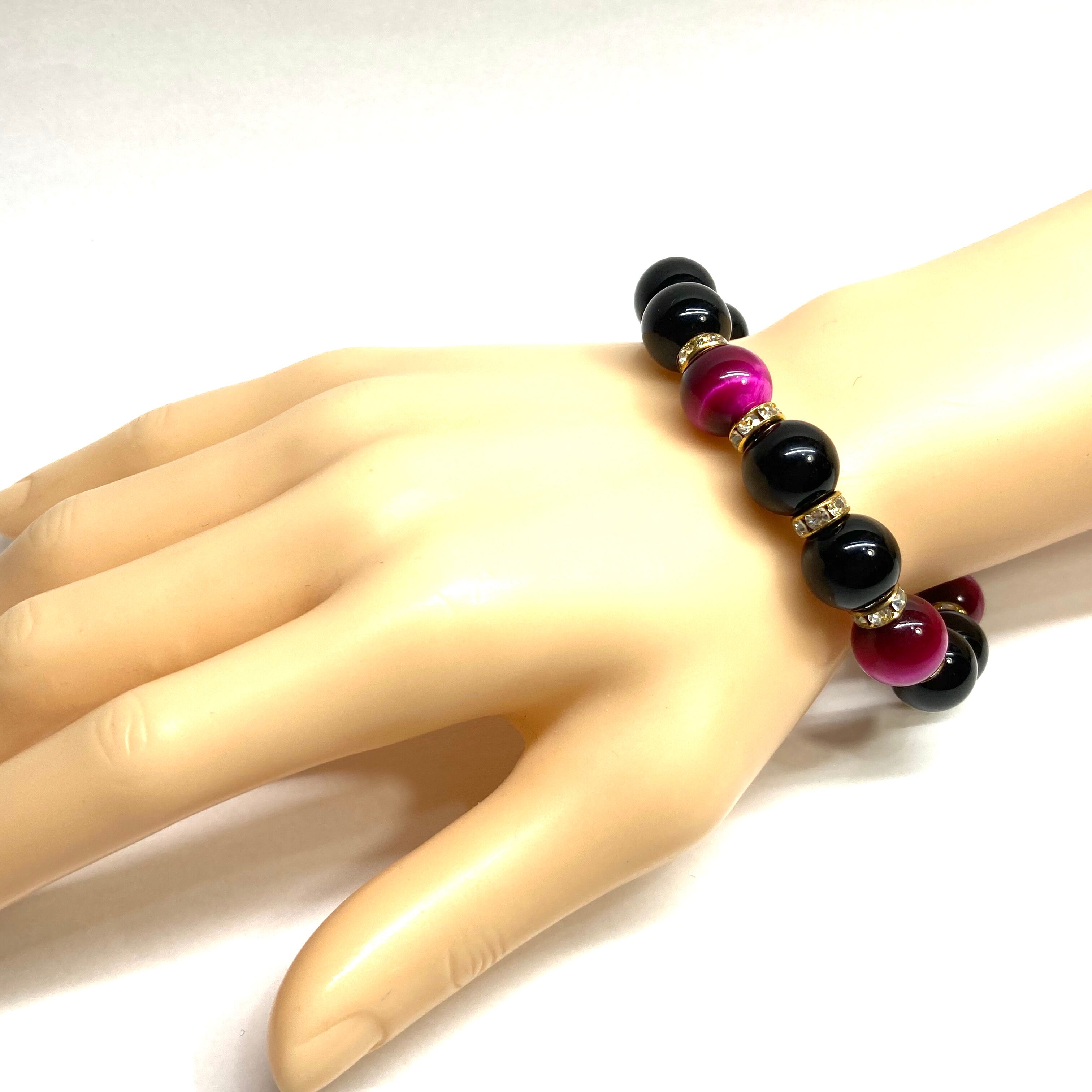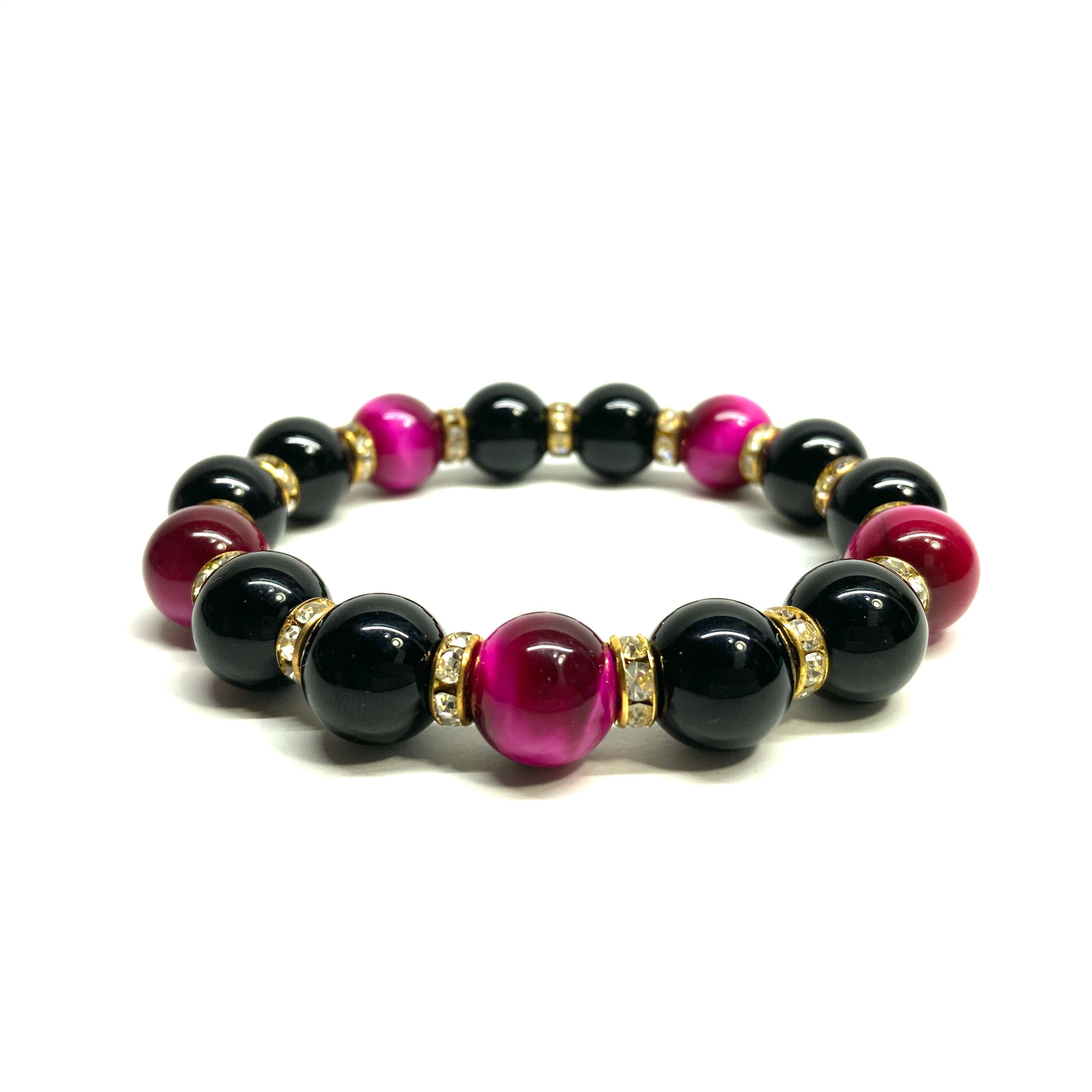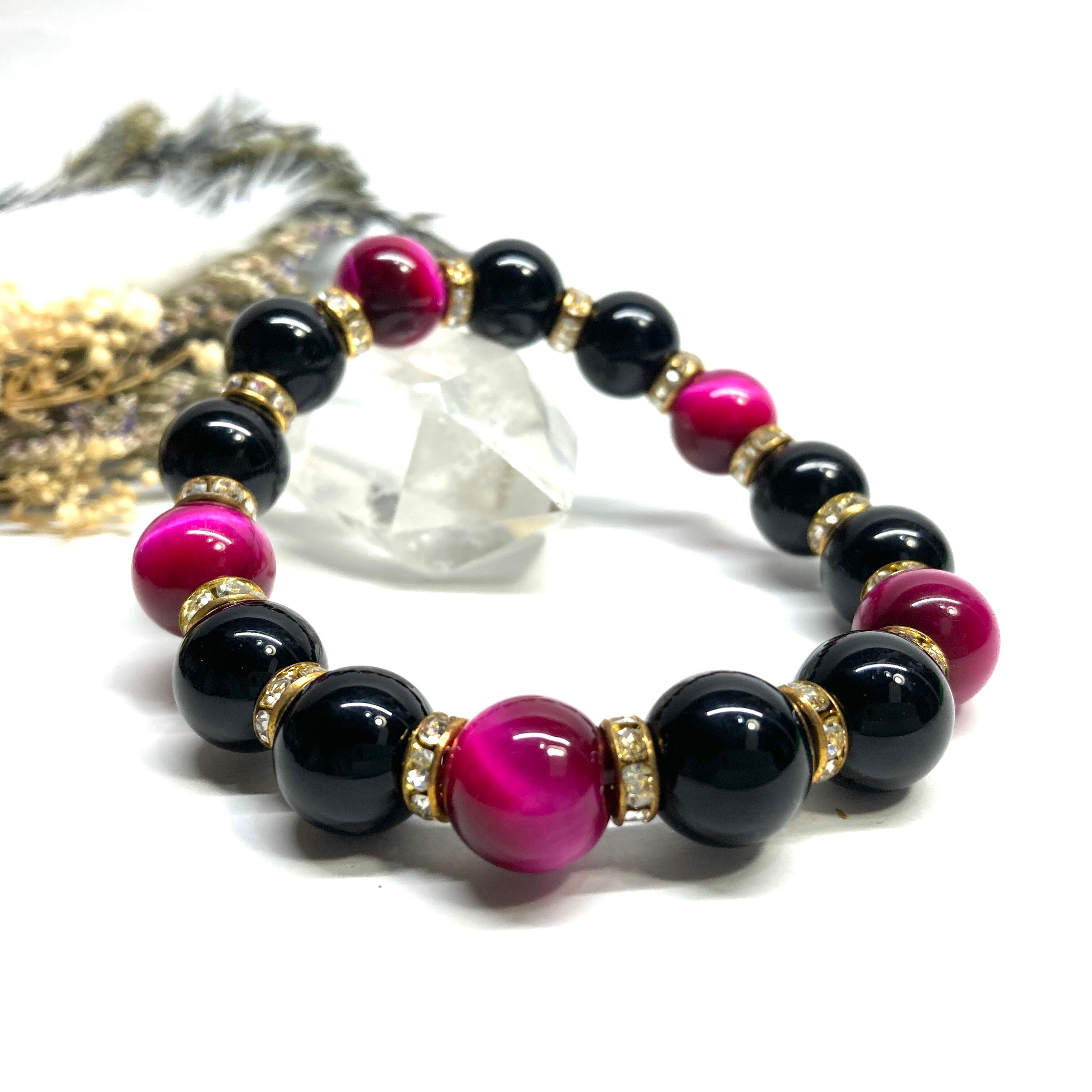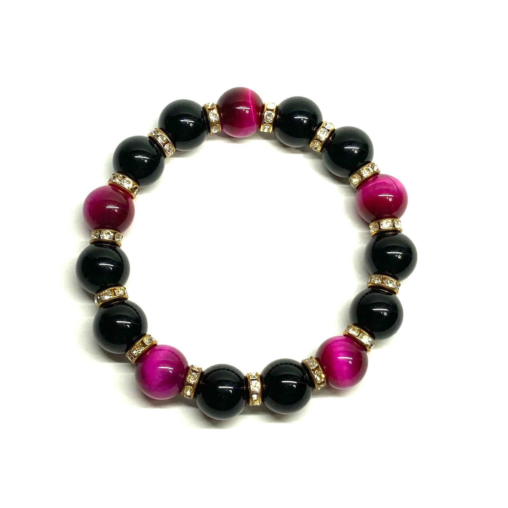 こちらは、モリオンとピンクタイガーアイを組み合わせたパワーストーンブレスレットです。間にはロンデルを挟み高級感あるデザインに仕上げております。石大きさは12mm玉を使用して内周 約18cmです。気になる方は是非この機会にどうぞ。