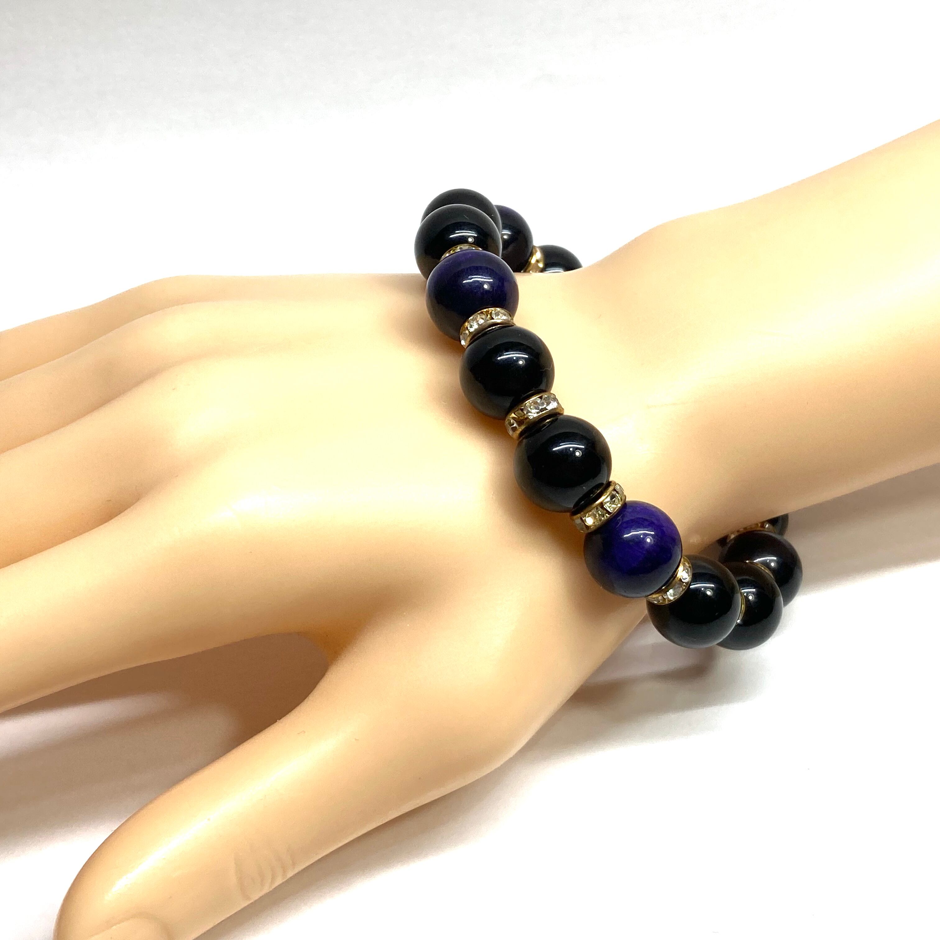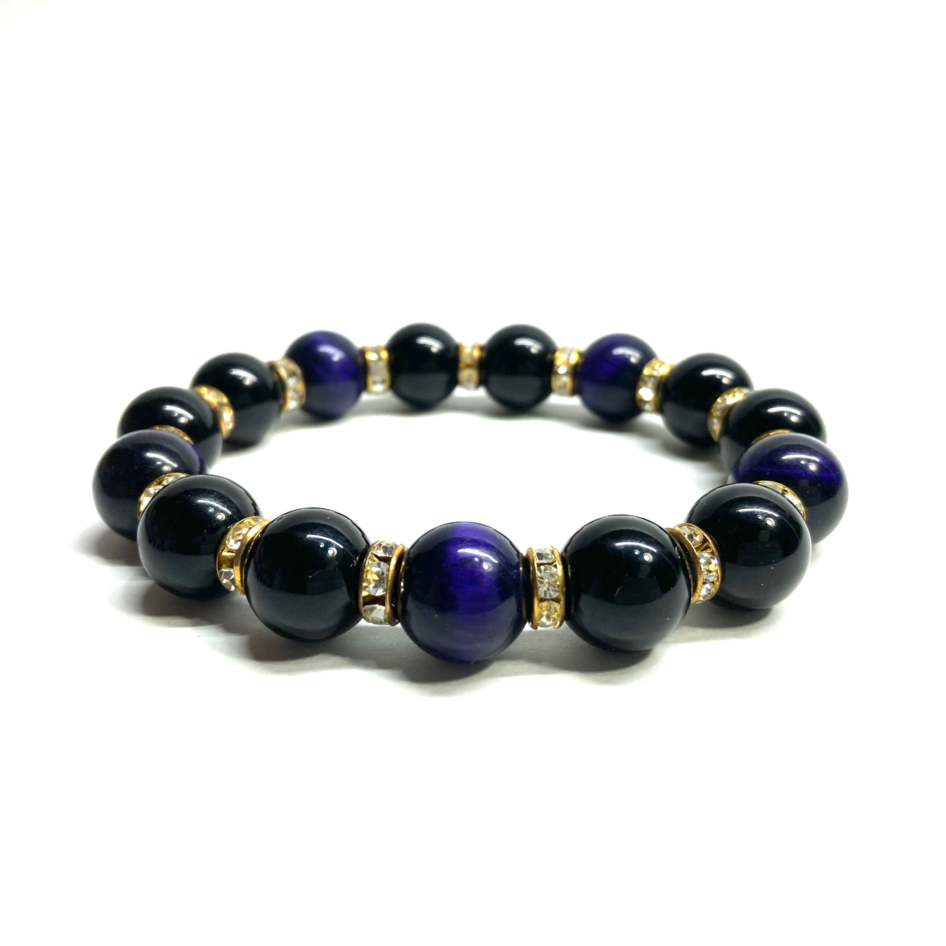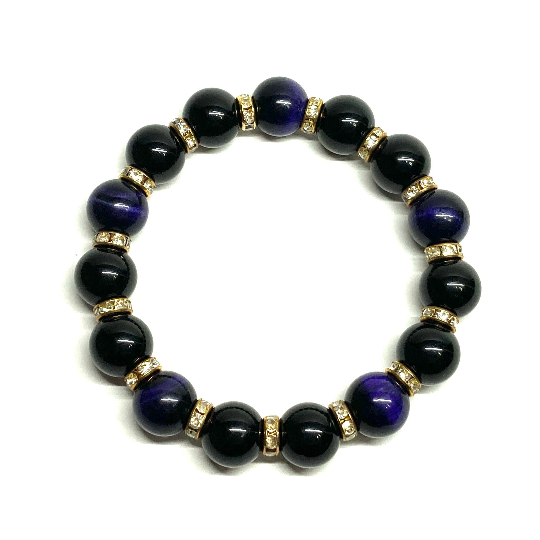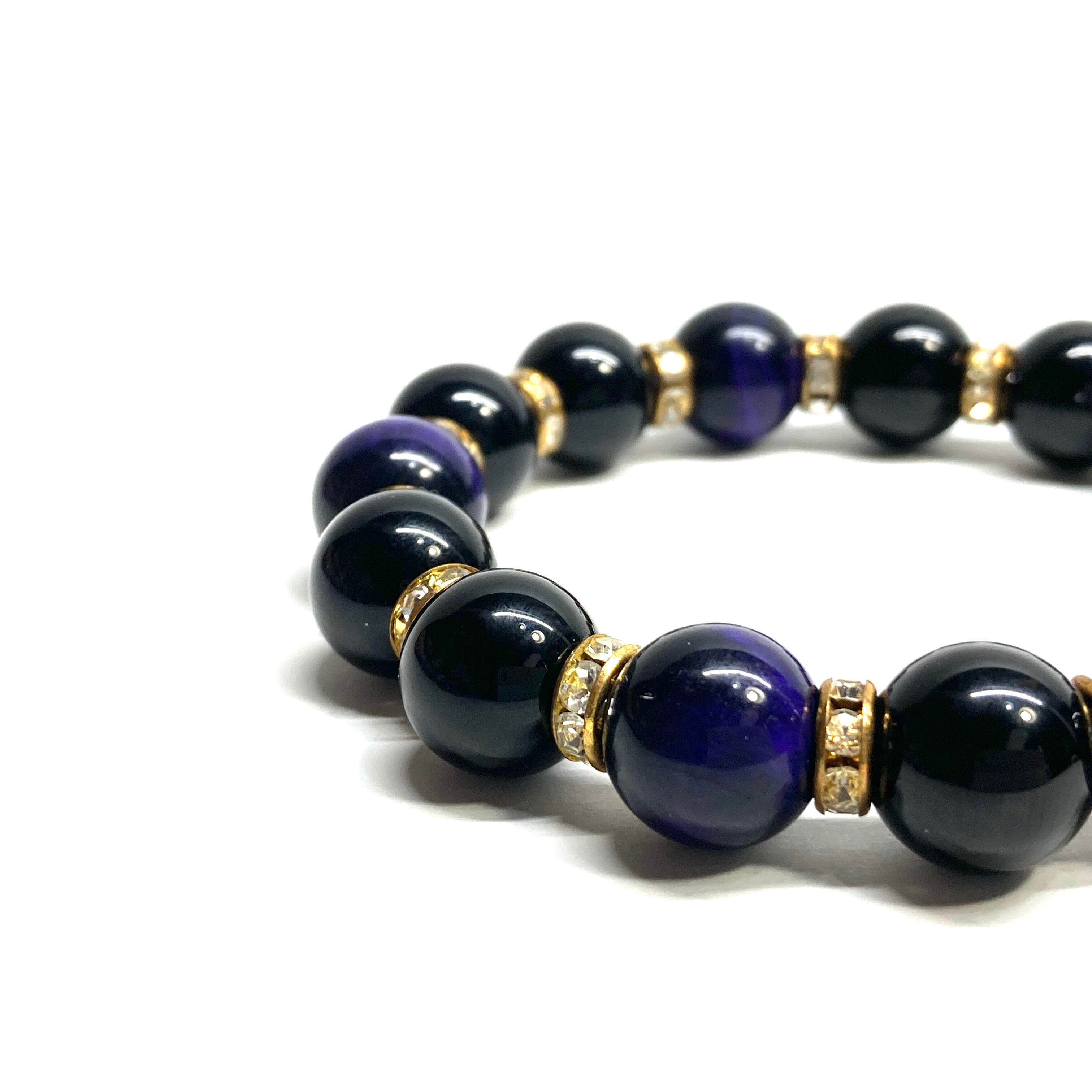 こちらは、モリオンとパープルタイガーアイを組み合わせたパワーストーンブレスレットです。間にはロンデルを挟み高級感あるデザインに仕上げております。石大きさは12mm玉を使用して内周 約18cmです。気になる方は是非この機会にどうぞ。