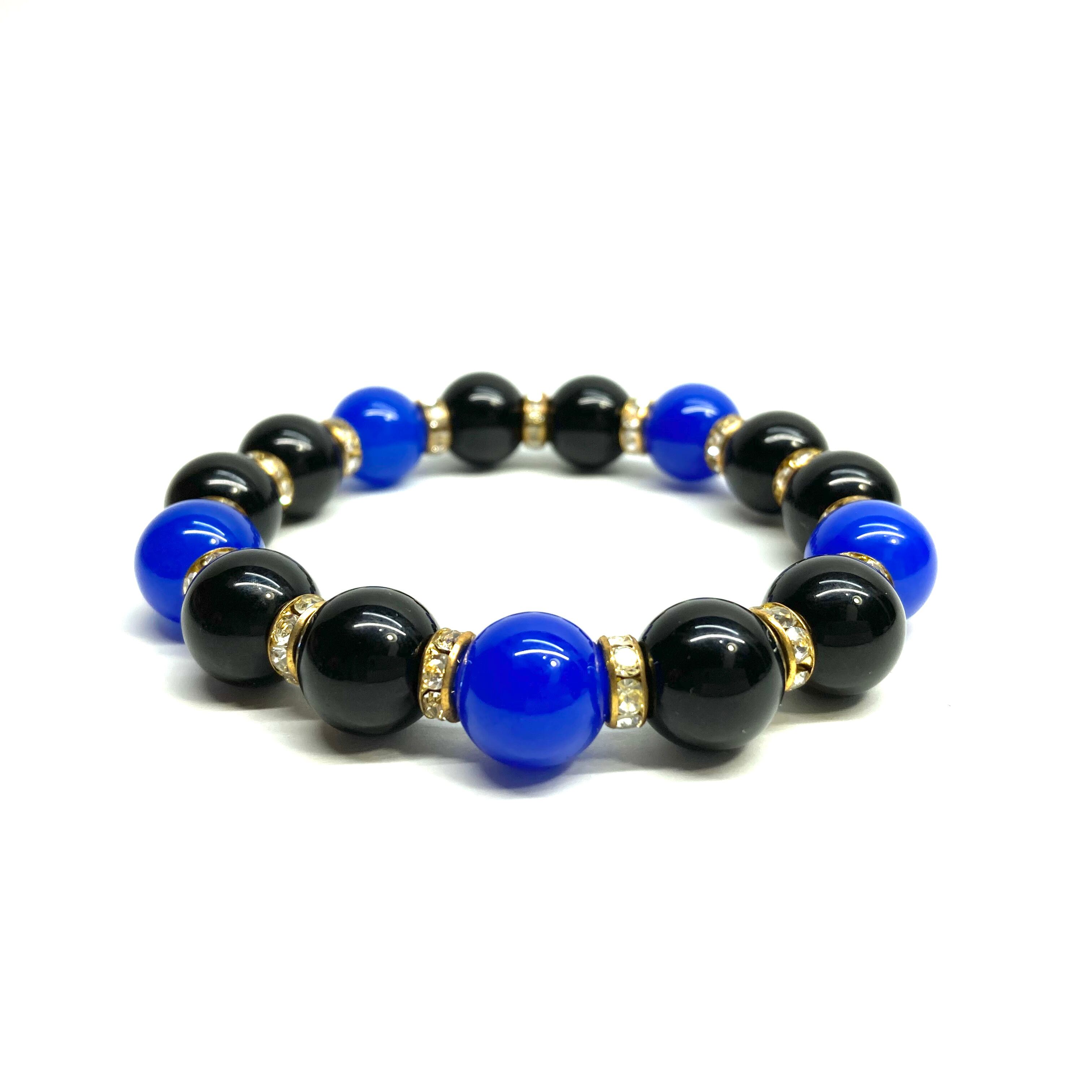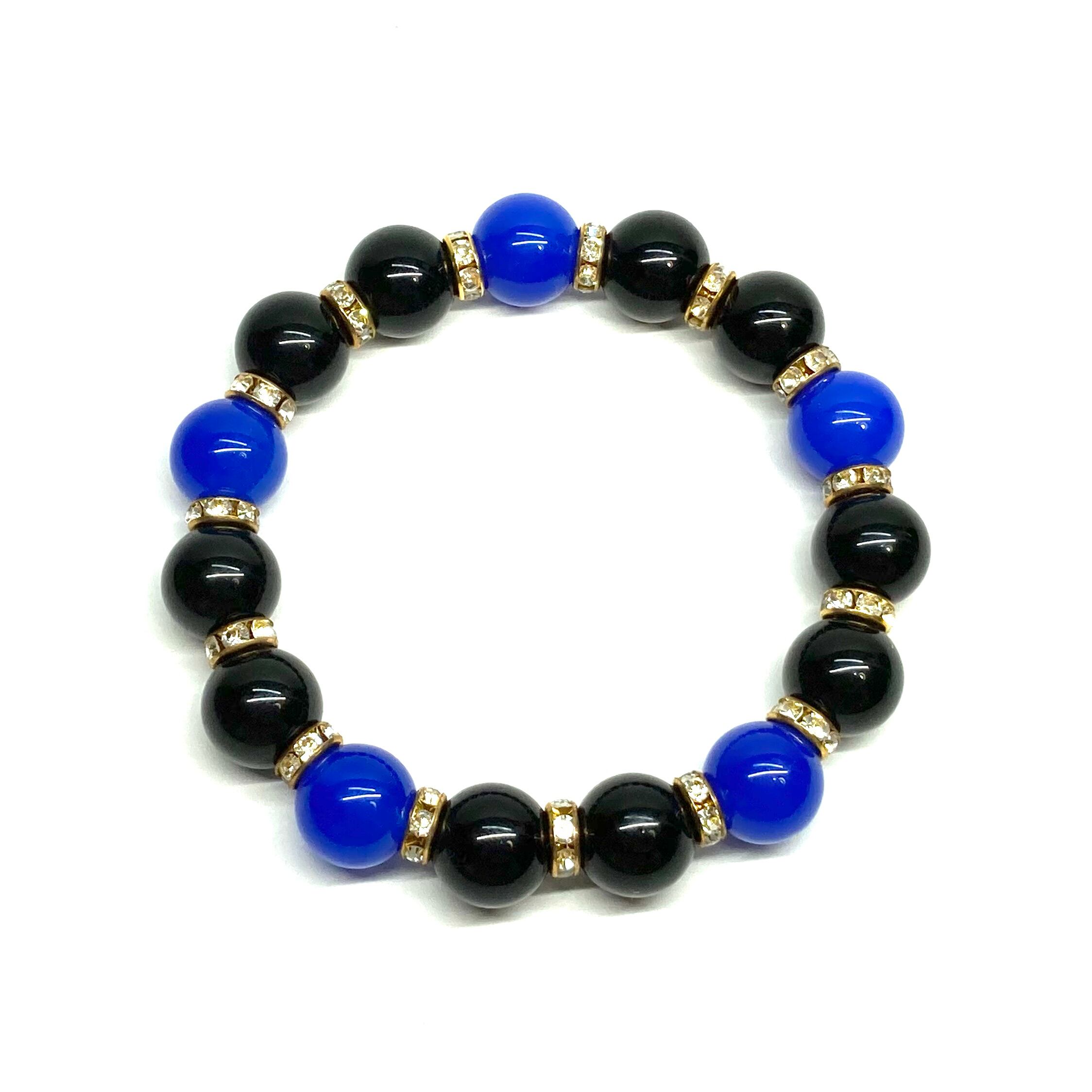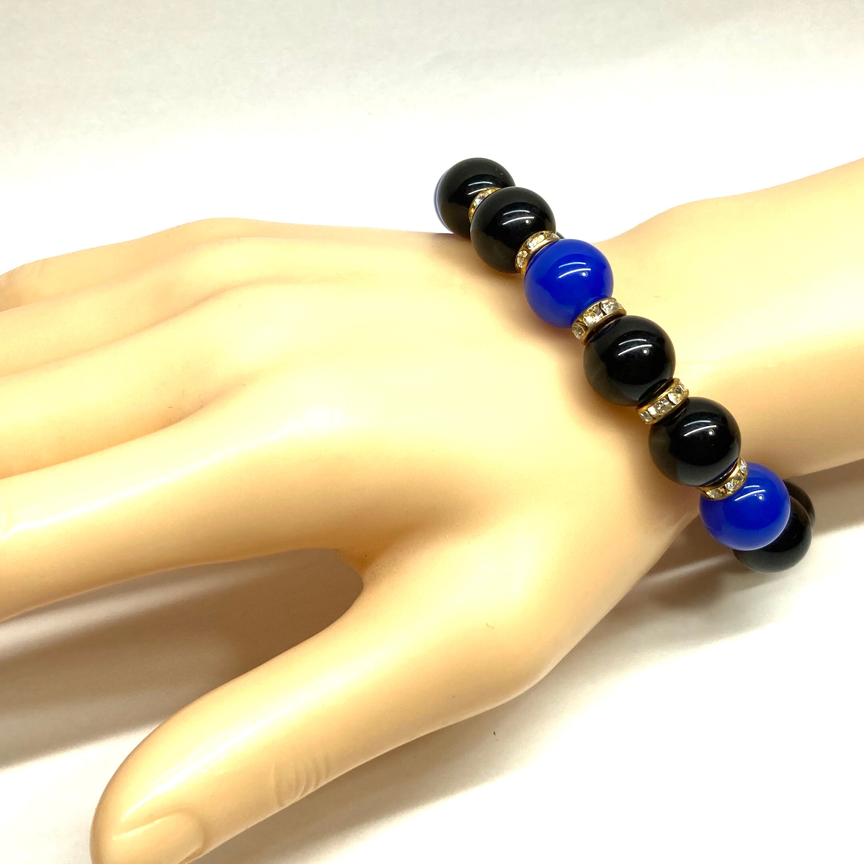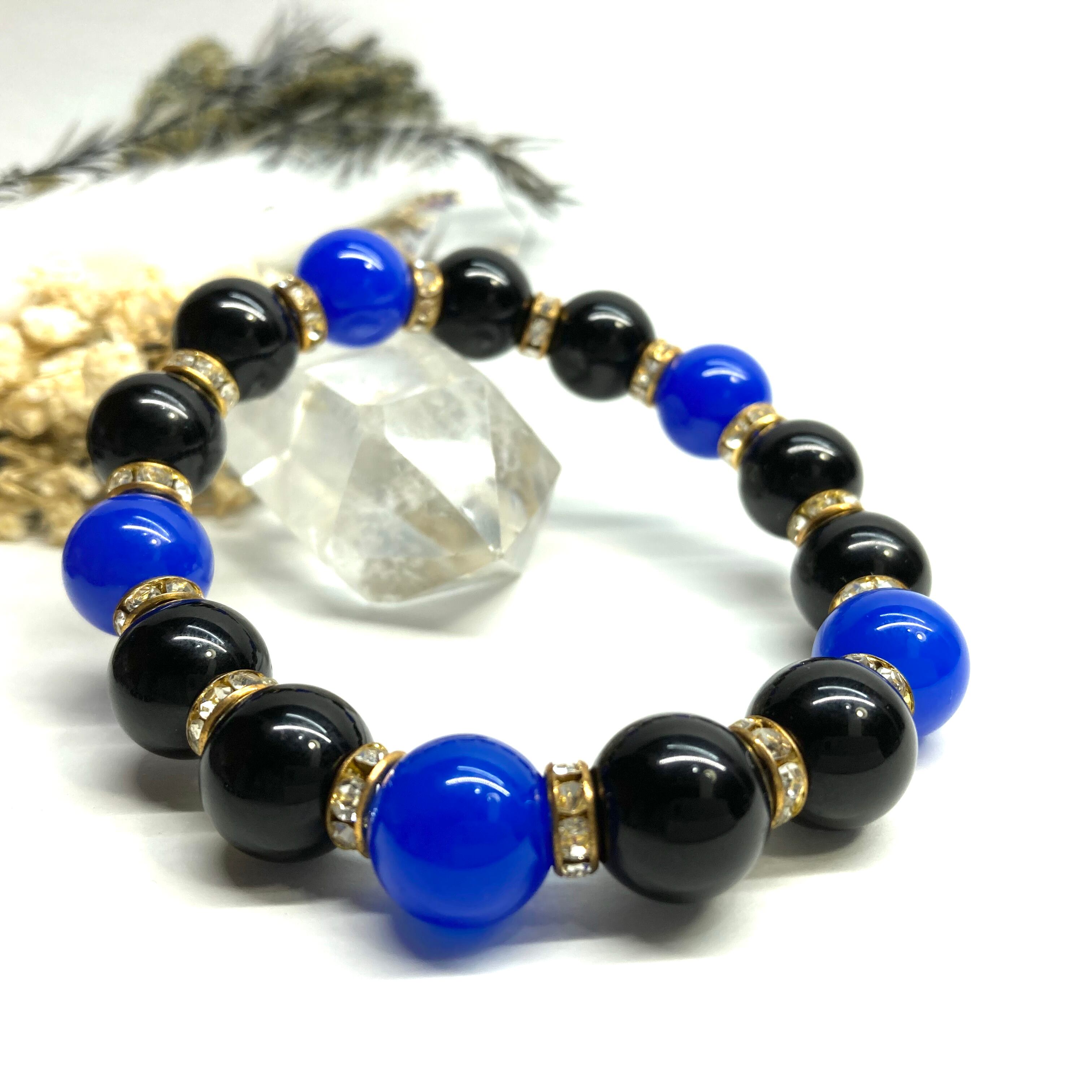 こちらは、モリオンと青瑪瑙を組み合わせたパワーストーンブレスレットです。間にはロンデルを挟み高級感あるデザインに仕上げております。石大きさは12mm玉を使用して内周 約18cmです。気になる方は是非この機会にどうぞ。