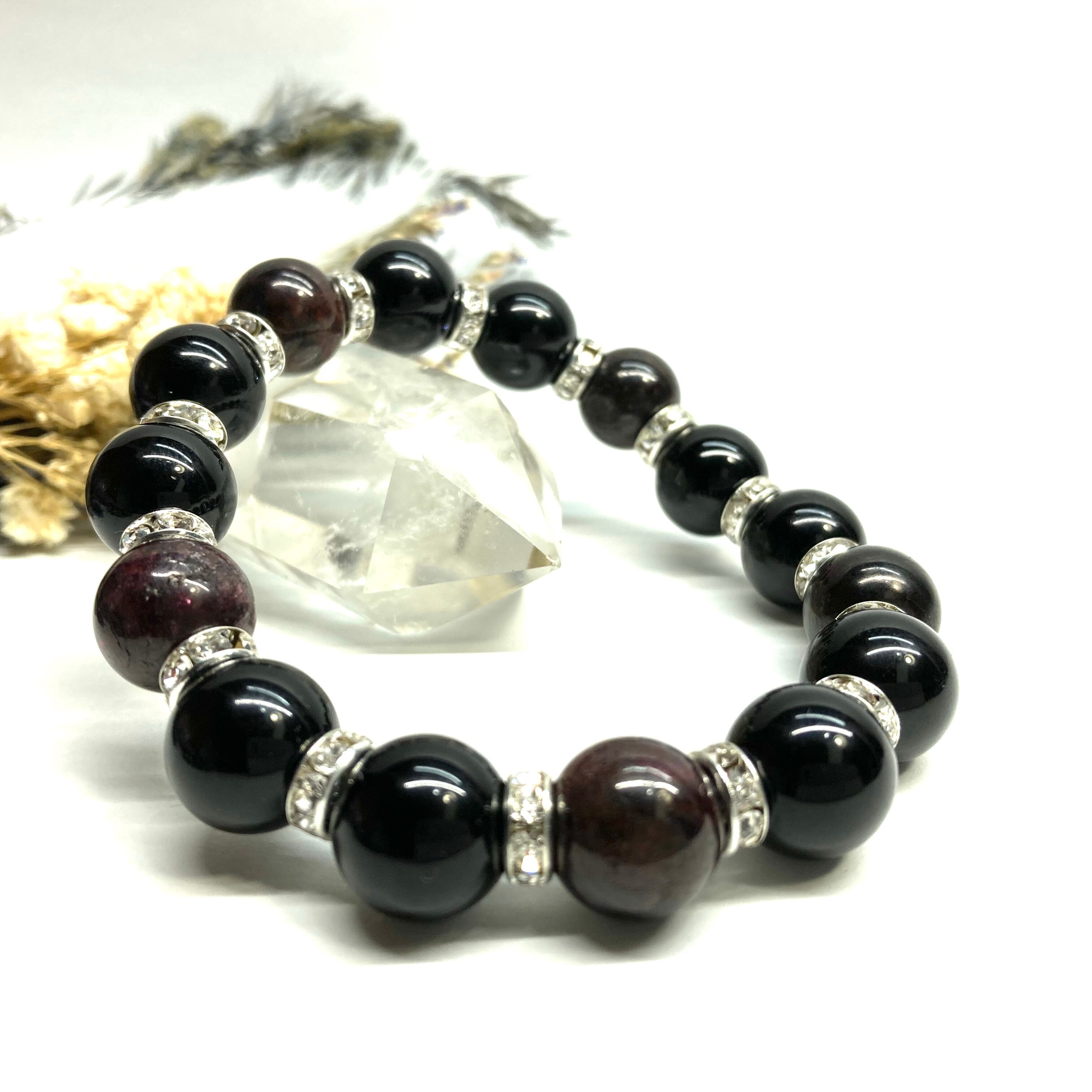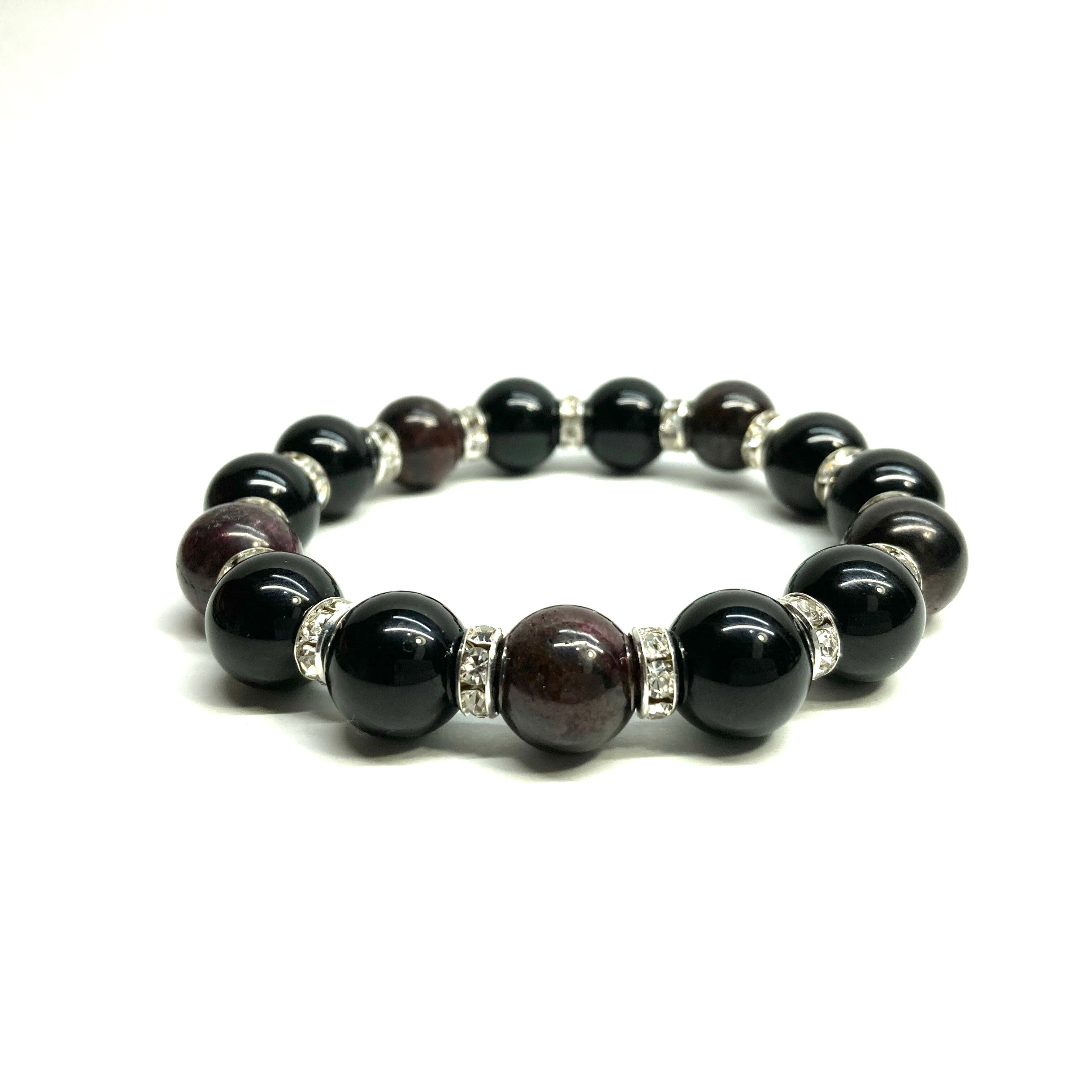 モリオン&ガーネット  パワーストーン ブレスレット 天然石ブレス (シルバー) 12mm 幸運 開運 厄払い メンズ 男性 ☆