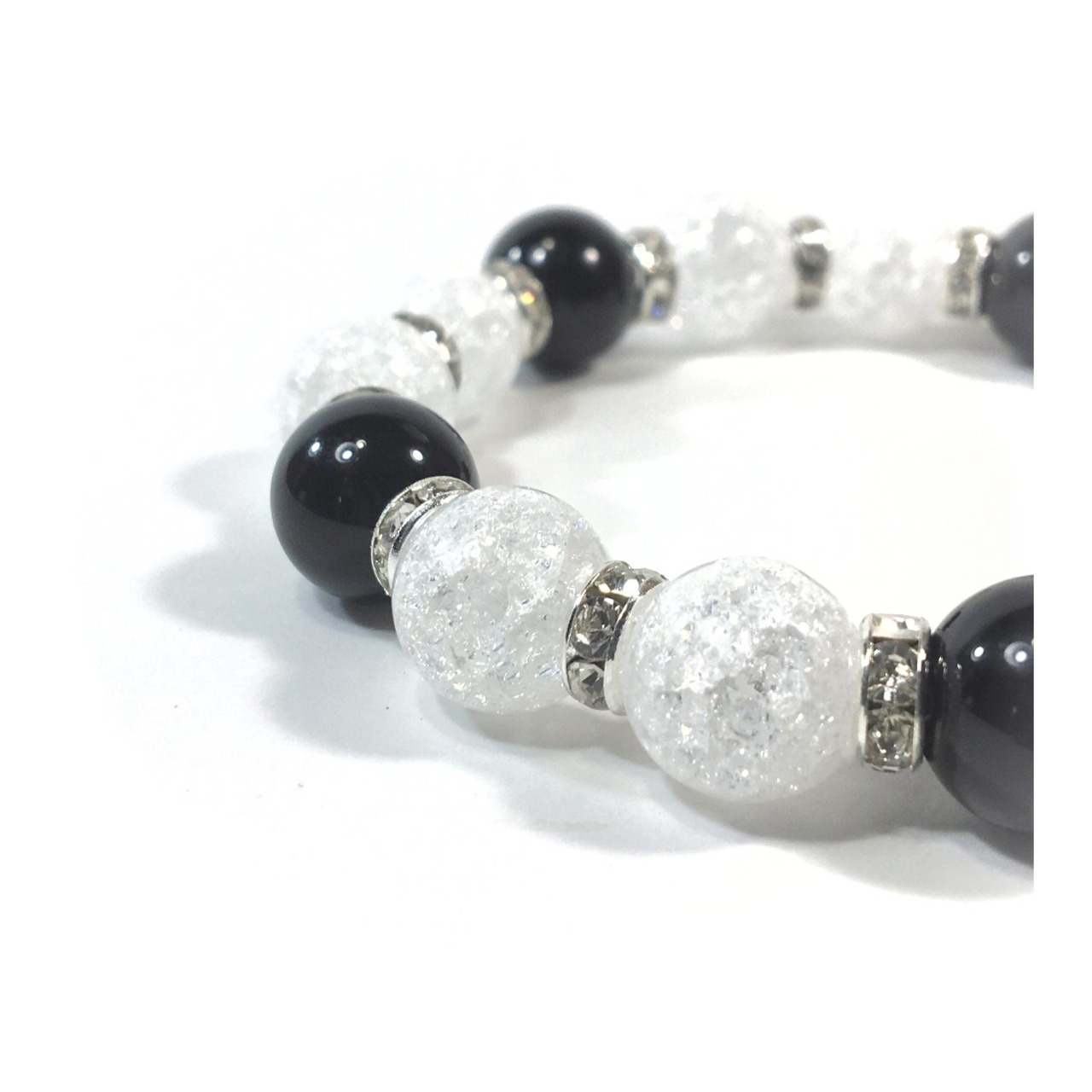 クラック水晶&オニキス パワーストーン ブレスレット 12mm (シルバー)メンズ・レディース 男性・女性 数珠ブレス 開運 ☆
