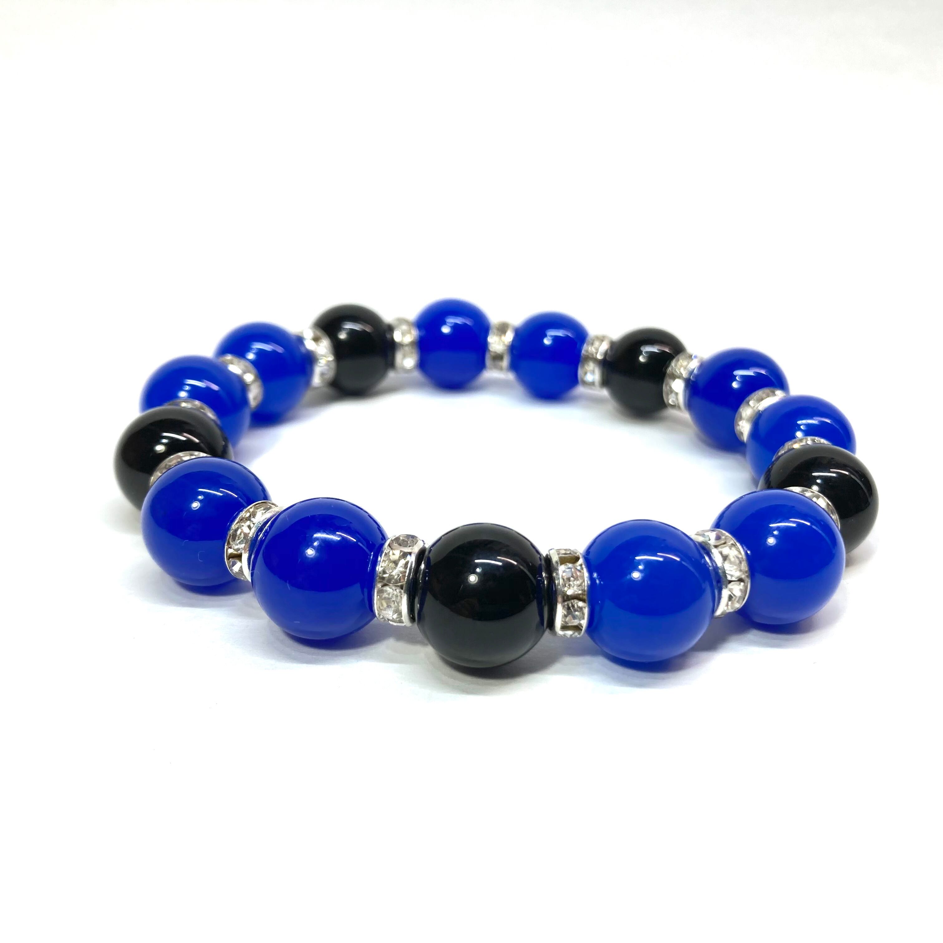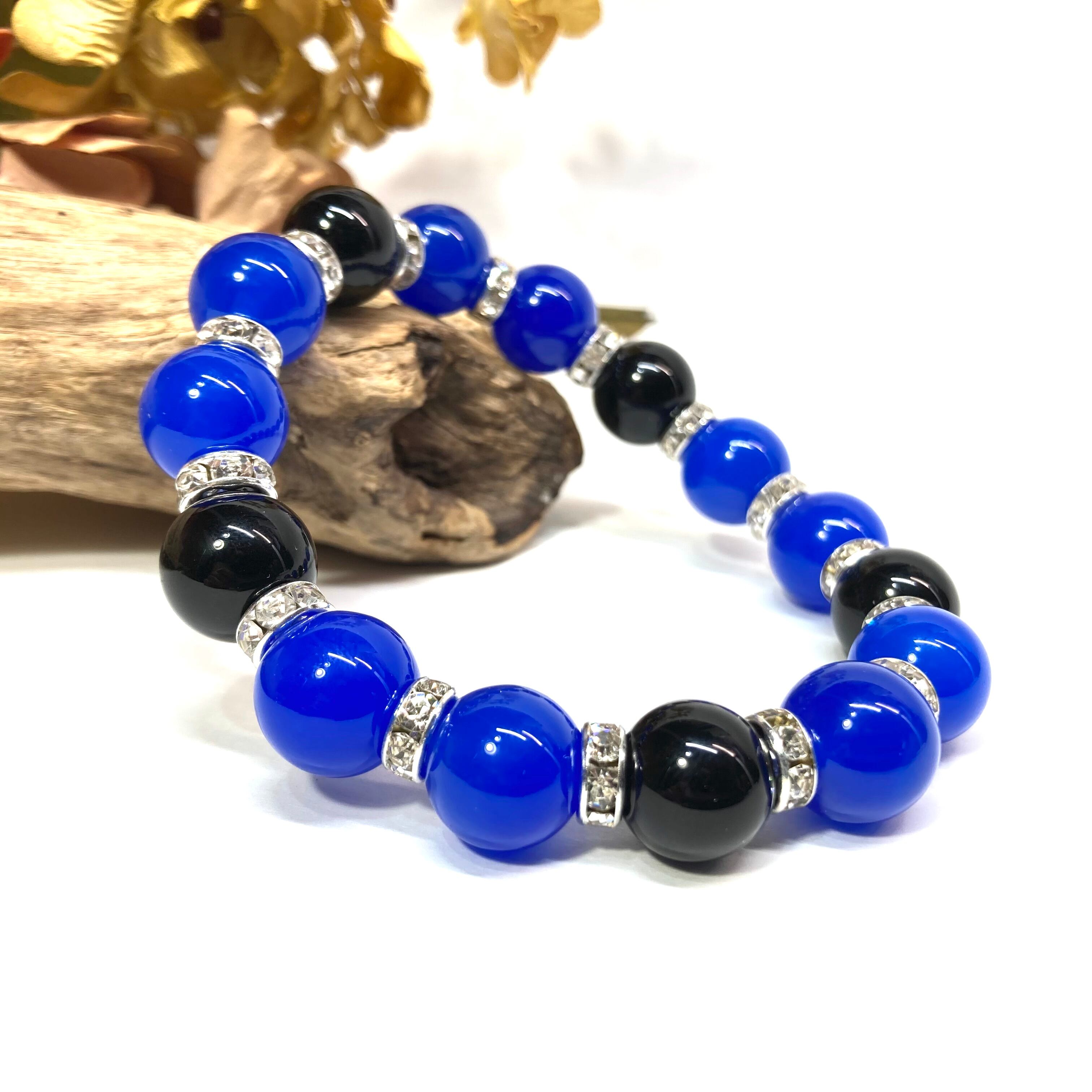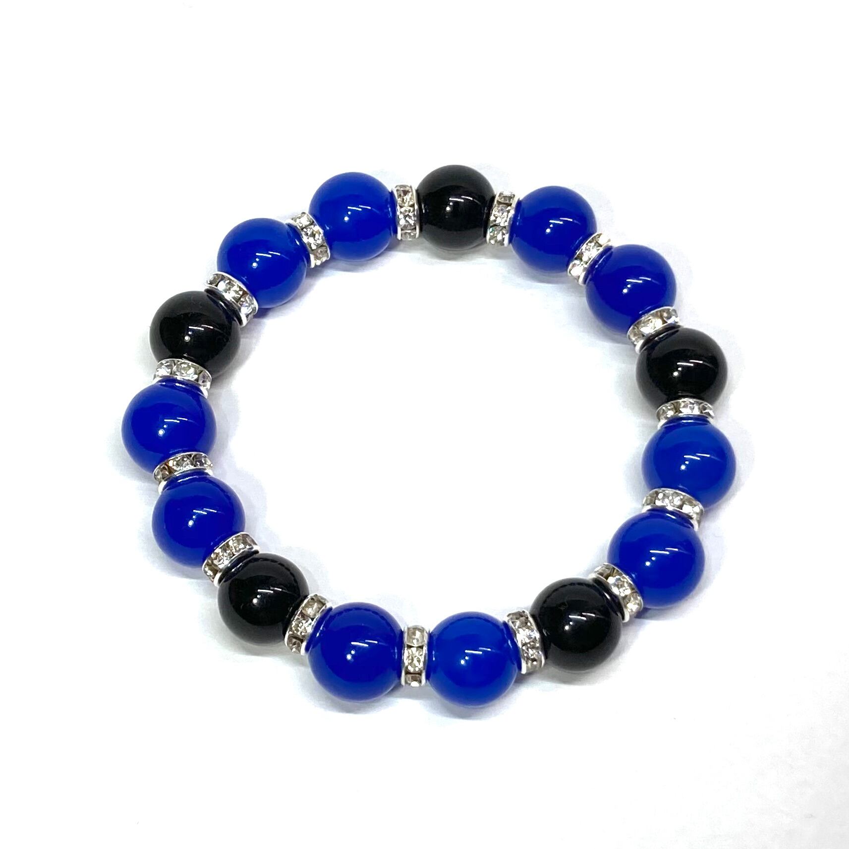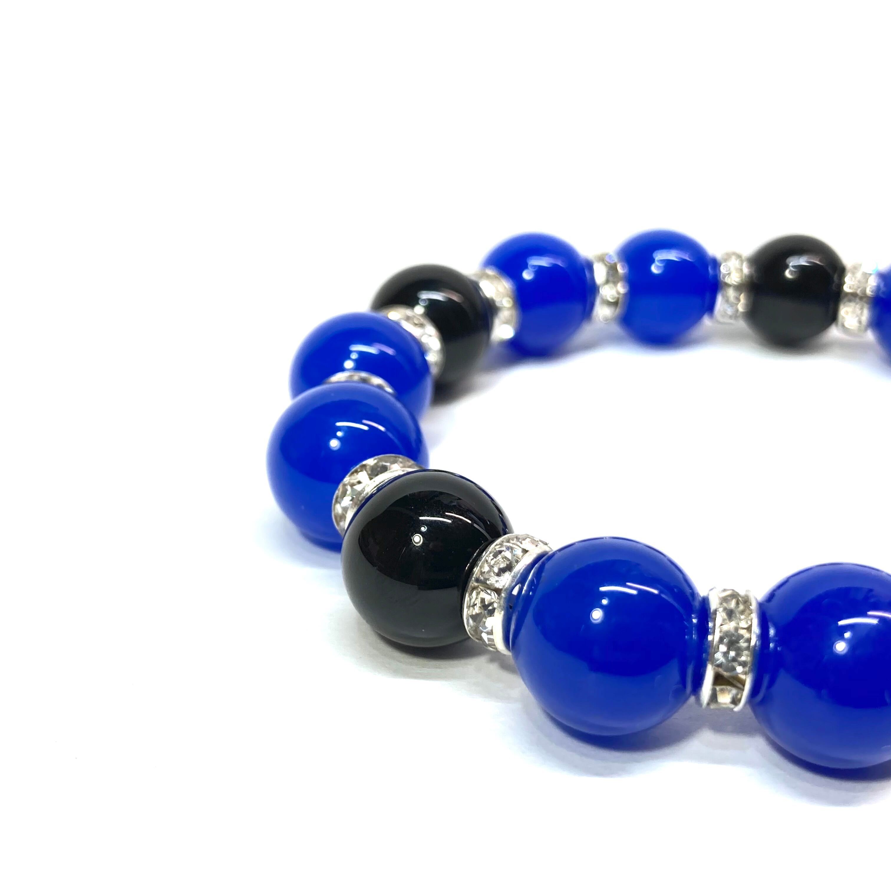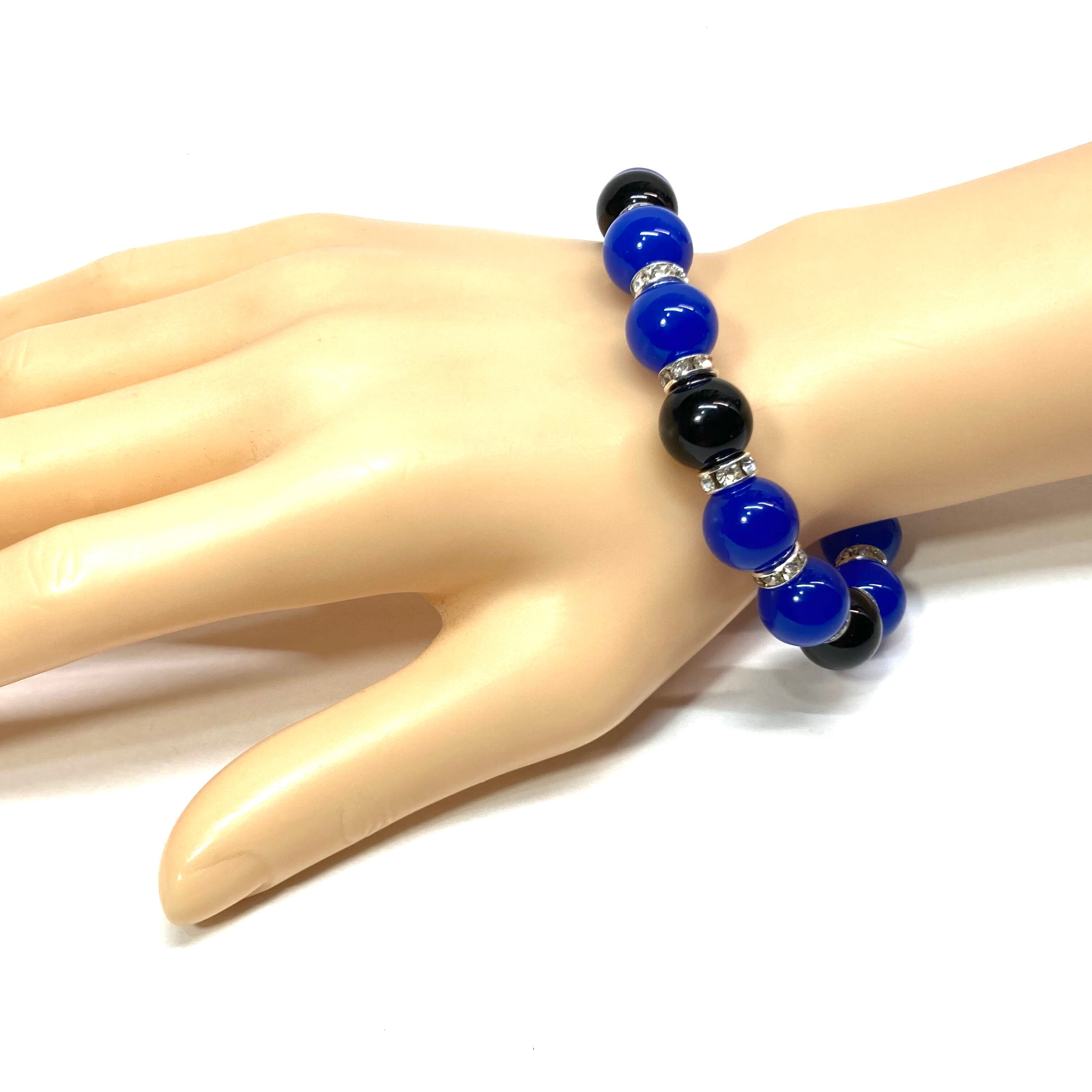 こちらは、12mm玉の青瑪瑙とオニキスを組み合わせたパワーストーンブレスレットです。間にはロンデルを挟み高級感あるデザインに仕上げております。石大きさは12mm玉を使用して内径約18cmです。(サイズ変更の場合は取引ナビにてご連絡をお願いします。) 数に限りがございますので気になる方はお早めにどうぞ。