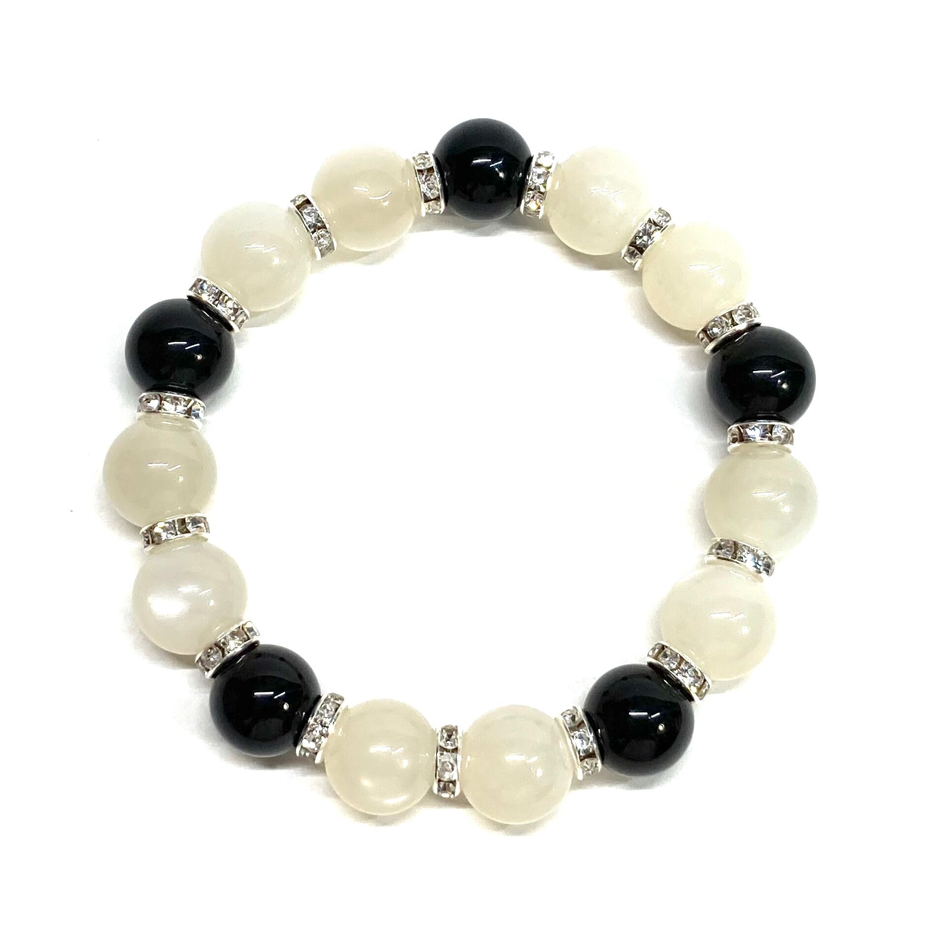 ムーンストーン&オニキス パワーストーン ブレスレット 12mm (シルバー)メンズ・レディース 男性・女性 数珠ブレス 開運 ☆