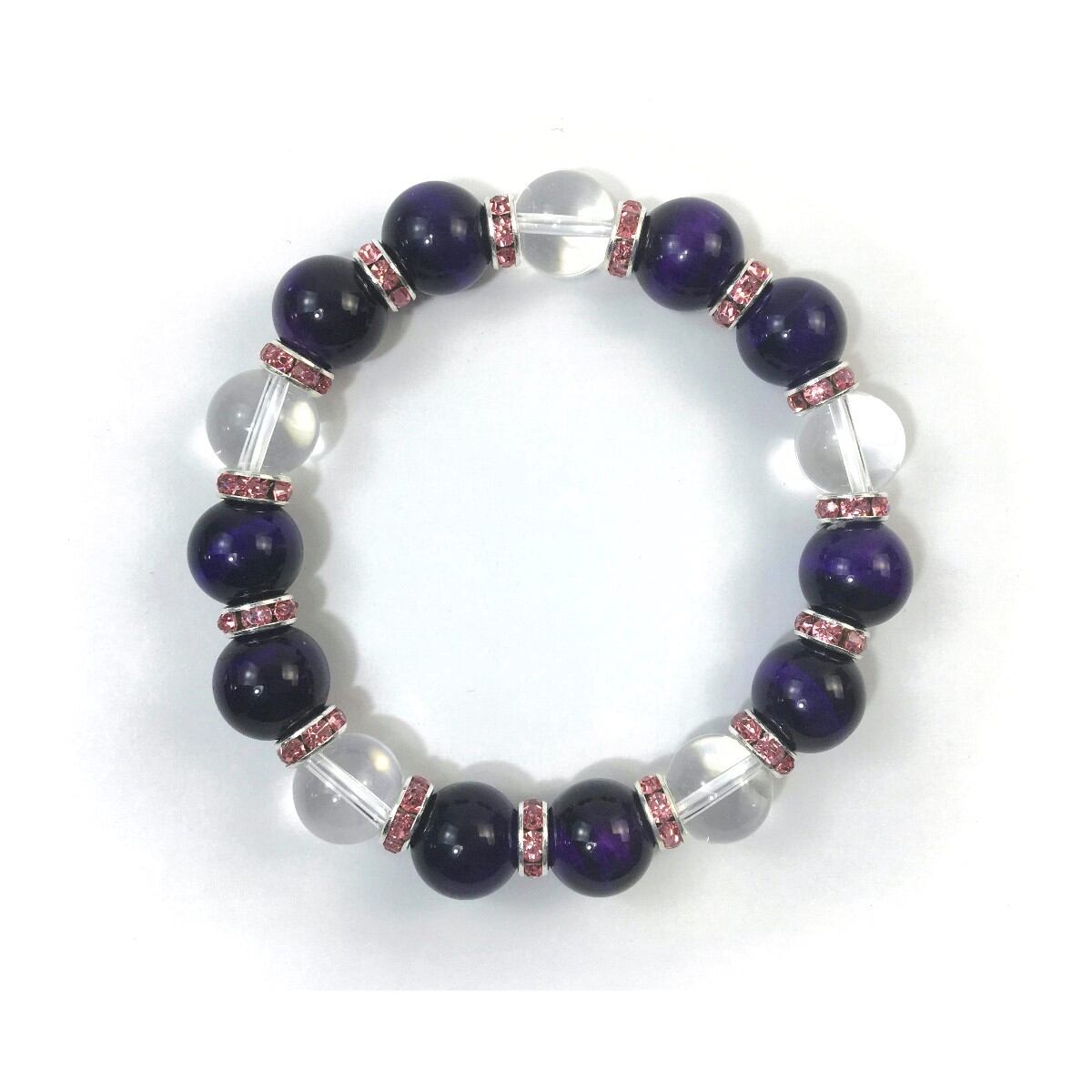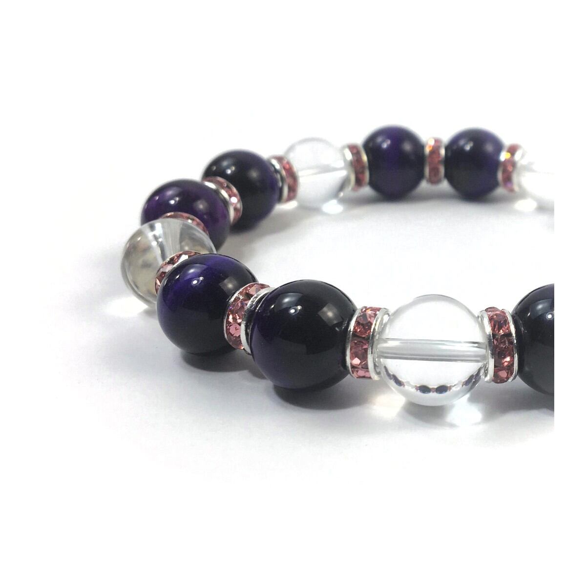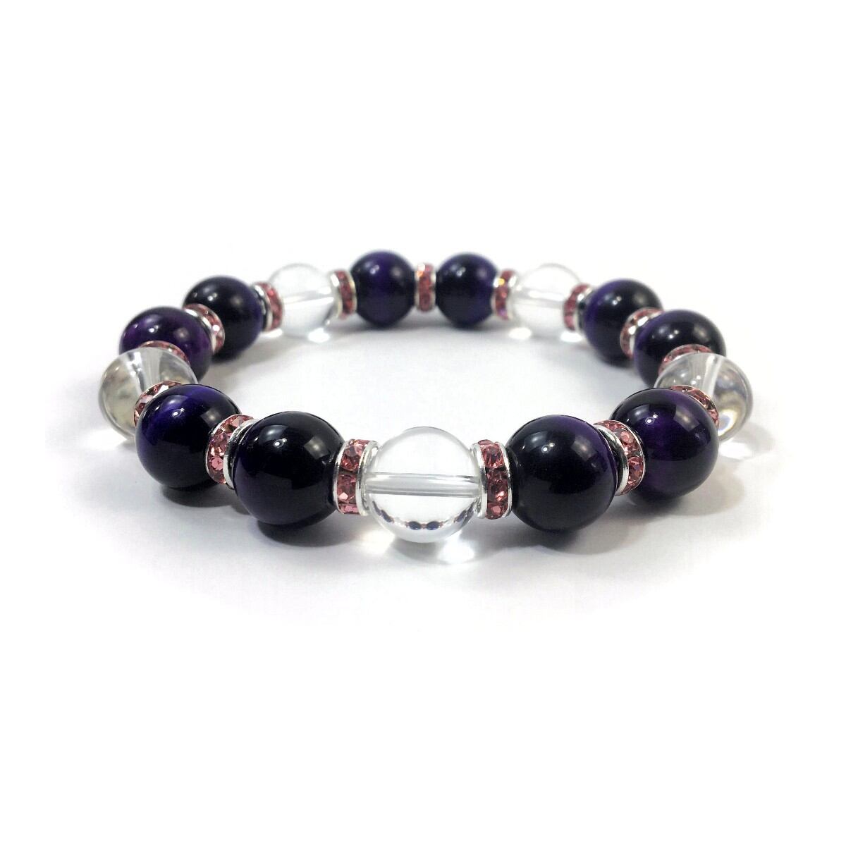 パープルタイガーアイ&水晶 パワーストーン ブレスレット 12mm (ピンク)メンズ・レディース 男性・女性 数珠ブレス 開運 ☆