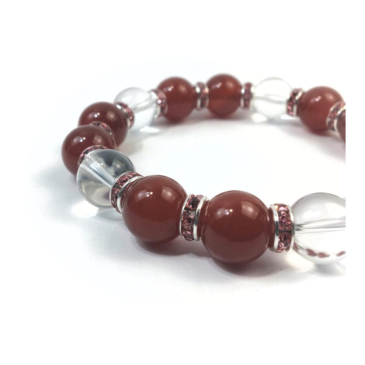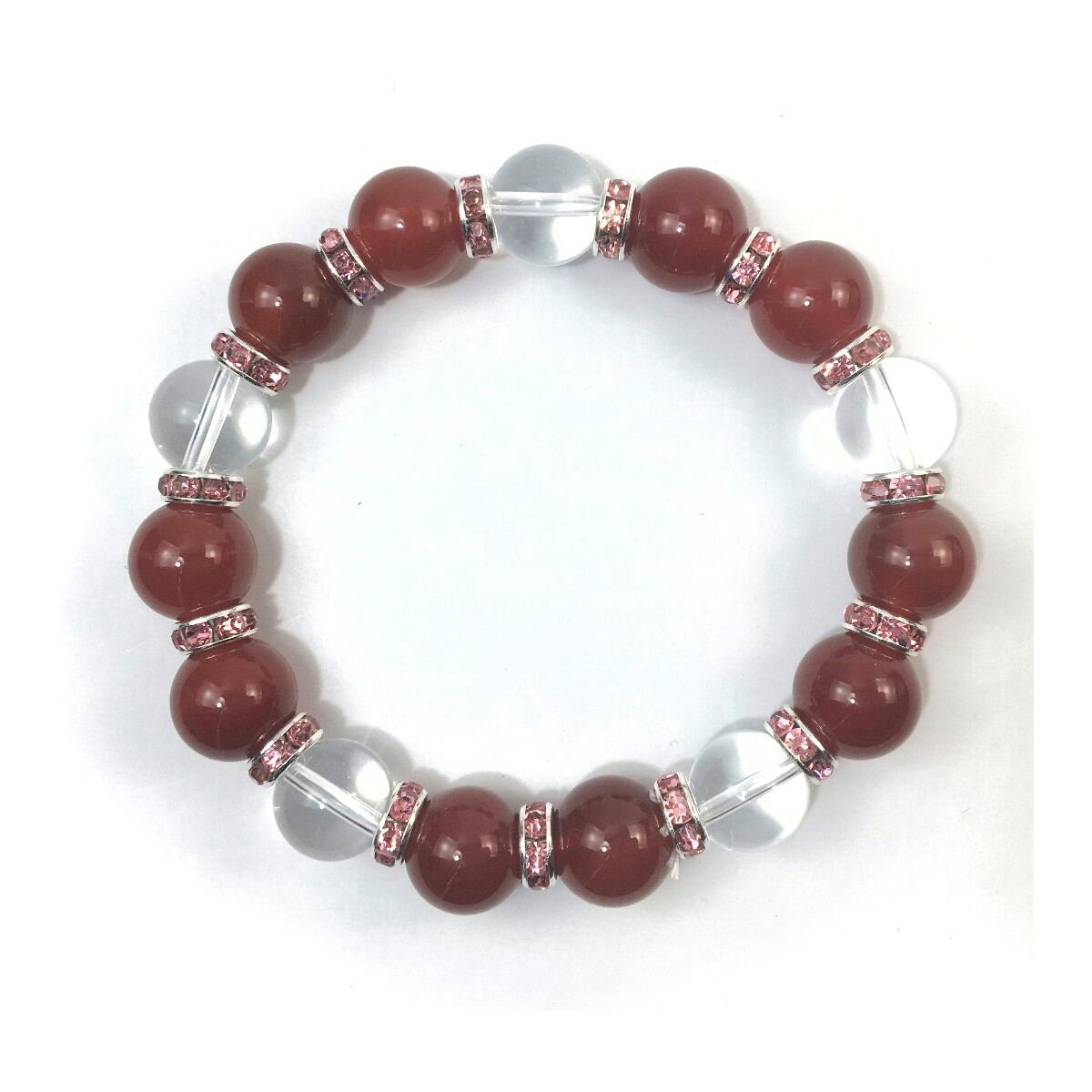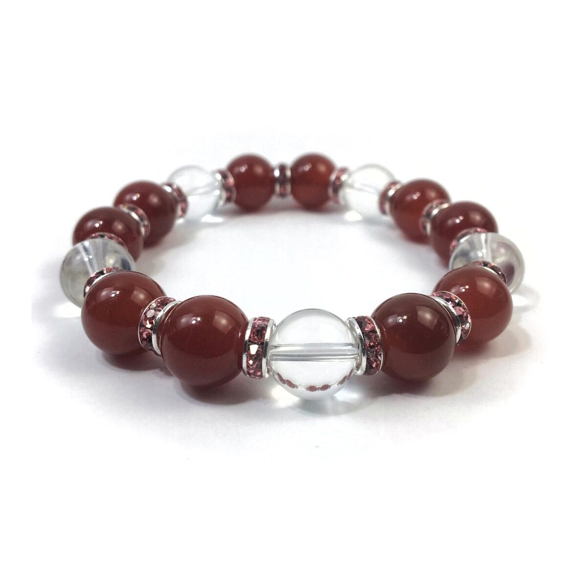 赤瑪瑙&水晶 パワーストーン ブレスレット 天然石 12mm (ピンク)メンズ・レディース 男性・女性 数珠ブレス 開運 ☆