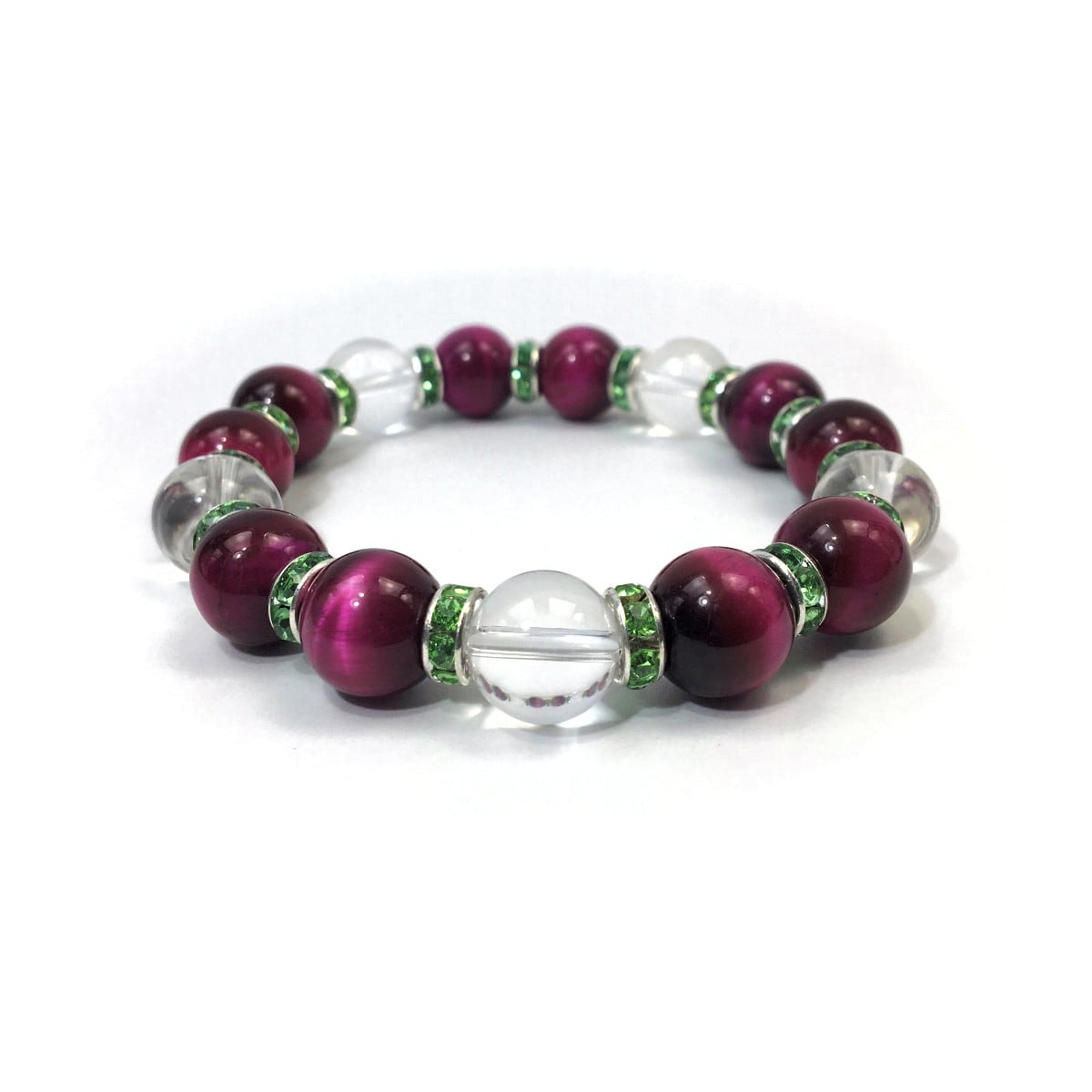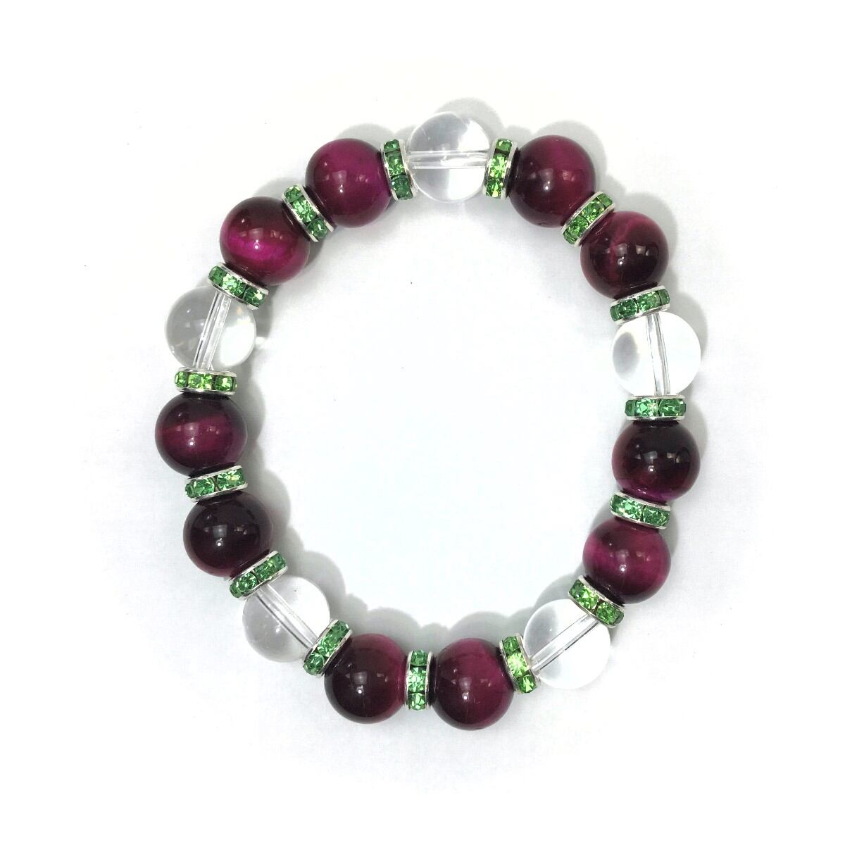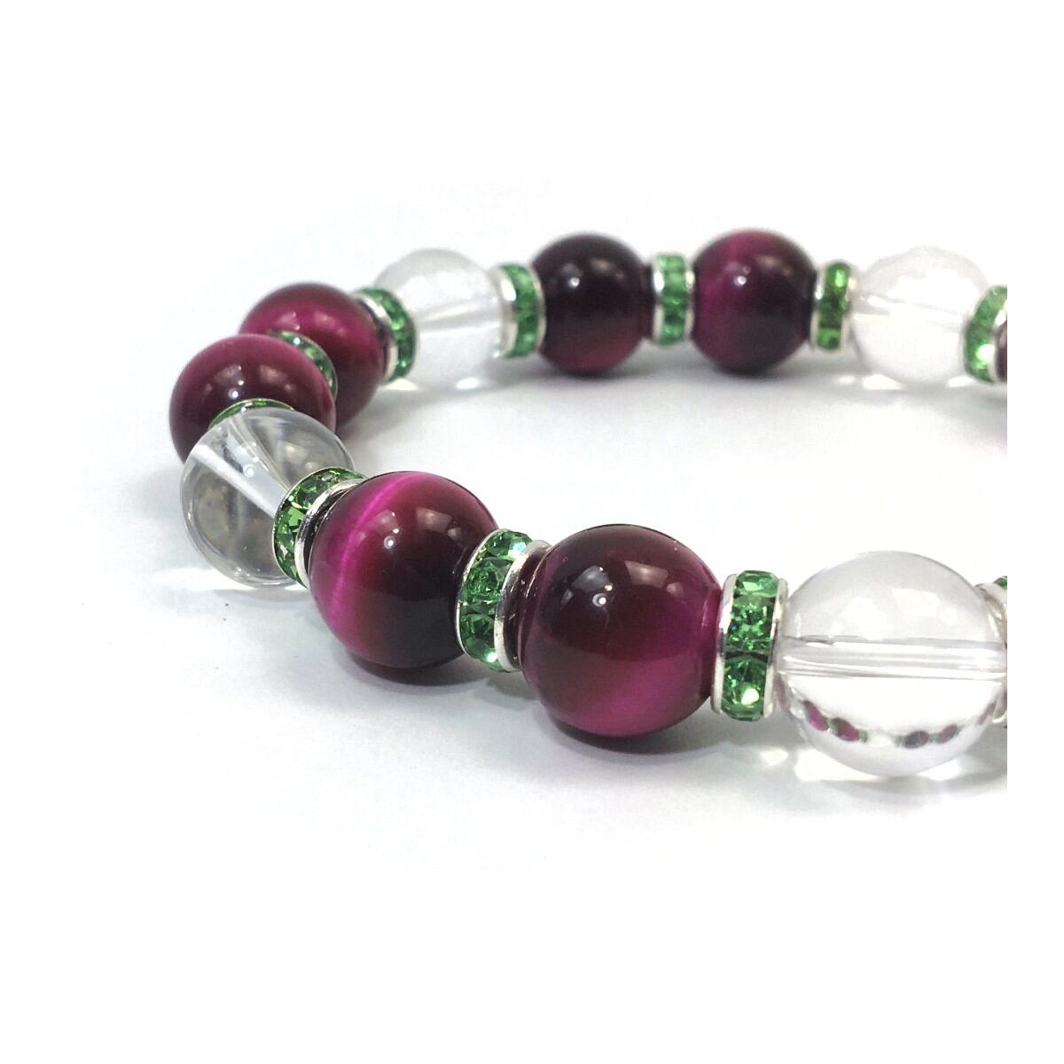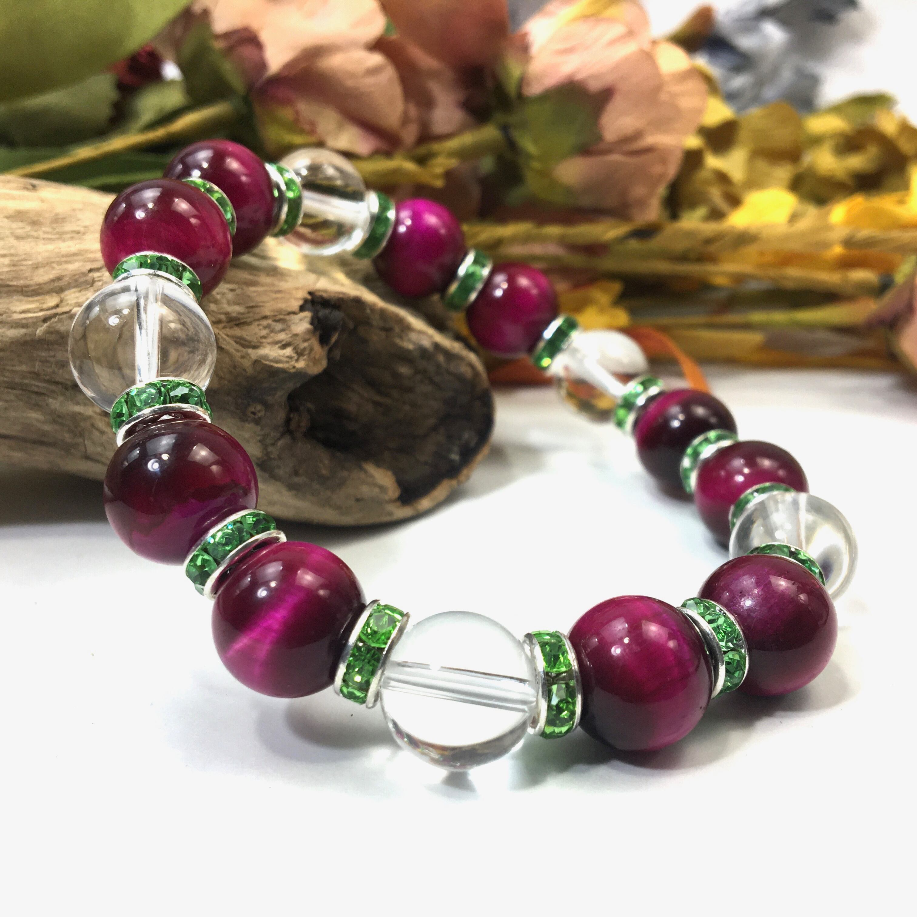 ピンクタイガーアイ&水晶 パワーストーン ブレスレット 12mm (グリーン)メンズ・レディース 男性・女性 数珠ブレス 開運 ☆