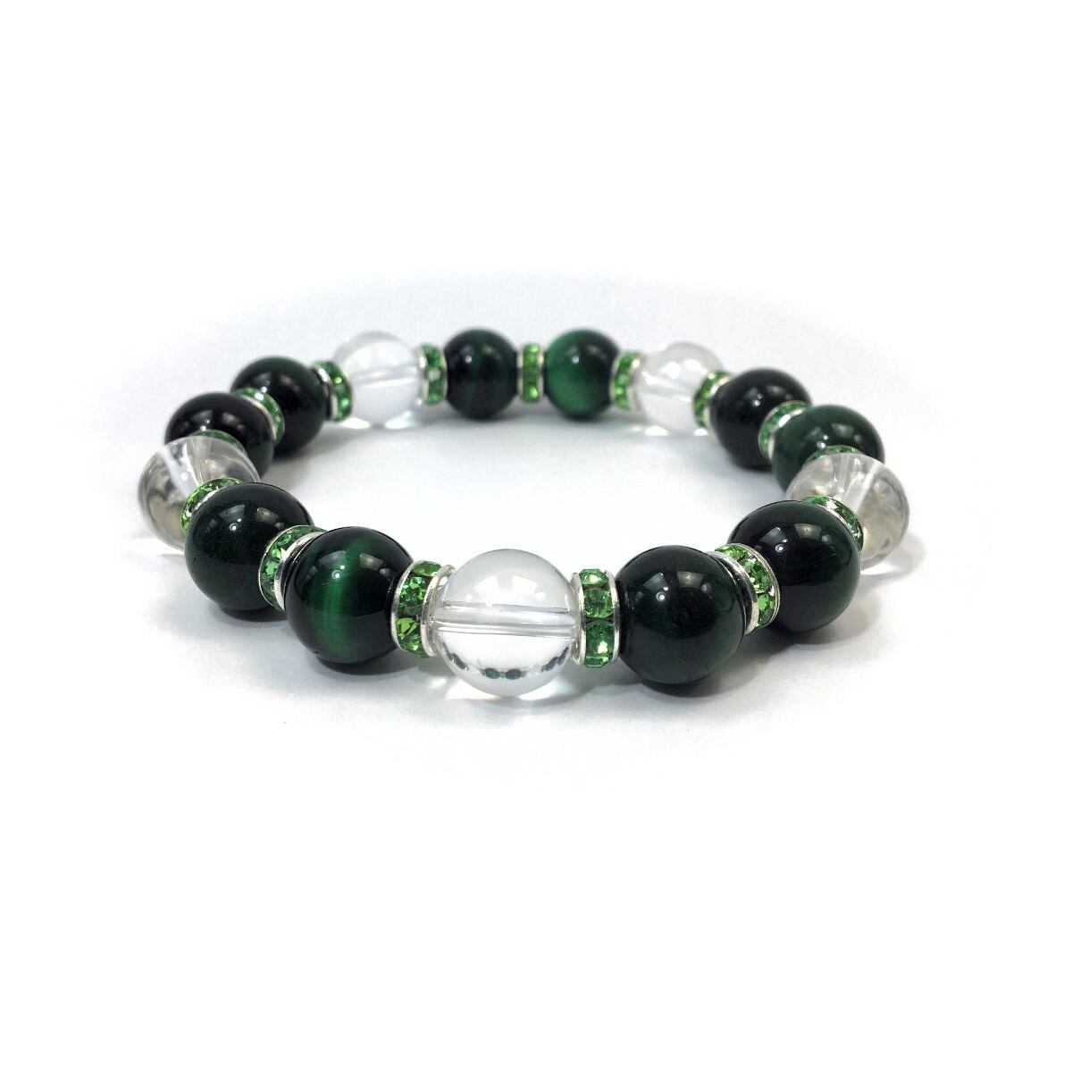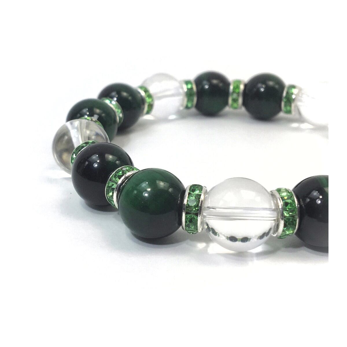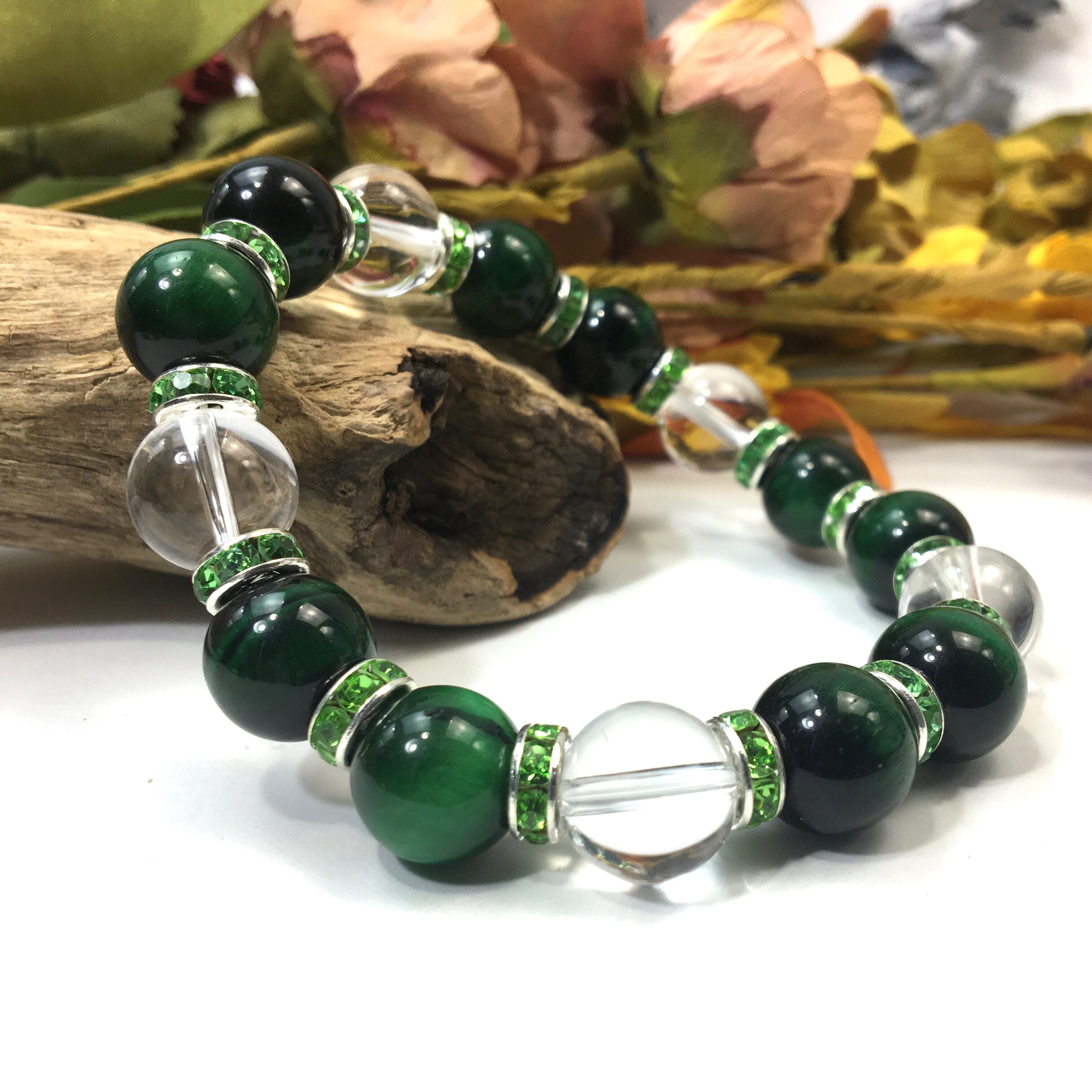 グリーンタイガーアイ&水晶 パワーストーン ブレスレット 12mm (グリーン)メンズ・レディース 男性・女性 数珠ブレス 開運 ☆