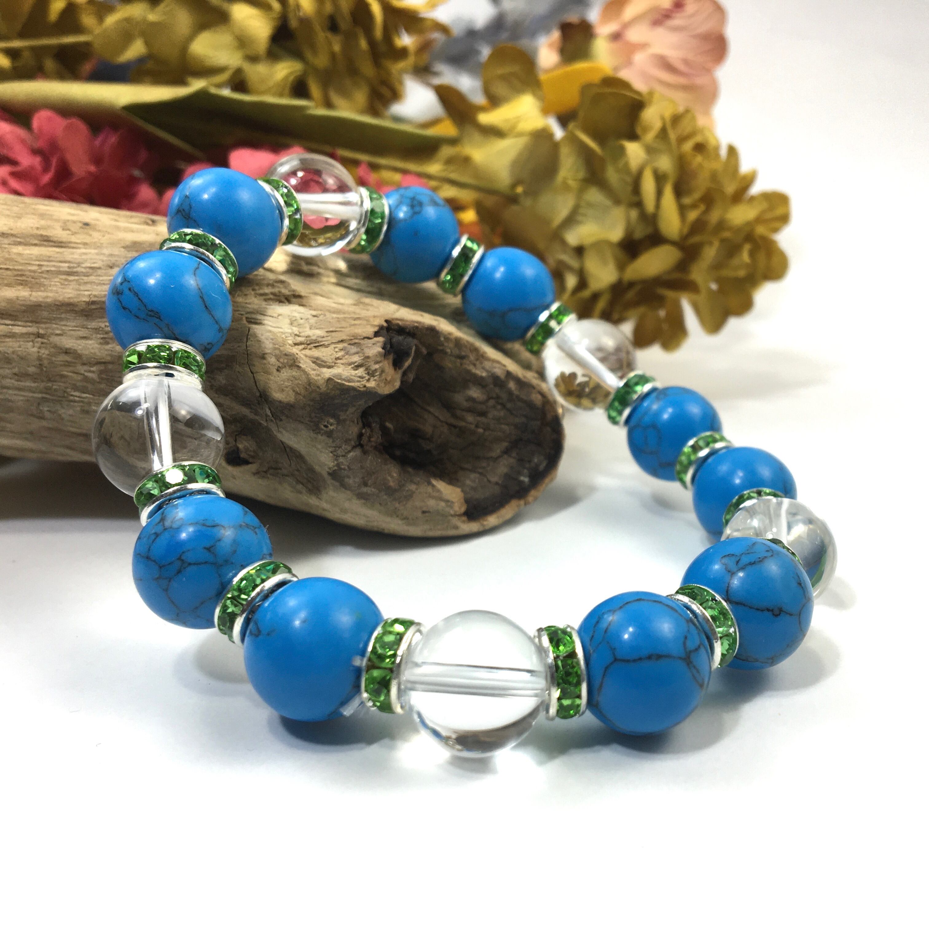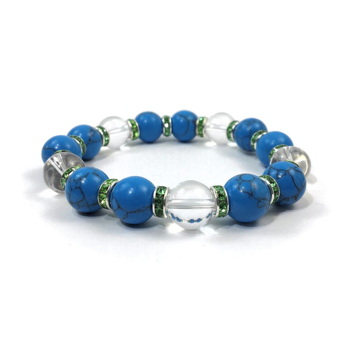 ターコイズ&水晶 パワーストーン ブレスレット 12mm (グリーン)メンズ・レディース 男性・女性 数珠ブレス 開運 ☆