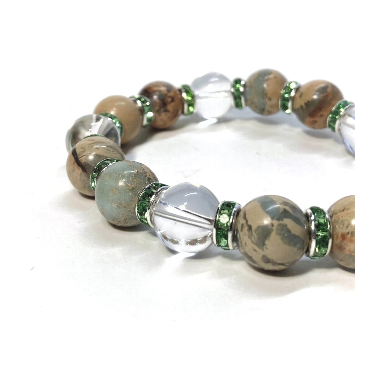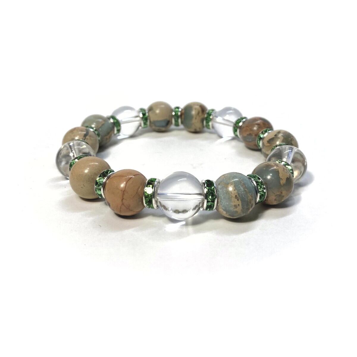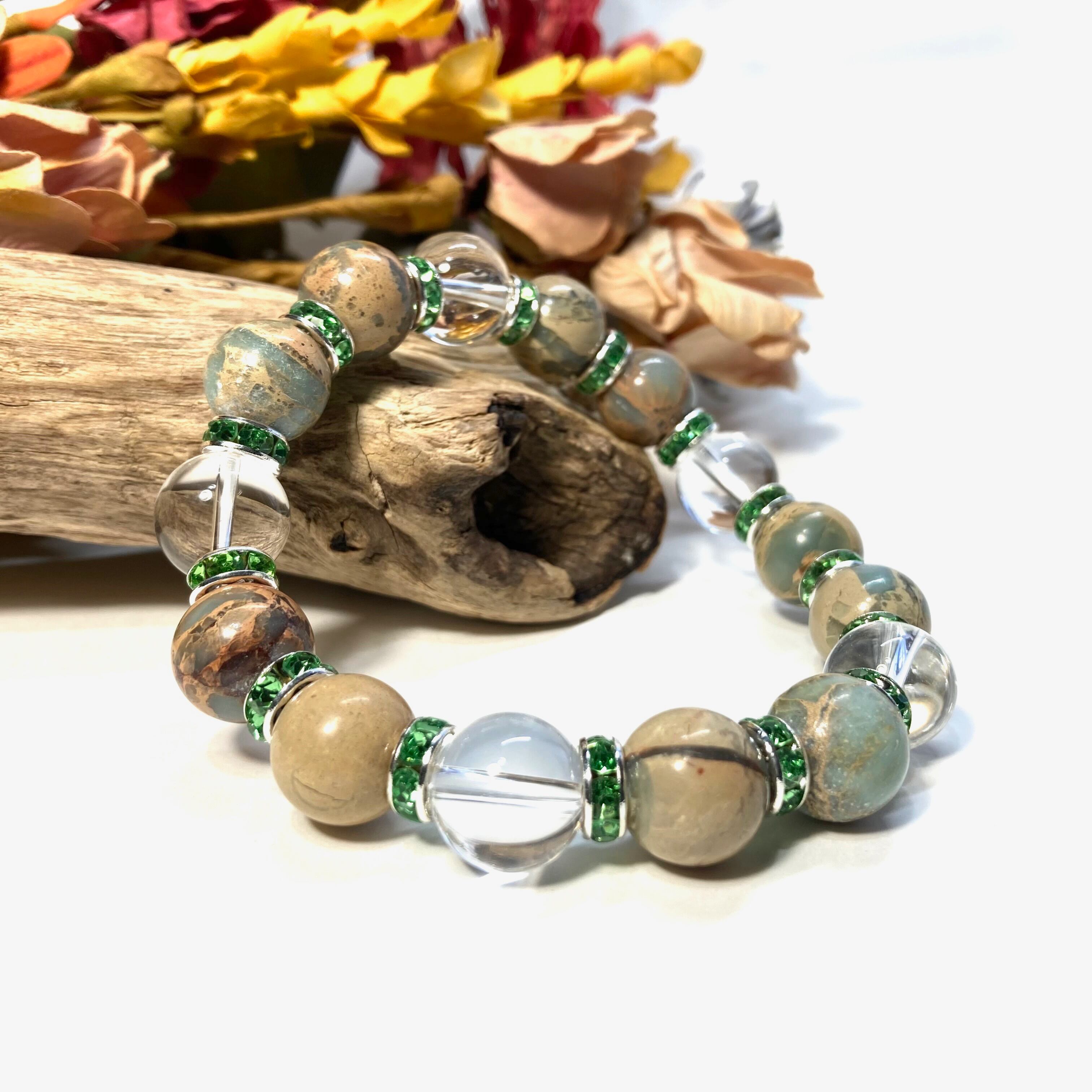 インプレッションストーン&水晶 パワーストーン ブレスレット 12mm(グリーン)メンズ・レディース 男性・女性 数珠ブレス 開運 ☆