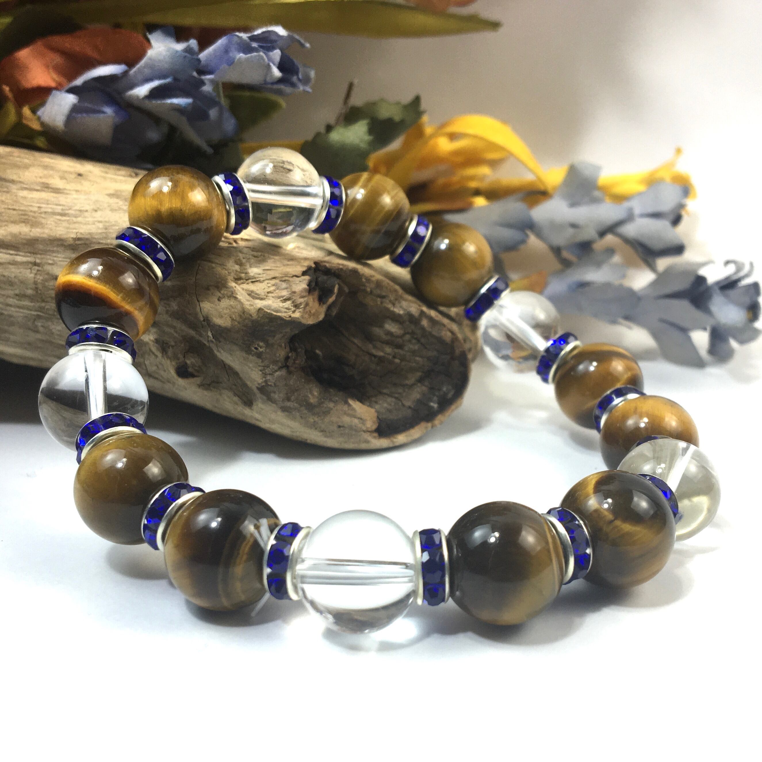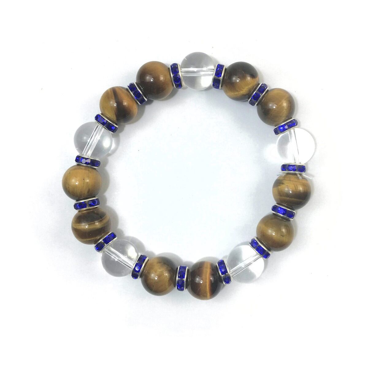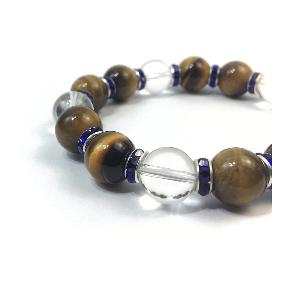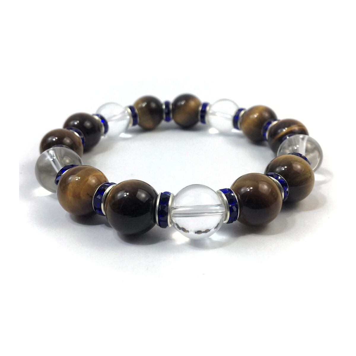 タイガーアイ&水晶 パワーストーン ブレスレット 天然石 12mm (ダークブルー)メンズ・レディース 男性・女性 数珠ブレス 開運 ☆