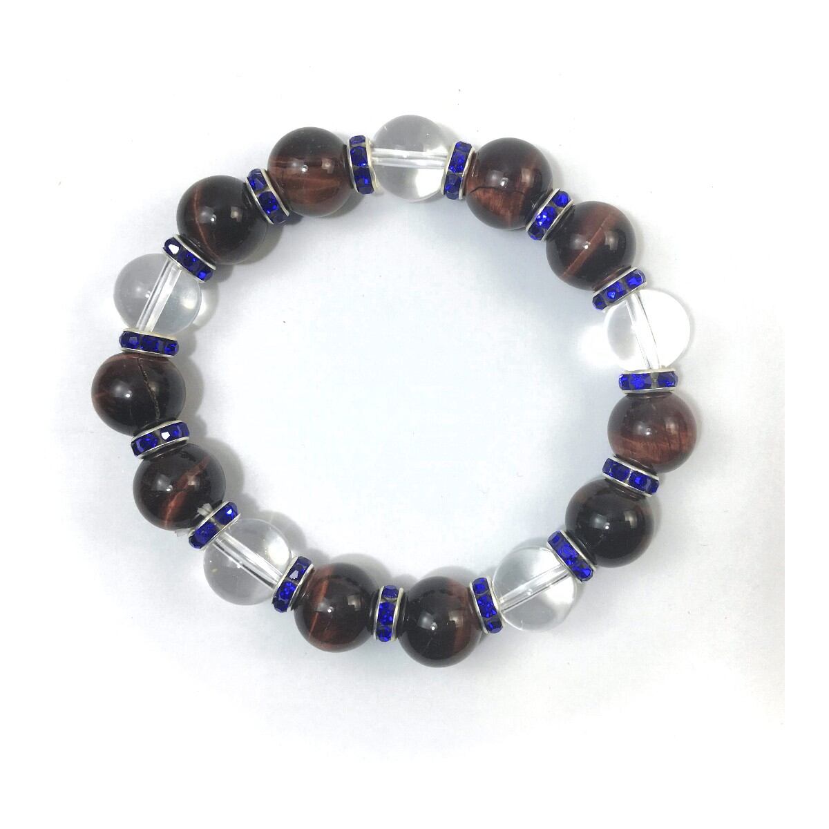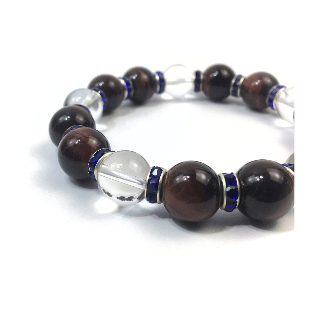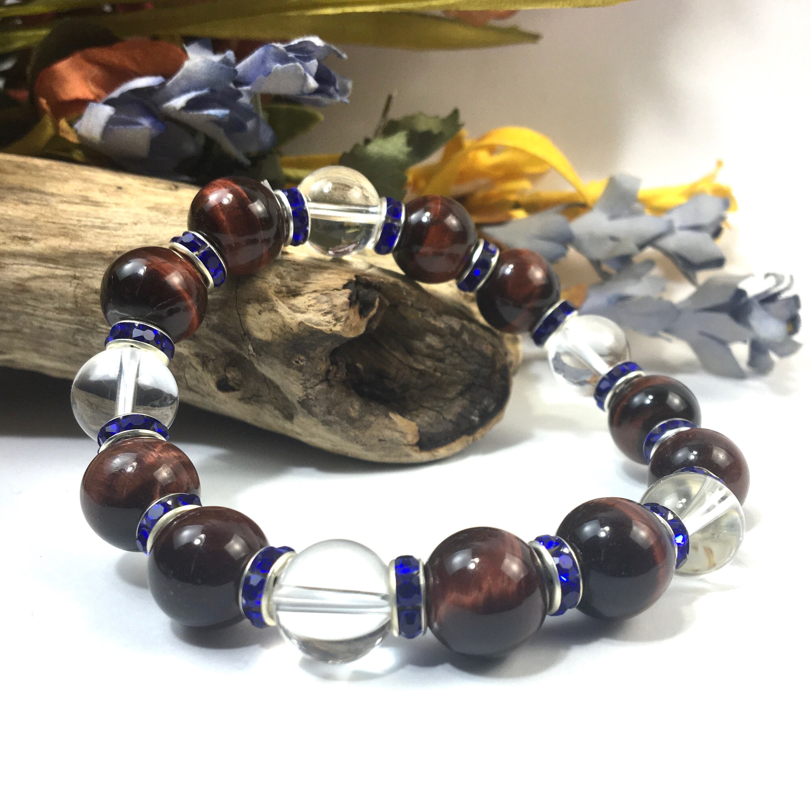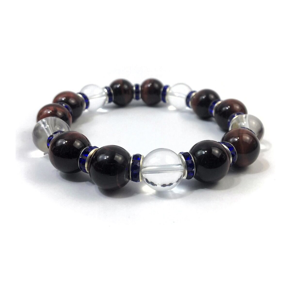 レッドタイガーアイ&水晶 パワーストーン ブレスレット 12mm (ダークブルー)メンズ・レディース 男性・女性 数珠ブレス 開運 ☆