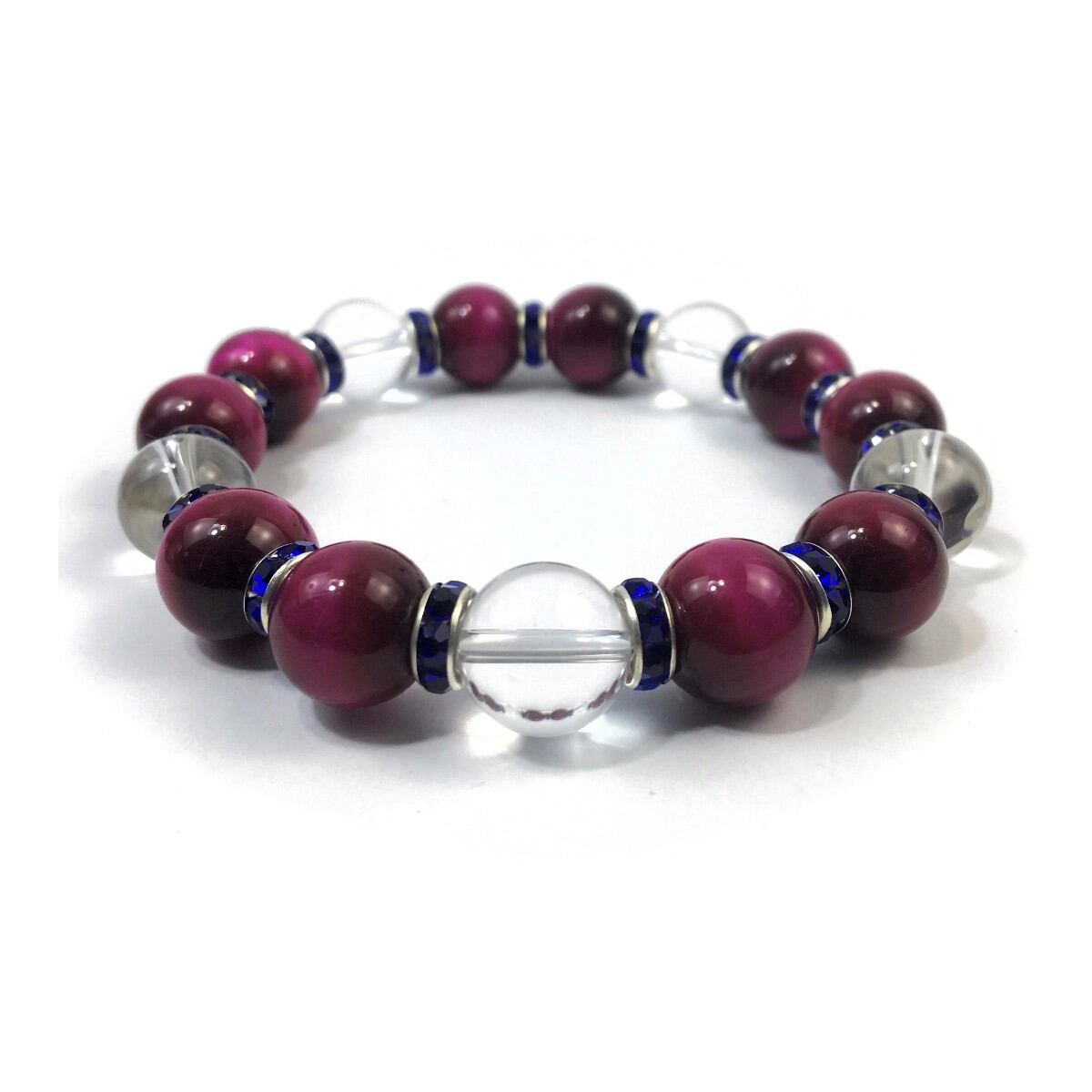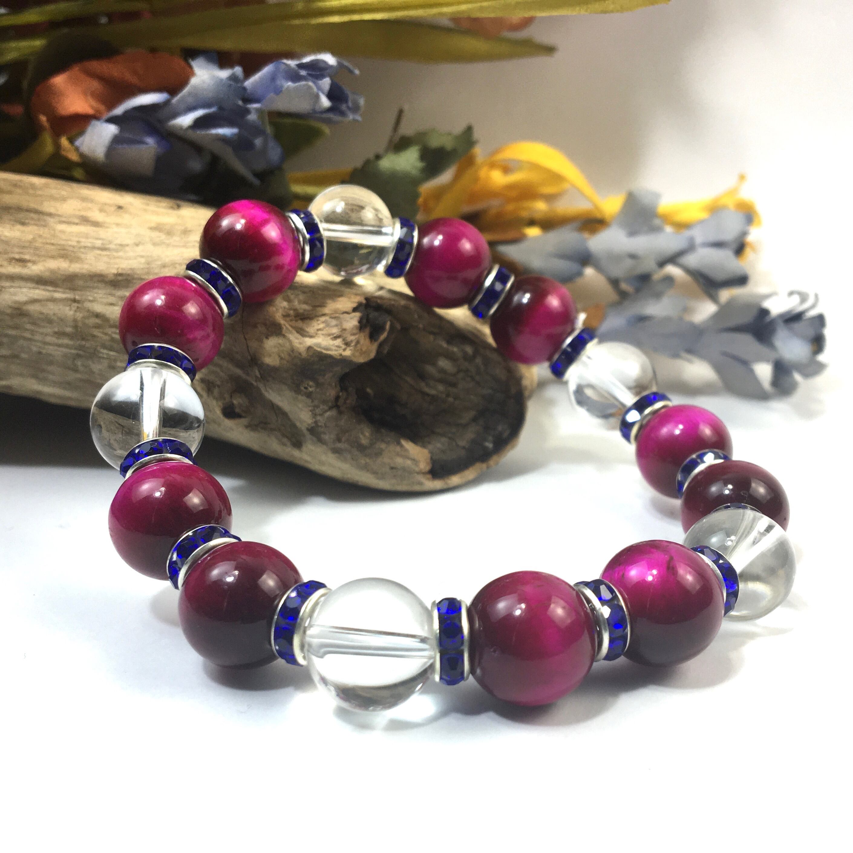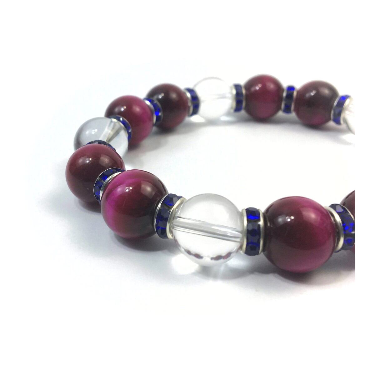 ピンクタイガーアイ&水晶 パワーストーン ブレスレット 12mm (ダークブルー)メンズ・レディース 男性・女性 数珠ブレス 開運 ☆