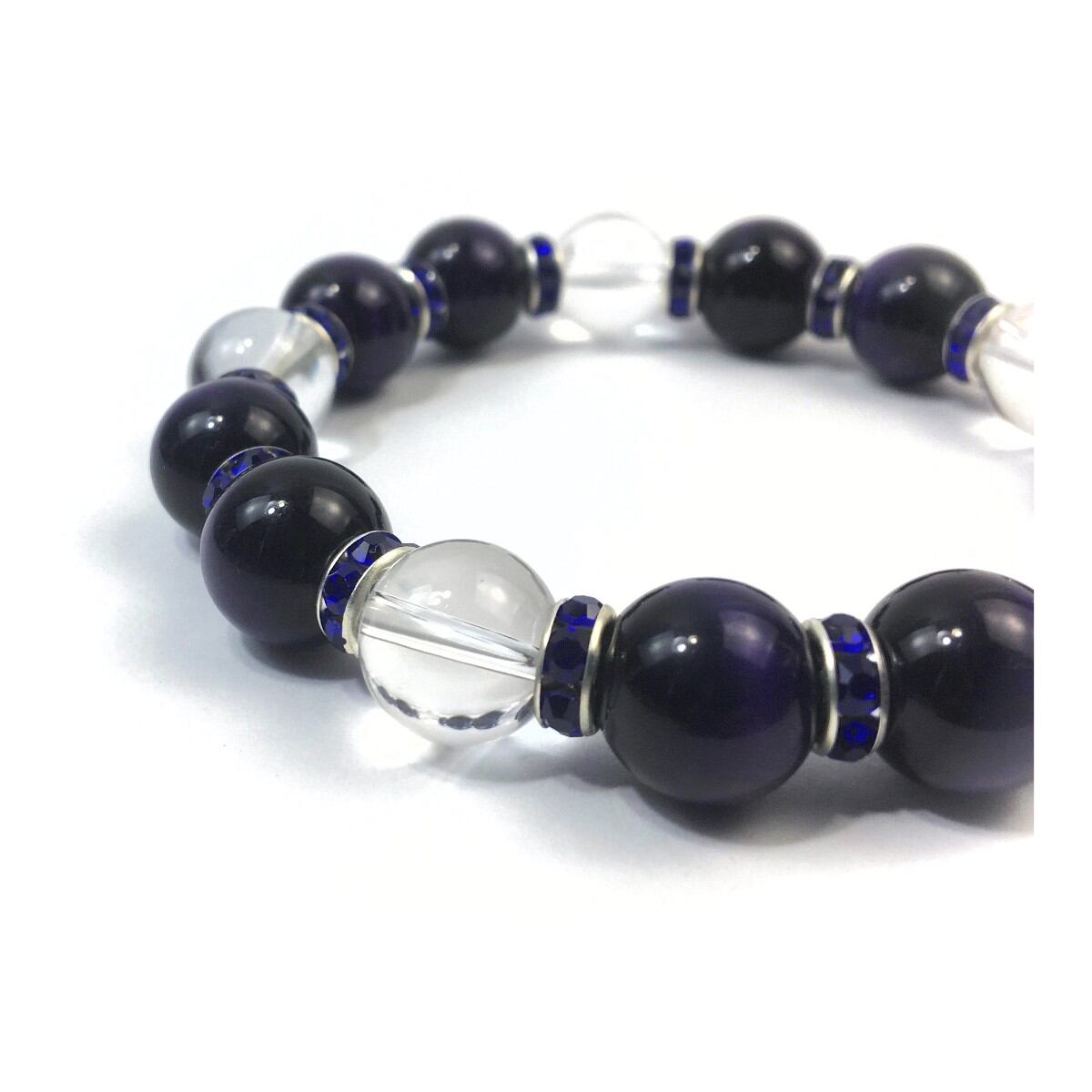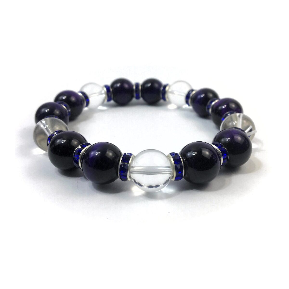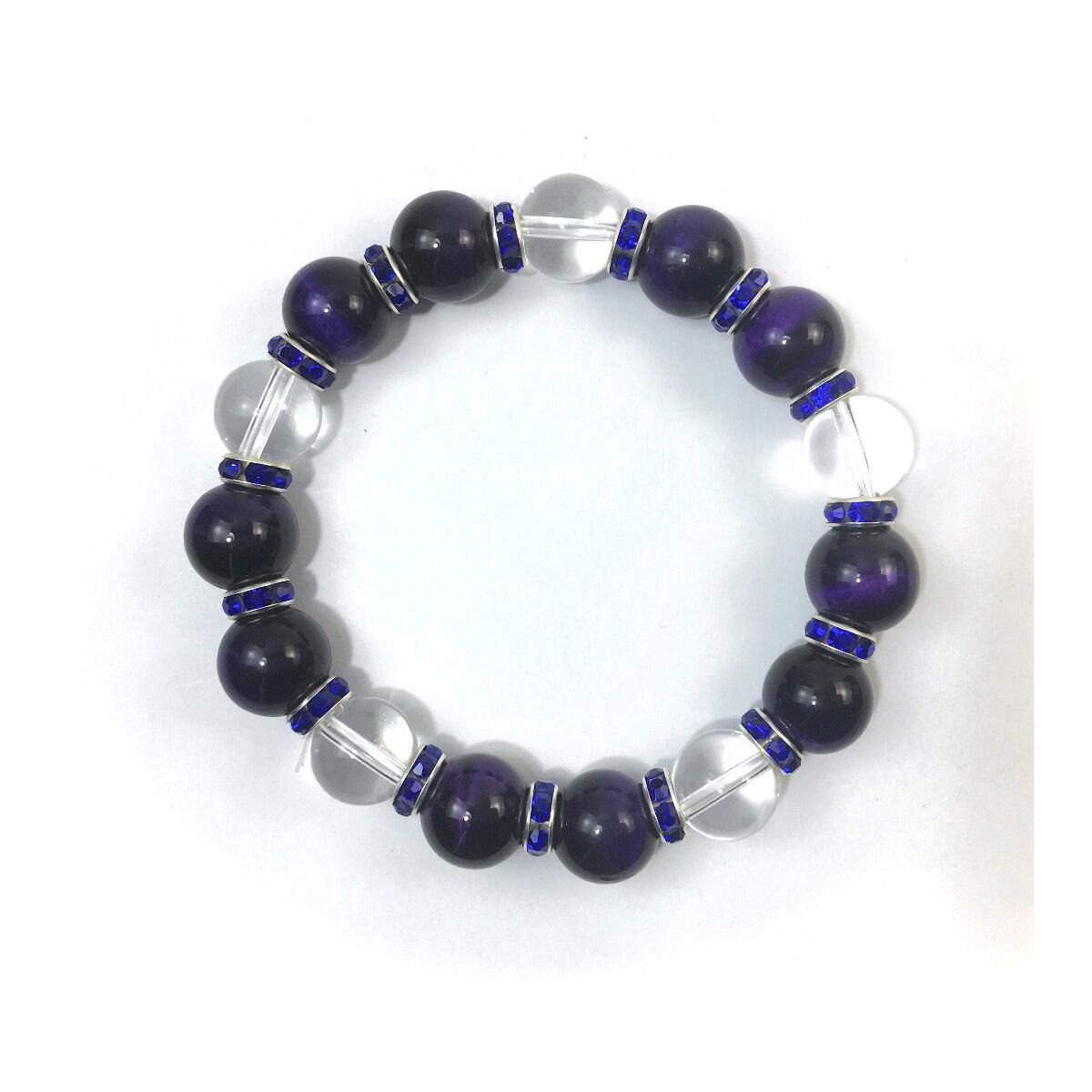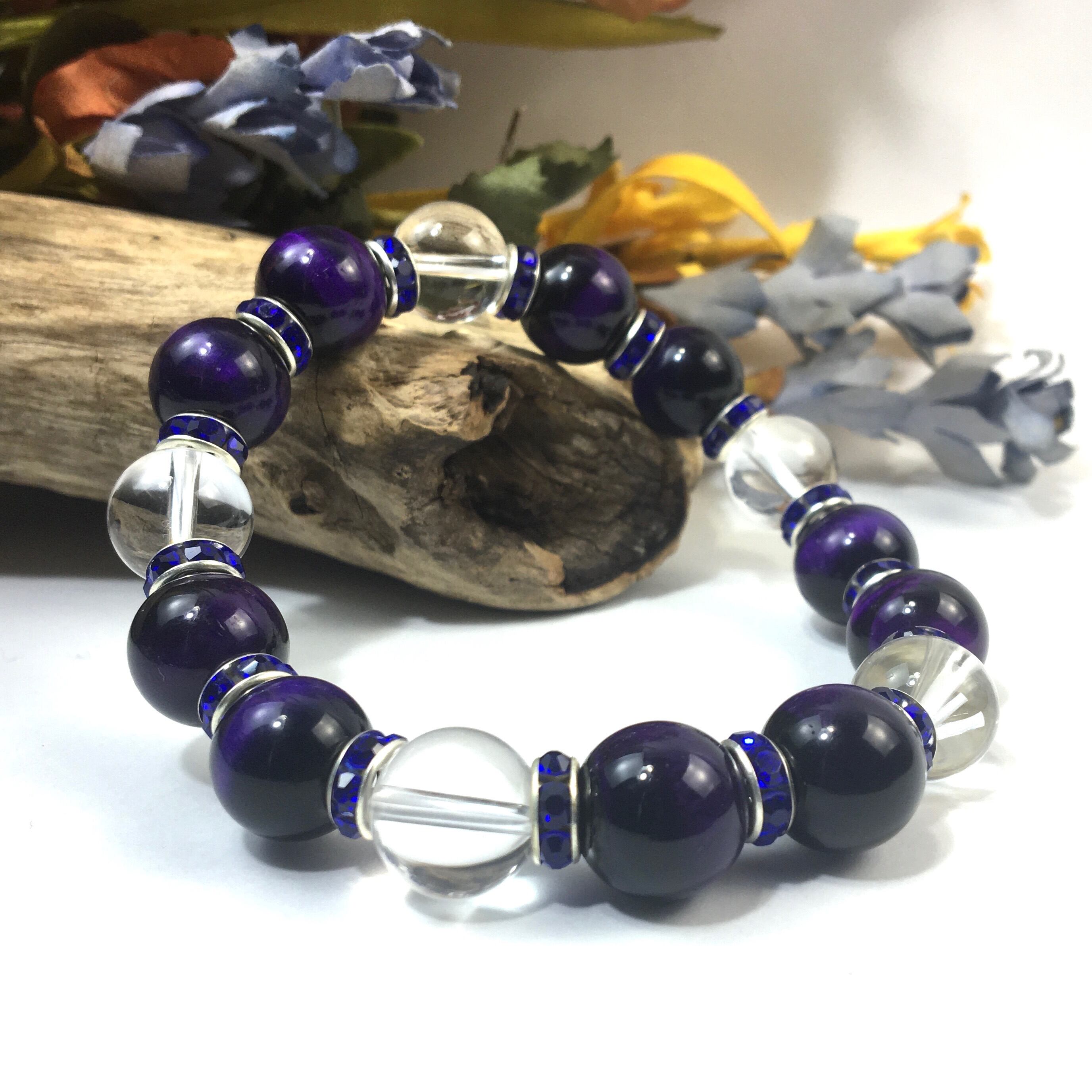 パープルタイガーアイ&水晶 パワーストーン ブレスレット 12mm (ダークブルー)メンズ・レディース 男性・女性 数珠ブレス 開運 ☆