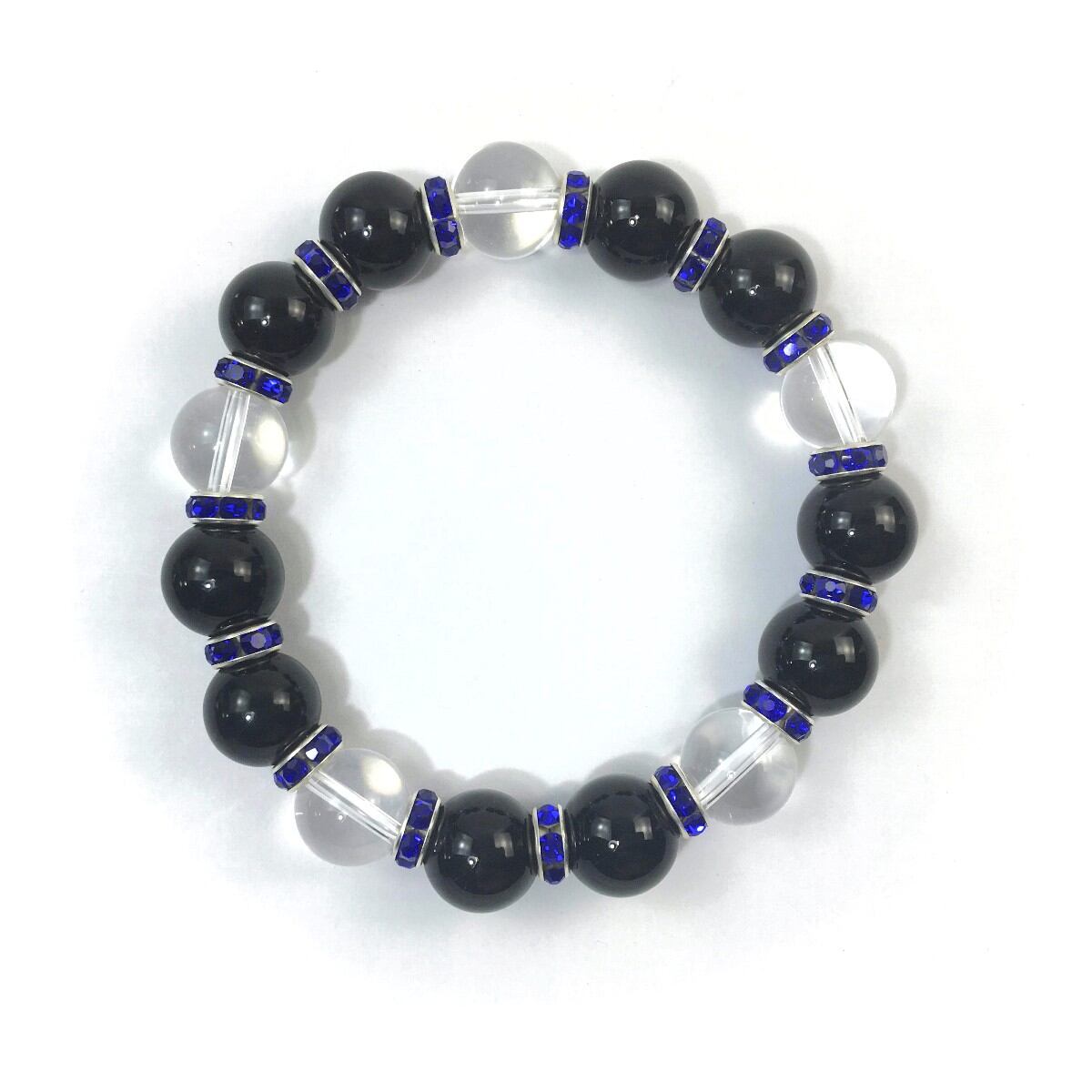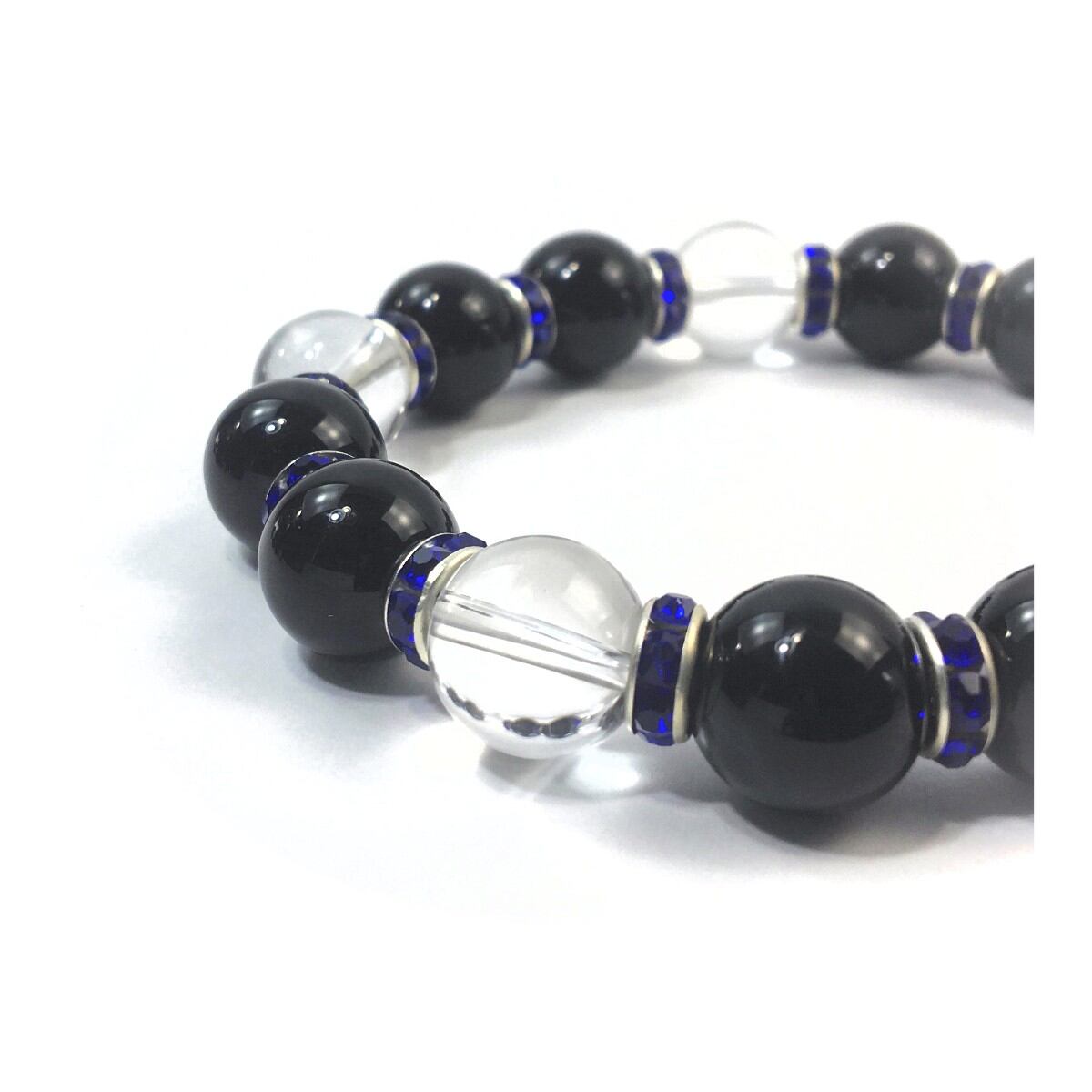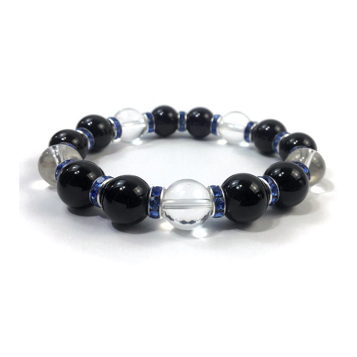 オニキス&水晶 パワーストーン ブレスレット 天然石12mm (ダークブルー)メンズ・レディース 男性・女性 数珠ブレス 開運 ☆