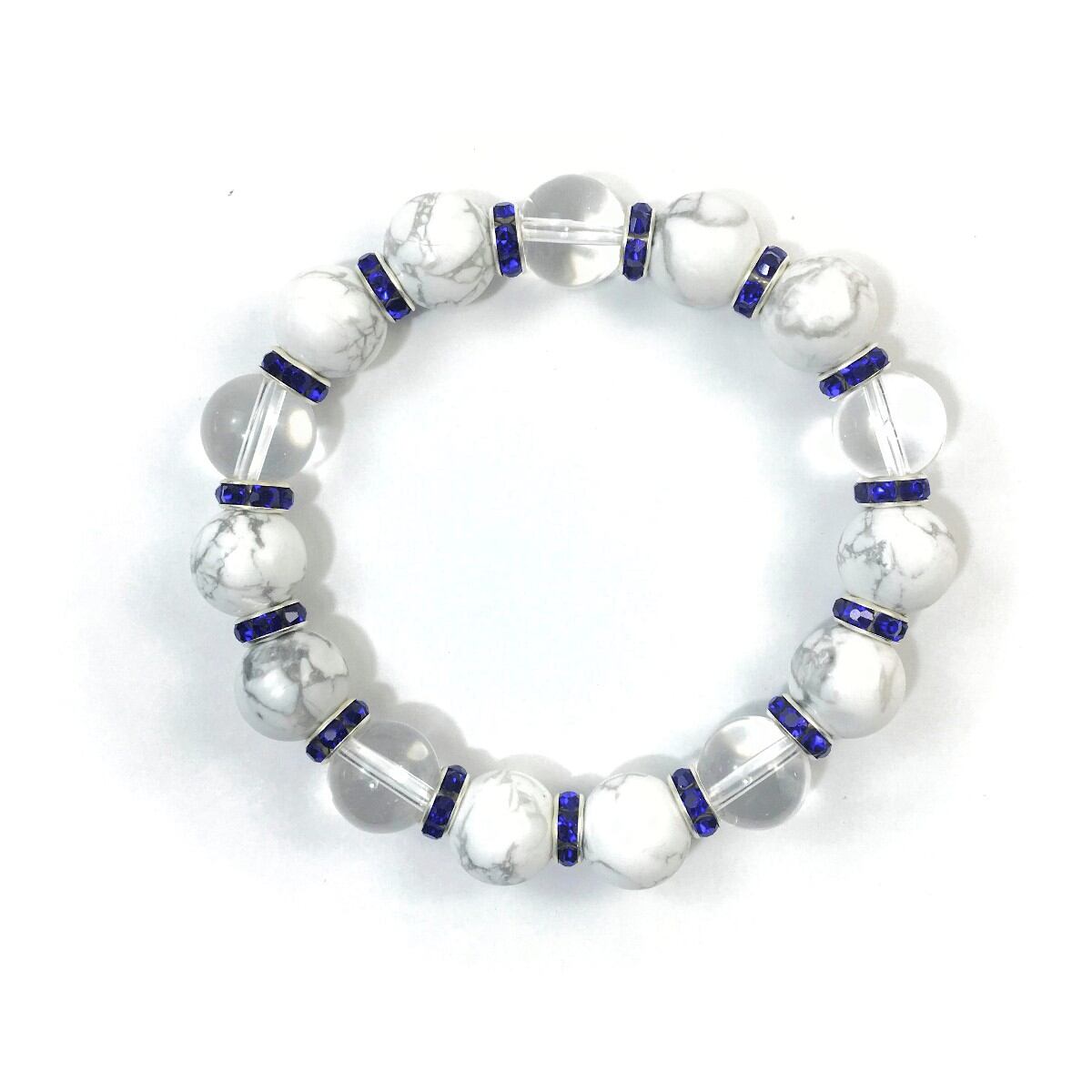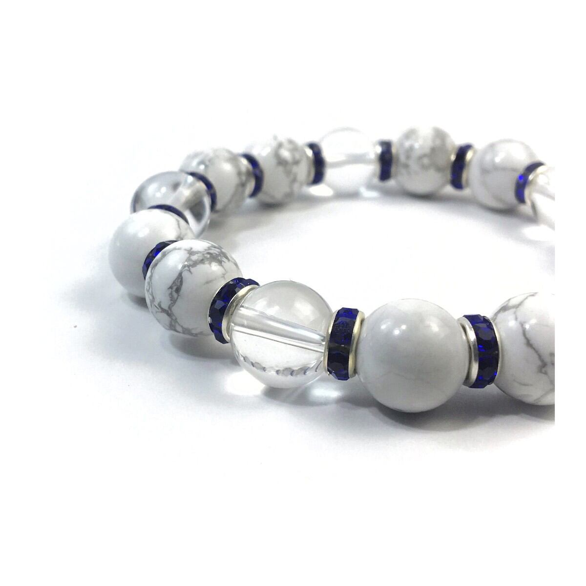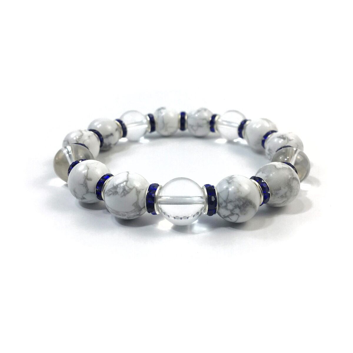 ハウライト&水晶 パワーストーン ブレスレット 天然石 12mm (ダークブルー)メンズ・レディース 男性・女性 数珠ブレス 開運 ☆