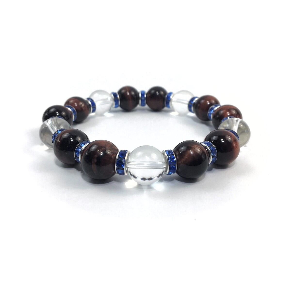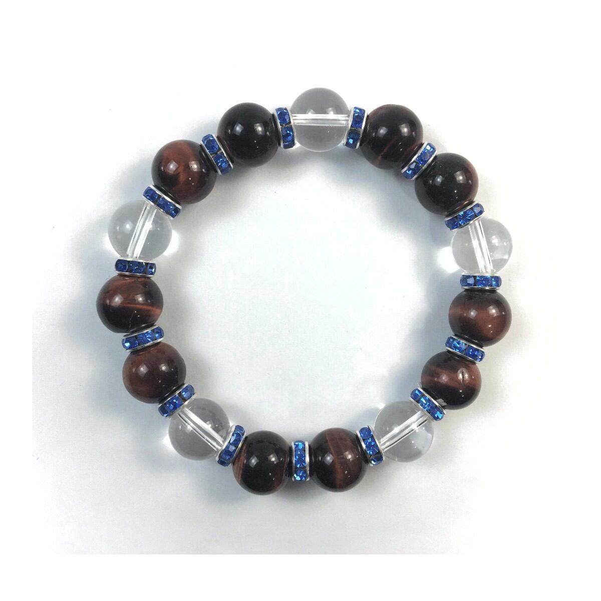 レッドタイガーアイ&水晶 パワーストーン ブレスレット 12mm (ブルー)メンズ・レディース 男性・女性 数珠ブレス 開運 ☆