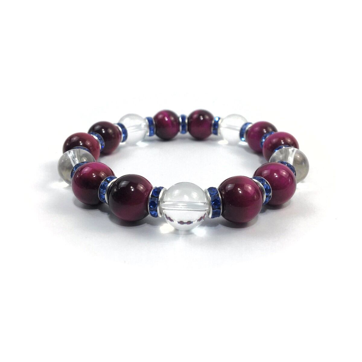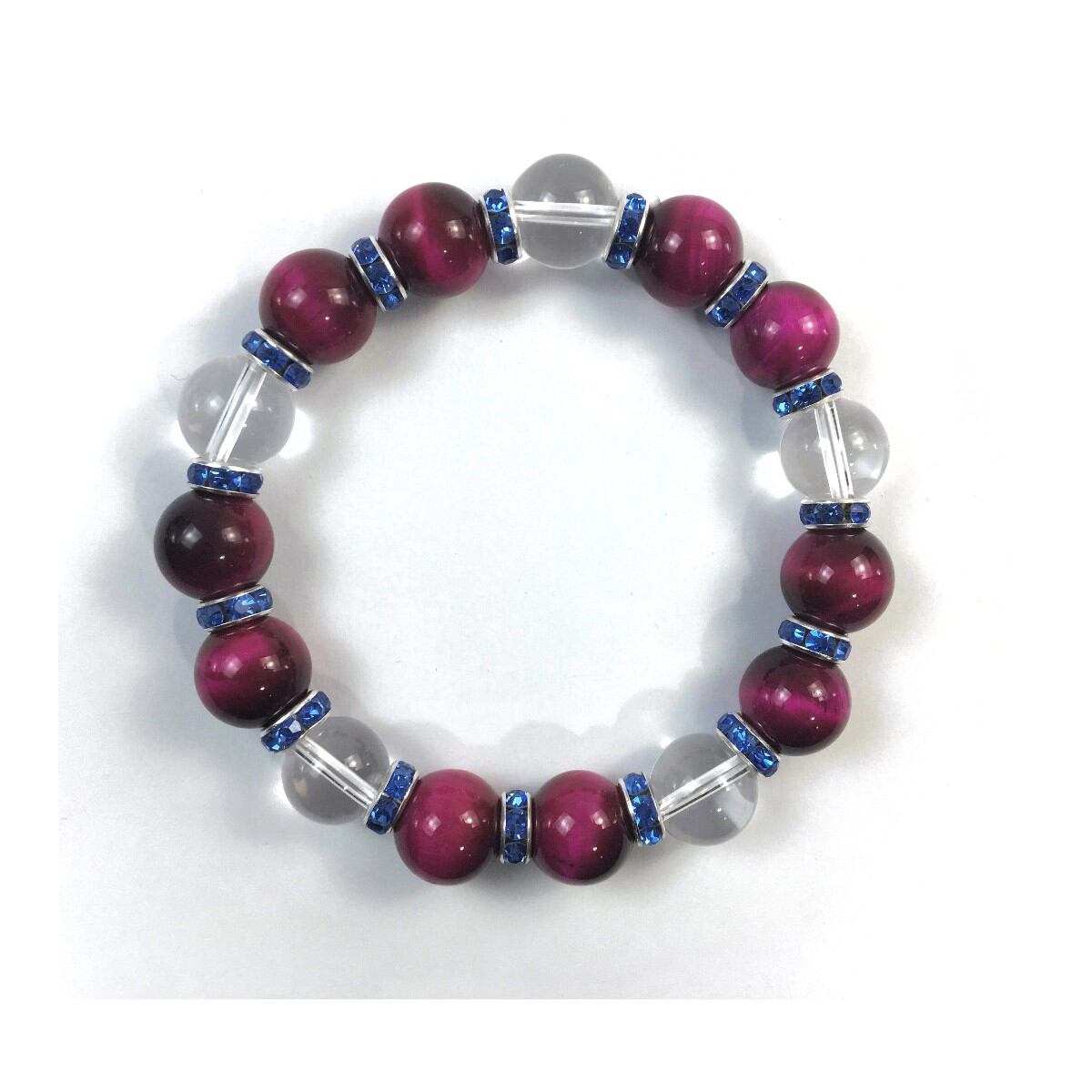 ピンクタイガーアイ&水晶 パワーストーン ブレスレット 12mm (ブルー)メンズ・レディース 男性・女性 数珠ブレス 開運 ☆