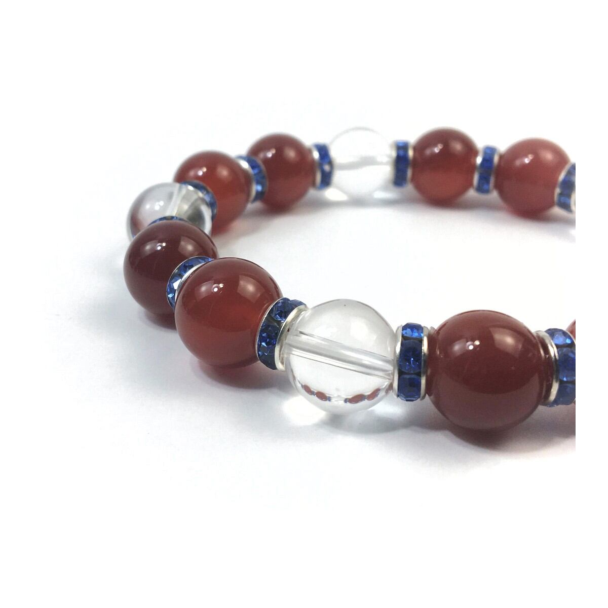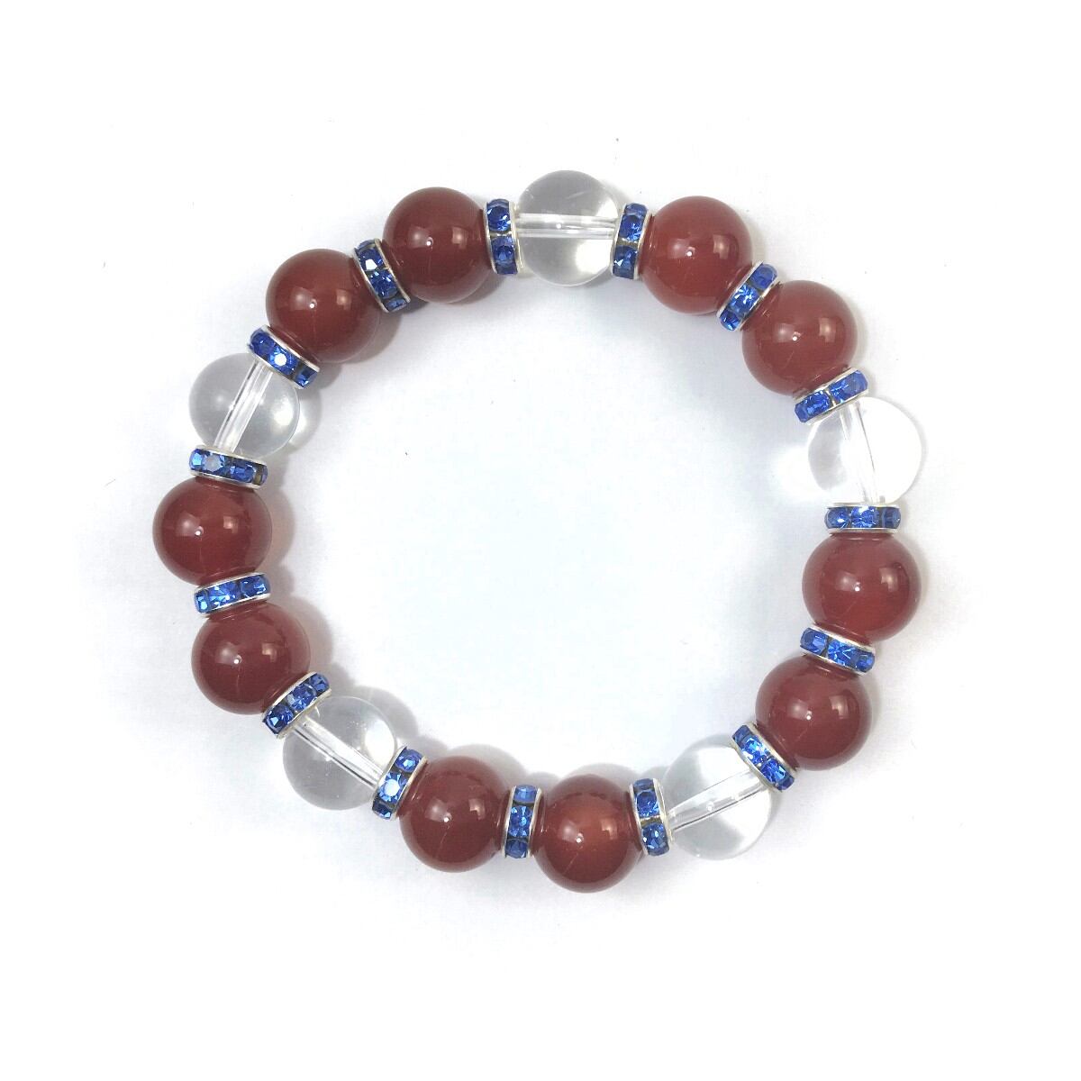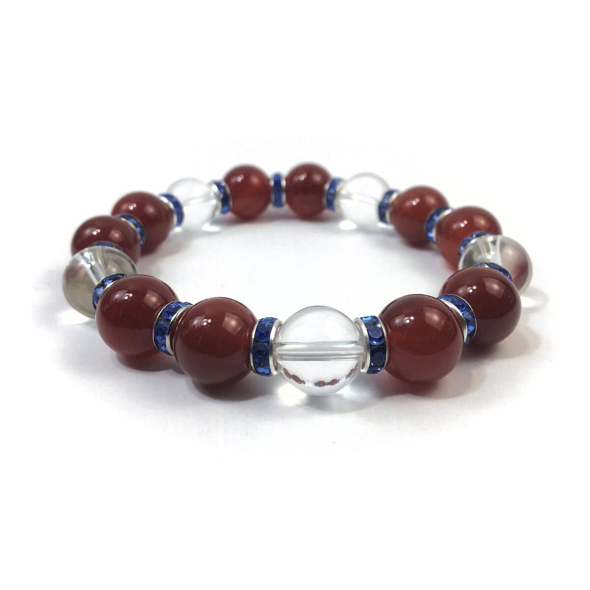 赤瑪瑙&水晶 パワーストーン ブレスレット 天然石 12mm (ブルー)メンズ・レディース 男性・女性 数珠ブレス 開運 ☆