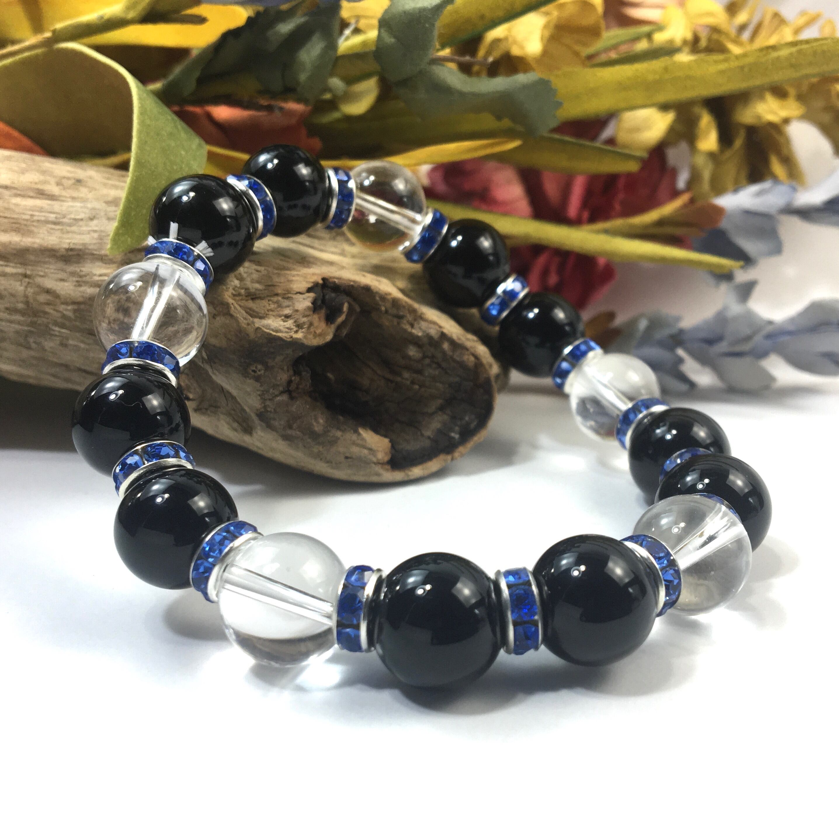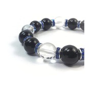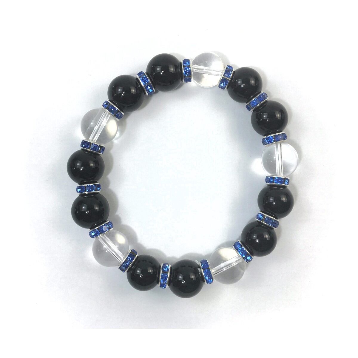 オニキス&水晶 パワーストーン ブレスレット 天然石12mm (ブルー)メンズ・レディース 男性・女性 数珠ブレス 開運 ☆