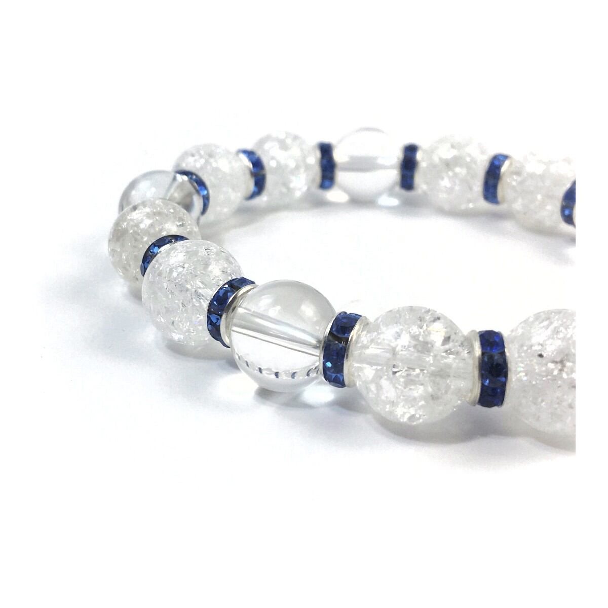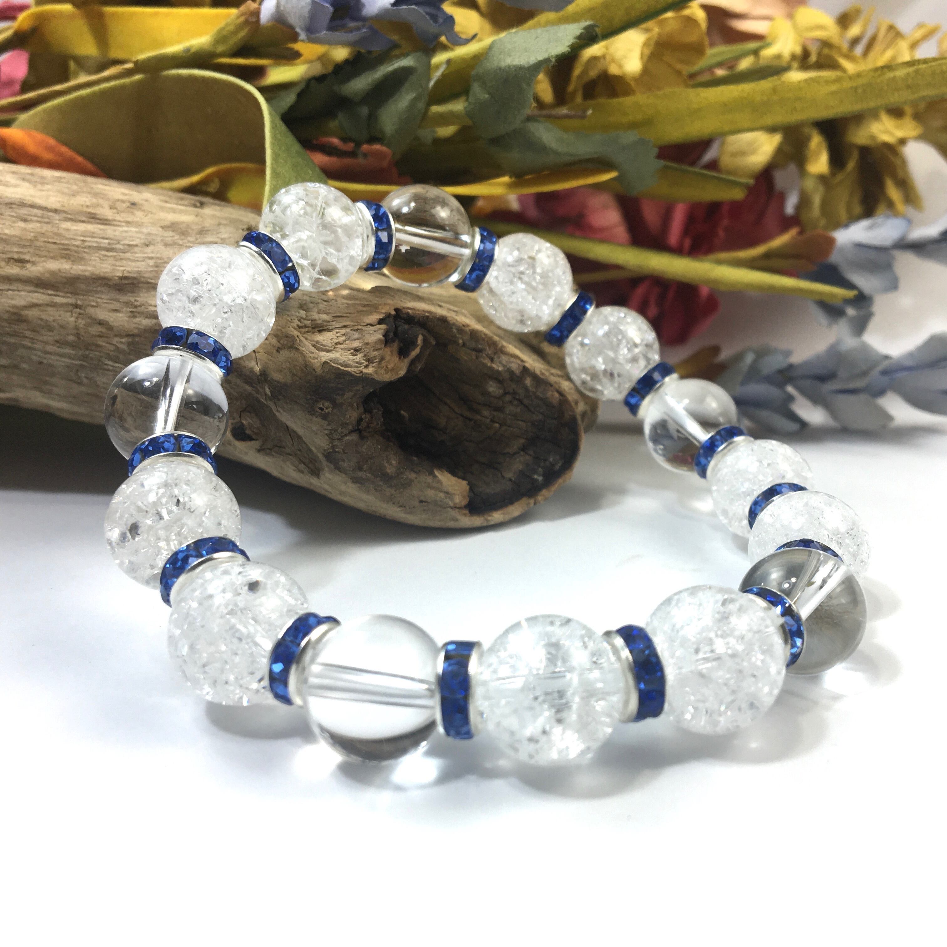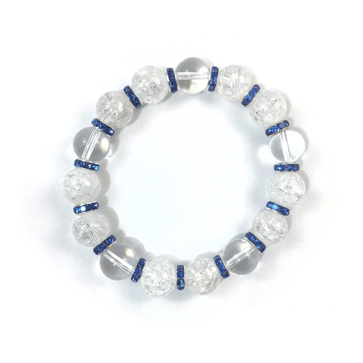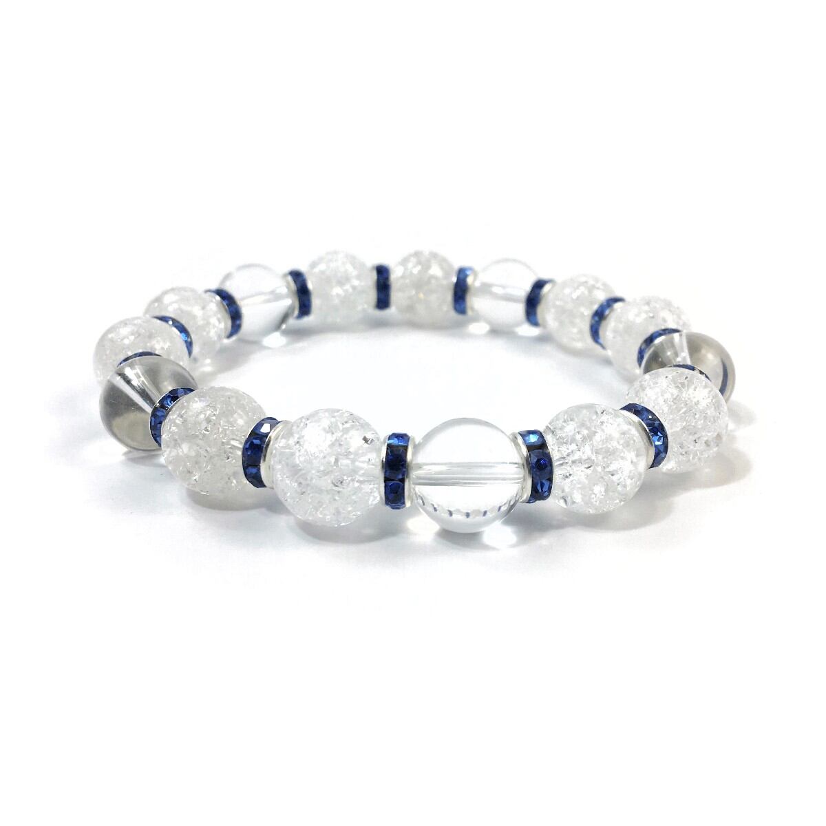クラック水晶&水晶 パワーストーン ブレスレット 天然石 12mm (ブルー)メンズ・レディース 男性・女性 数珠ブレス 開運 ☆