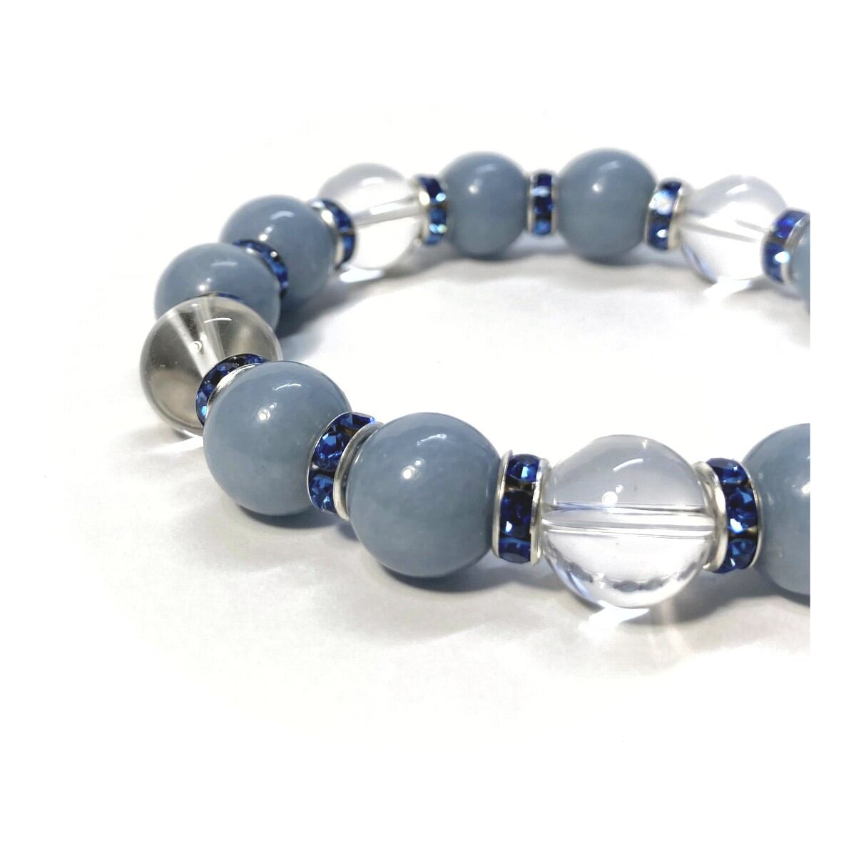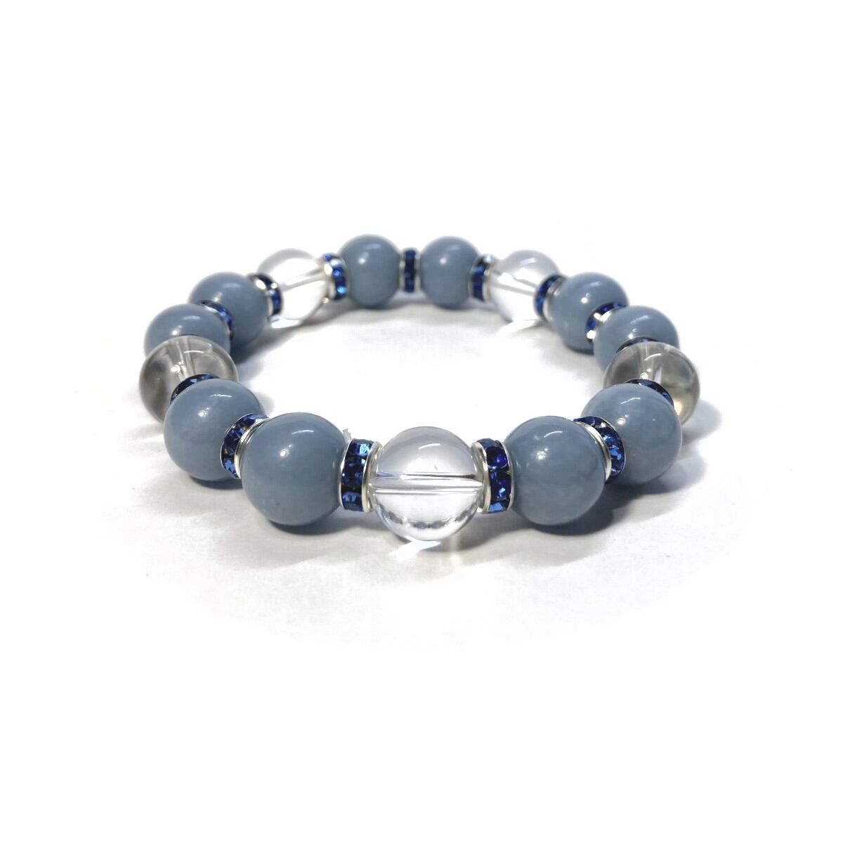 エンジェライト&水晶 パワーストーン ブレスレット 天然石 12mm (ブルー)メンズ・レディース 男性・女性 数珠ブレス 開運 ☆