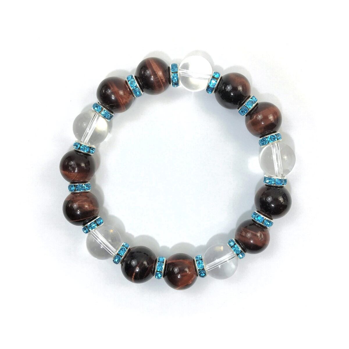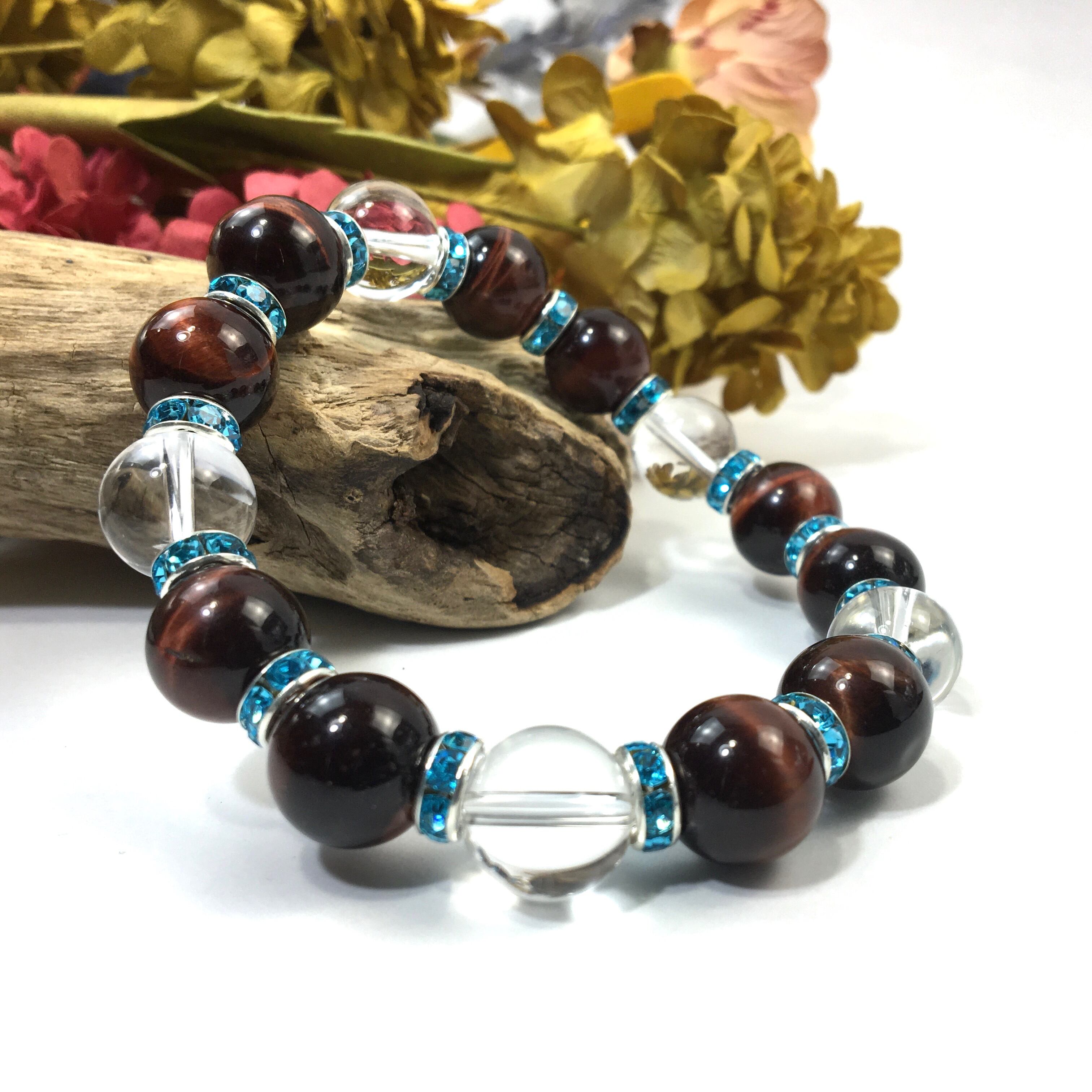こちらは、レッドタイガーアイとハウライトを組み合わせたパワーストーンブレスレットです。間にはロンデルを挟み高級感あるデザインに仕上げております。石大きさは12mm玉を使用して内周約18cmです。気になる方は是非この機会にどうぞ。