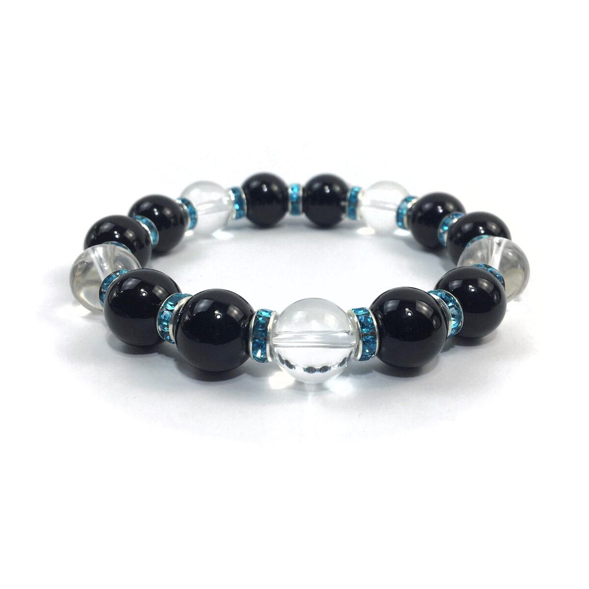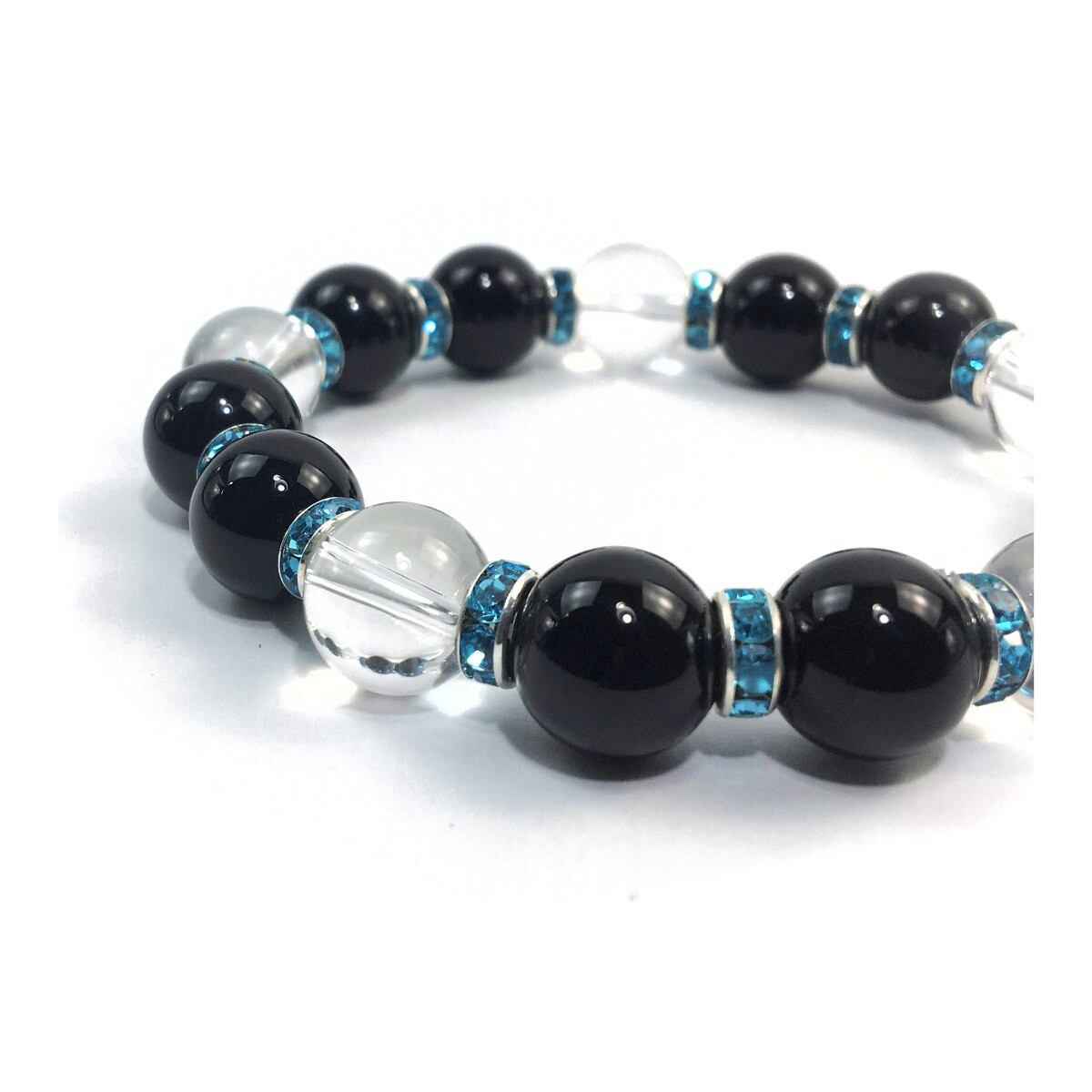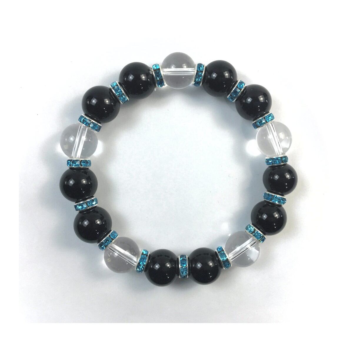 オニキス&水晶 パワーストーン ブレスレット 天然石12mm (ライトブルー)メンズ・レディース 男性・女性 数珠ブレス 開運 ☆