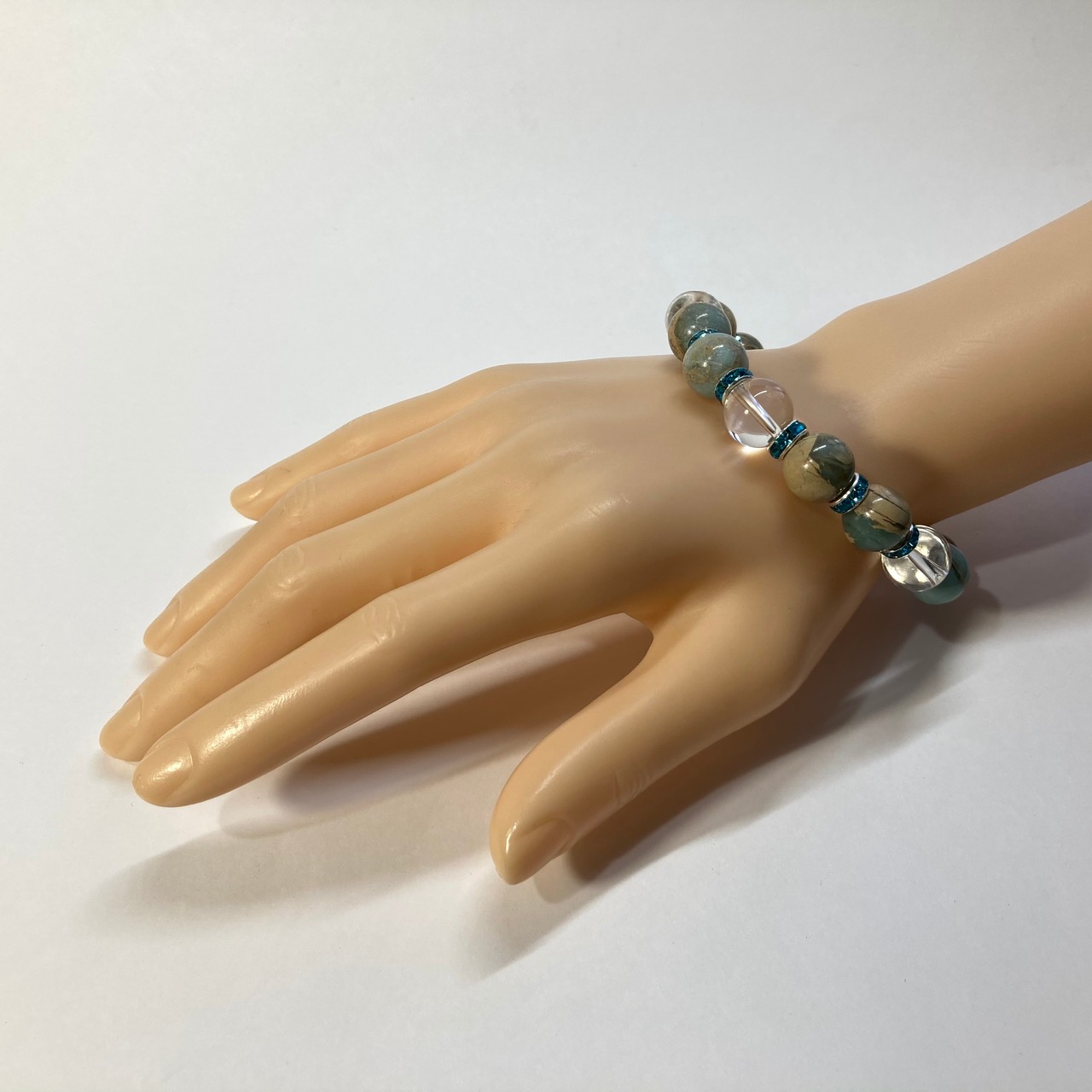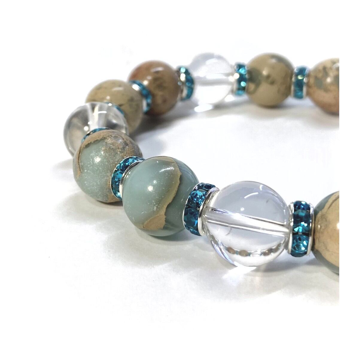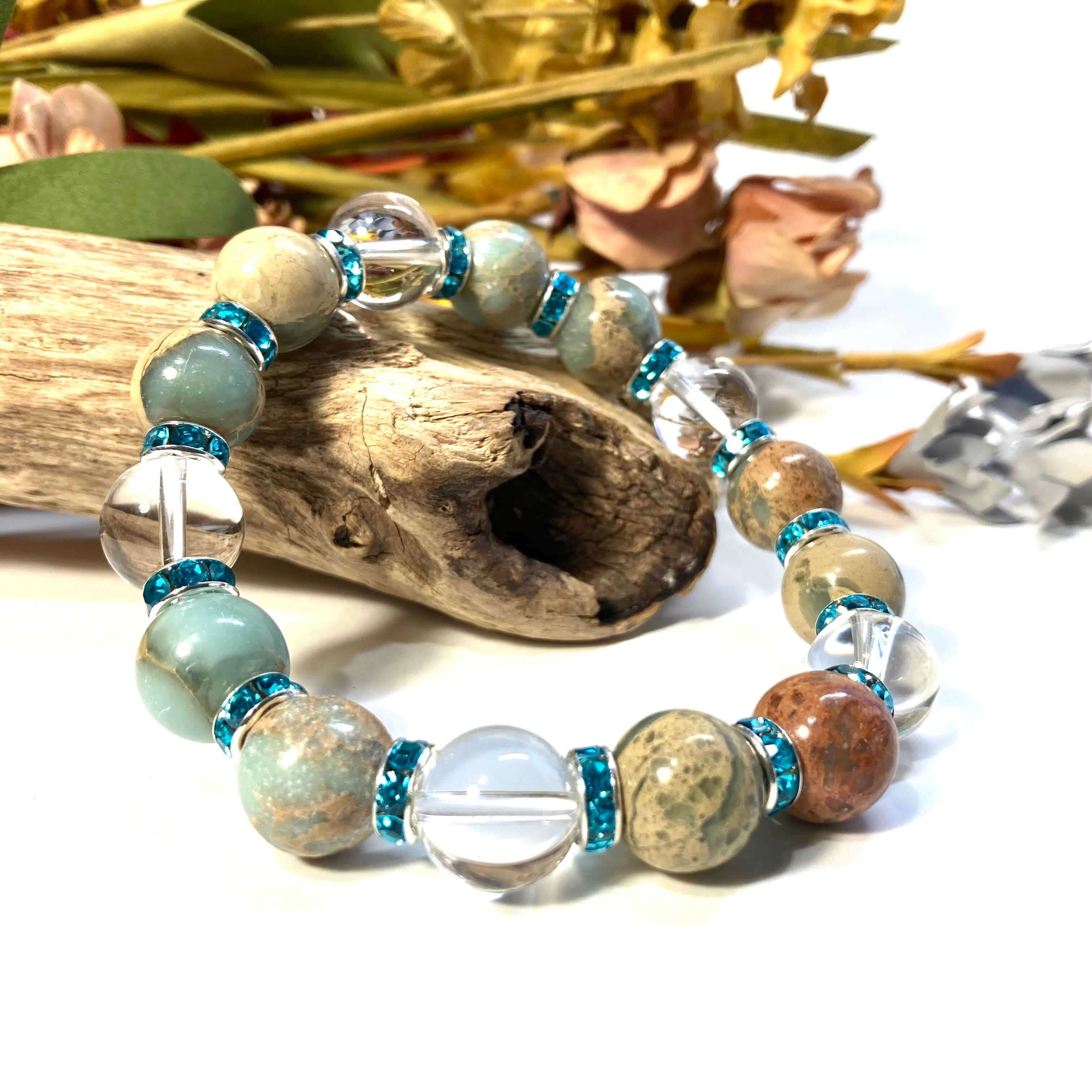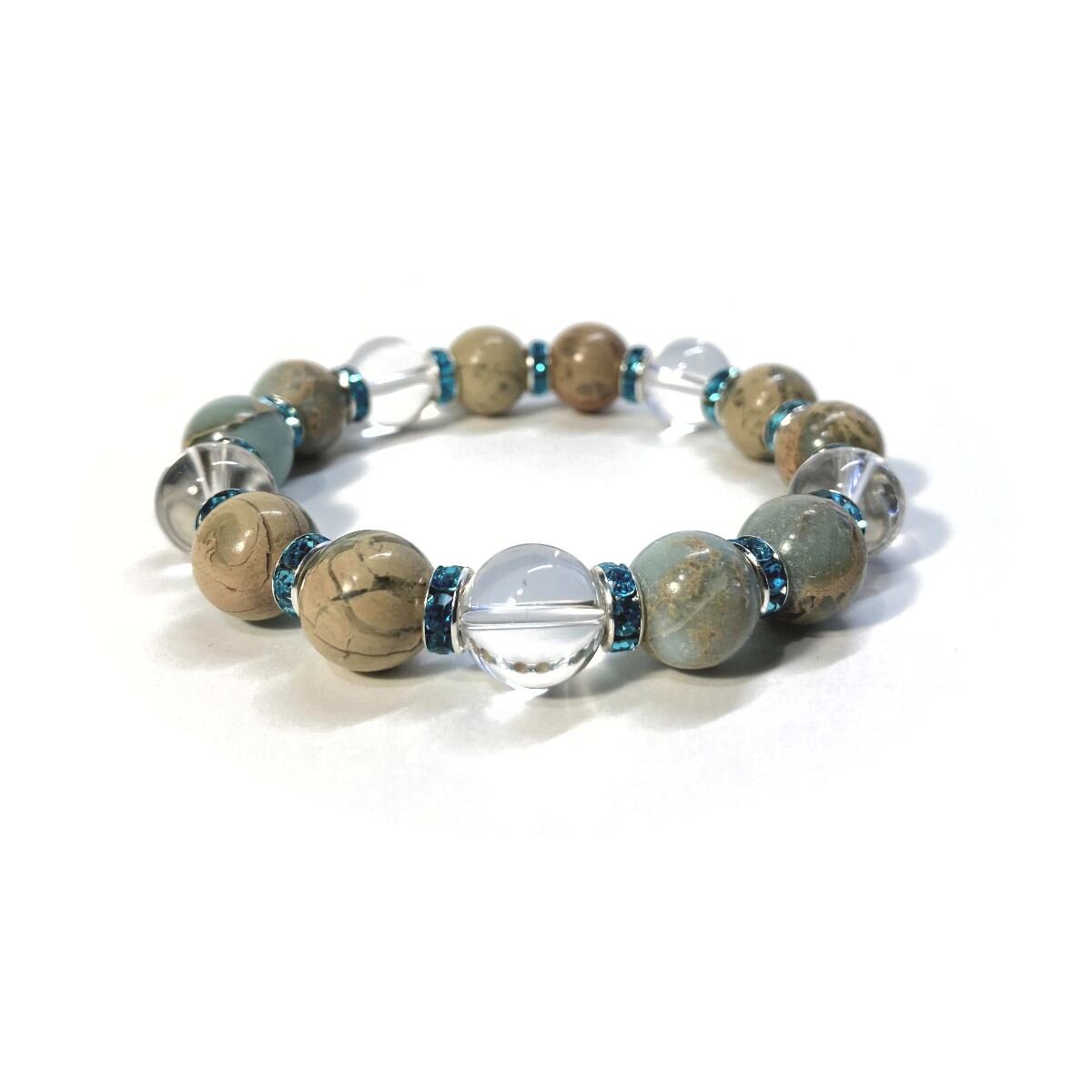 インプレッションストーン&水晶 パワーストーン ブレスレット 12mm(ライトブルー)メンズ・レディース 男性・女性 数珠ブレス 開運 ☆